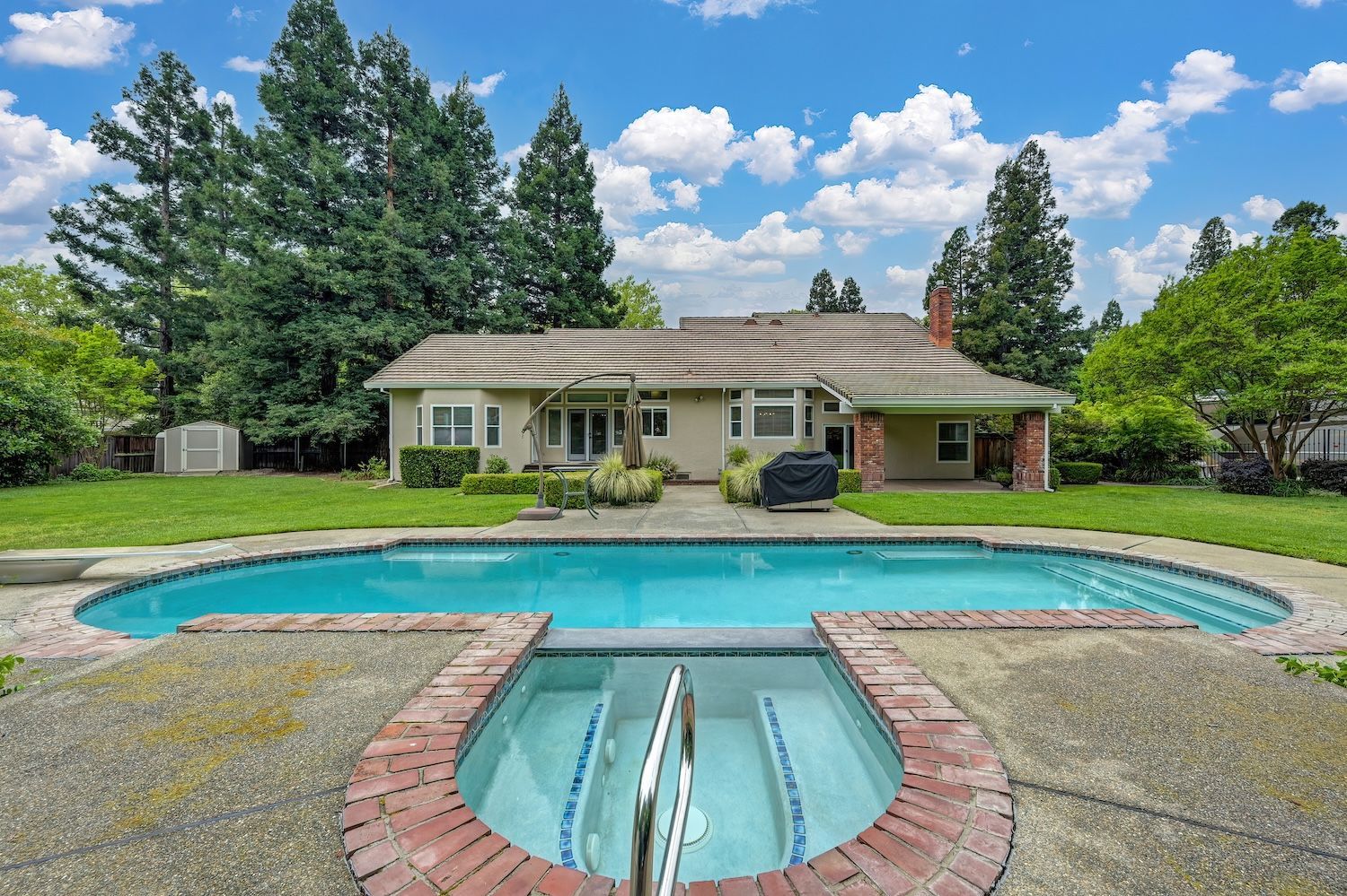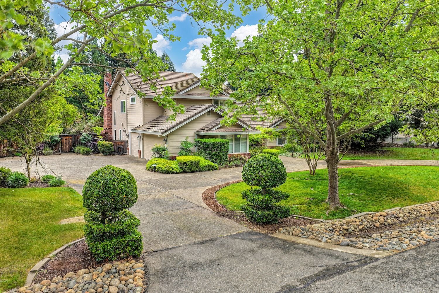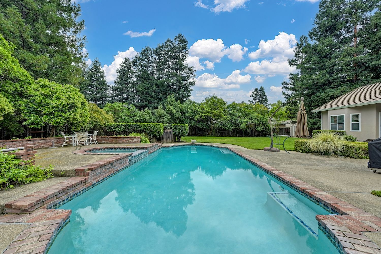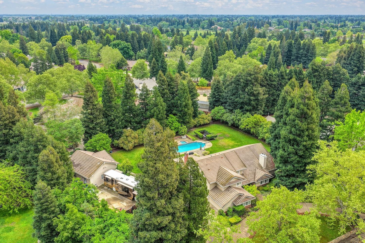 Set on a sprawling 1.1-acre lot in the sought-after neighborhood of Silver Springs, this beautifully maintained Elliott-built residence offers space, flexibility, and thoughtful upgrades in a prime location. Designed with both everyday living and entertaining in mind, the functional floorplan features a desirable main-level primary suite, an additional first-floor bedroom, two upstairs bedrooms, and a versatile bonus room. The heart of the home showcases a fully remodeled kitchen with abundant cabinetry, double ovens, and a seamless connection to the main living areas. Rich engineered Brazilian cherry hardwood flooring, alder cabinetry, and multiple French doors create a warm yet elevated aesthetic, while remodeled bathrooms and a spa-inspired primary suite with an oversized jetted tub and walk-in shower add to the home's comfort and appeal. Step outside to your own private retreat, complete with a pool and spa, expansive grounds, mature landscaping, and endless potential for outdoor living. The property is fully fenced and includes RV access with power, a three-car garage with workspace, a greenhouse, rose garden, and shed, ideal for hobbyists, gardeners, or those needing additional storage. Adding to the exceptional versatility of this home is the detached guest house which offers approximately 840 square feet of independent living space with its own kitchen, living area, bedroom, bathroom, laundry, and private entrance. A great option for multigenerational living, extended guests, or income potential. With extensive updates completed over the years, permitted improvements, and pride of ownership throughout, this is a unique opportunity to own a property that combines acreage, functionality, and lifestyle, all with no HOA and within close proximity to everyday conveniences.