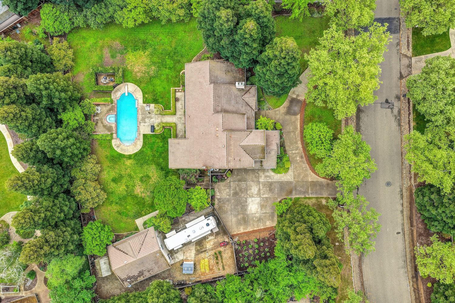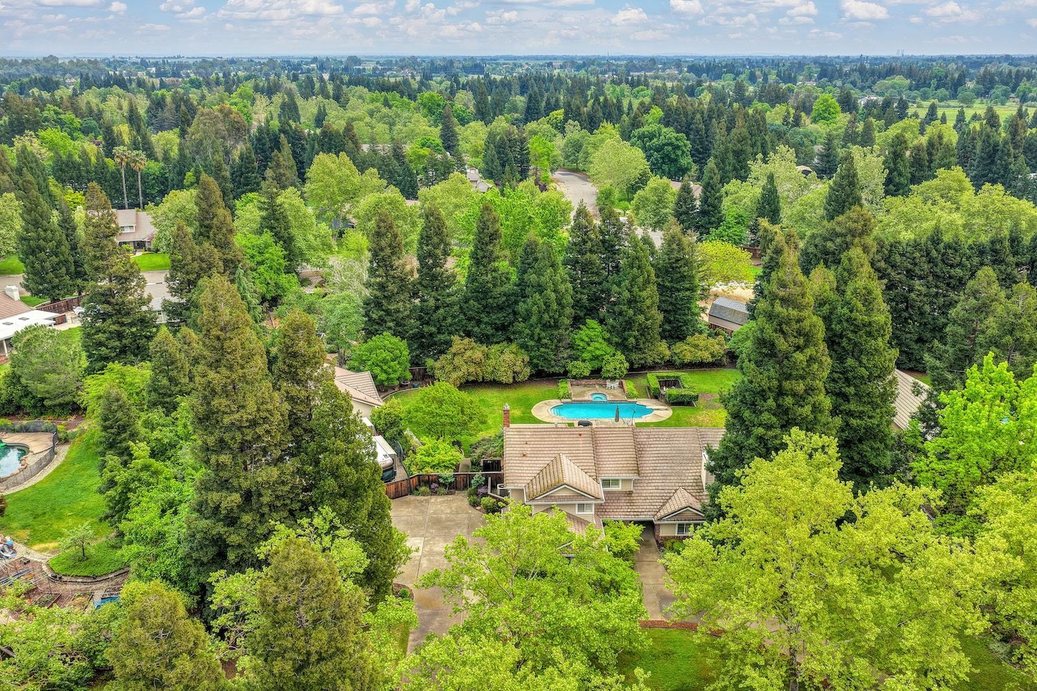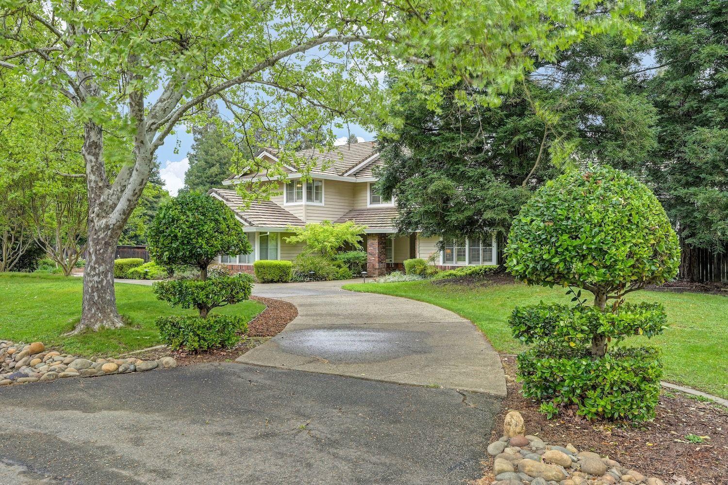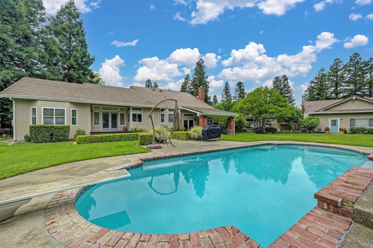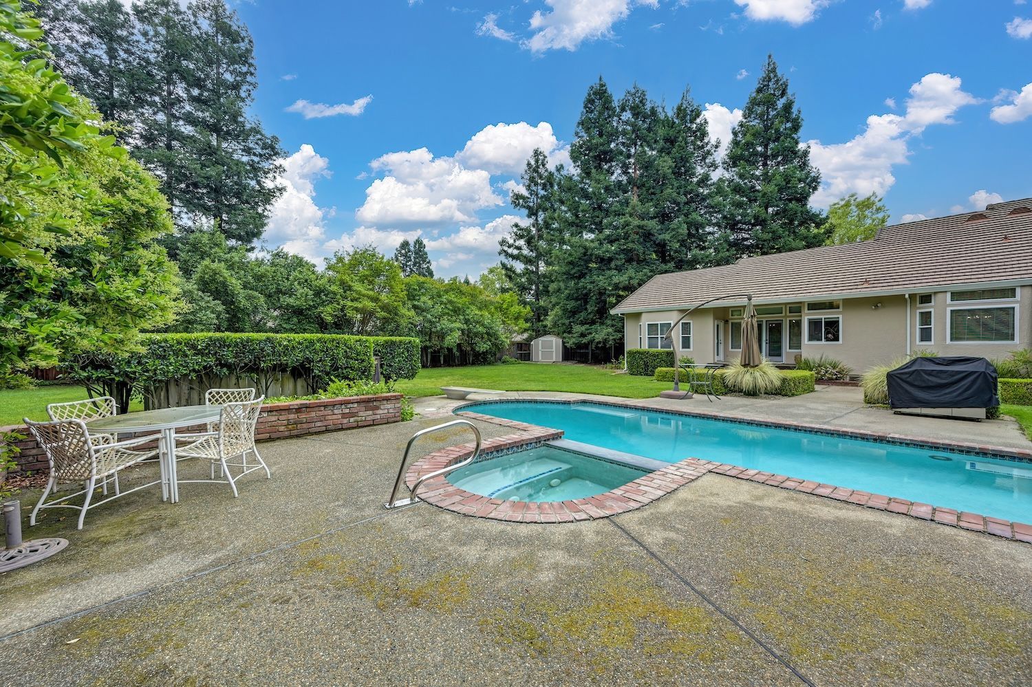 Set on a sprawling 1.1-acre lot in the sought-after neighborhood of Silver Springs, this beautifully maintained Elliott-built residence offers space, flexibility, and thoughtful upgrades in a prime location. Designed with both everyday living and entertaining in mind, the functional floorplan features a desirable main-level primary suite, an additional first-floor bedroom, two upstairs bedrooms, and a versatile bonus room. The heart of the home showcases a fully remodeled kitchen with abundant cabinetry, double ovens, and a seamless connection to the main living areas. Rich engineered Brazilian cherry hardwood flooring, alder cabinetry, and multiple French doors create a warm yet elevated aesthetic, while remodeled bathrooms and a spa-inspired primary suite with an oversized jetted tub and walk-in shower add to the home's comfort and appeal. Step outside to your own private retreat, complete with a pool and spa, expansive grounds, mature landscaping, and endless potential for outdoor living. The property is fully fenced and includes RV access with power, a three-car garage with workspace, a greenhouse, rose garden, and shed, ideal for hobbyists, gardeners, or those needing additional storage. Adding to the exceptional versatility of this home is the detached guest house which offers approximately 840 square feet of independent living space with its own kitchen, living area, bedroom, bathroom, laundry, and private entrance. A great option for multigenerational living, extended guests, or income potential. With extensive updates completed over the years, permitted improvements, and pride of ownership throughout, this is a unique opportunity to own a property that combines acreage, functionality, and lifestyle, all with no HOA and within close proximity to everyday conveniences.