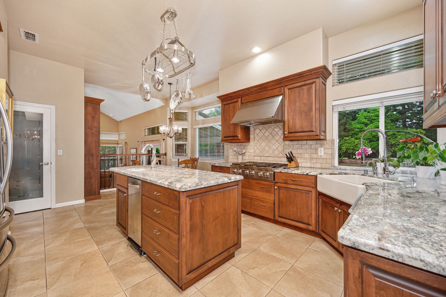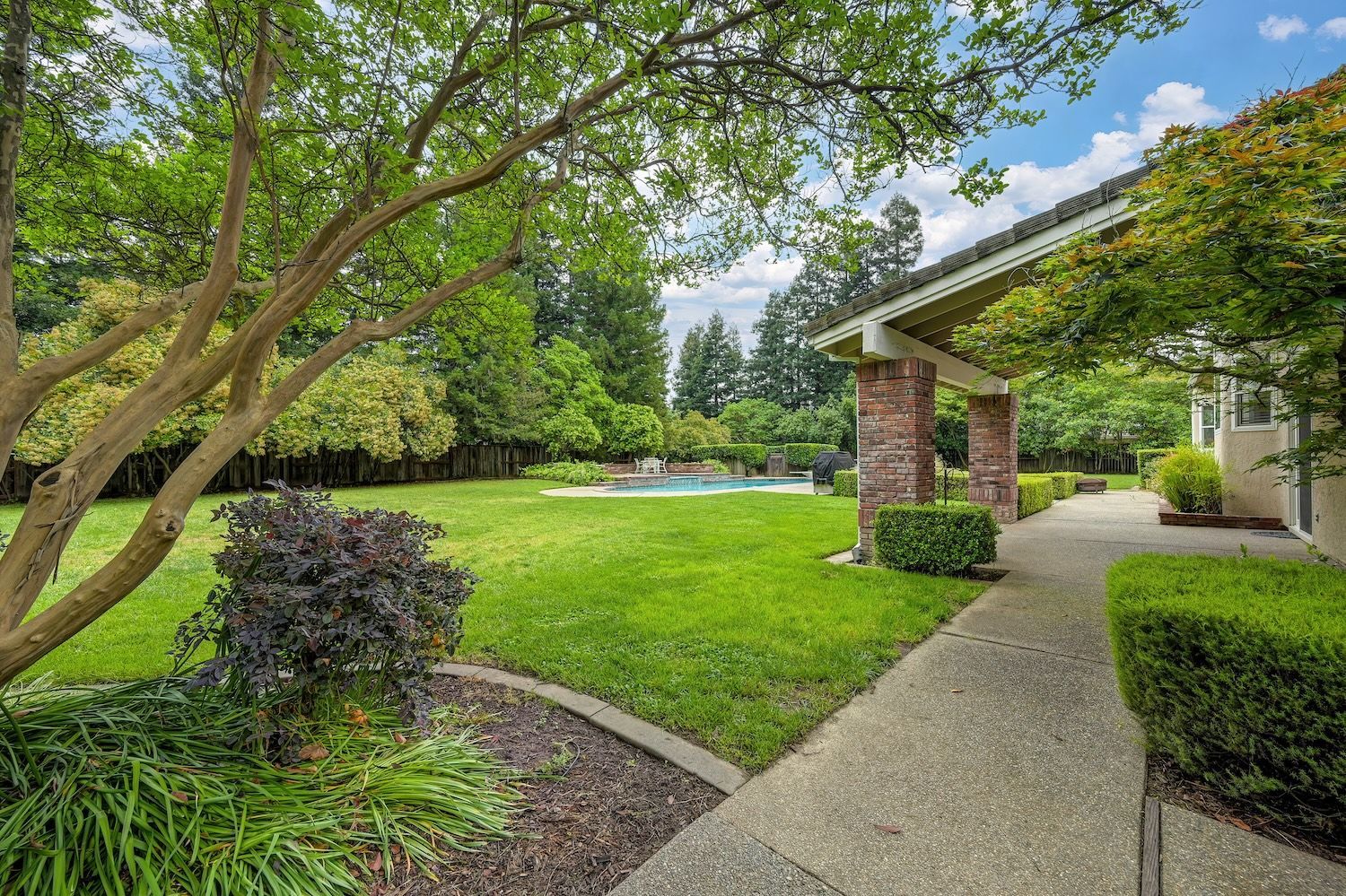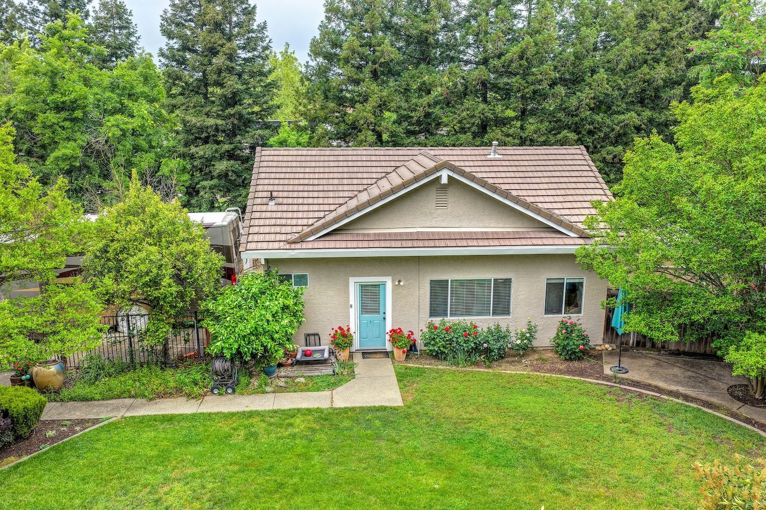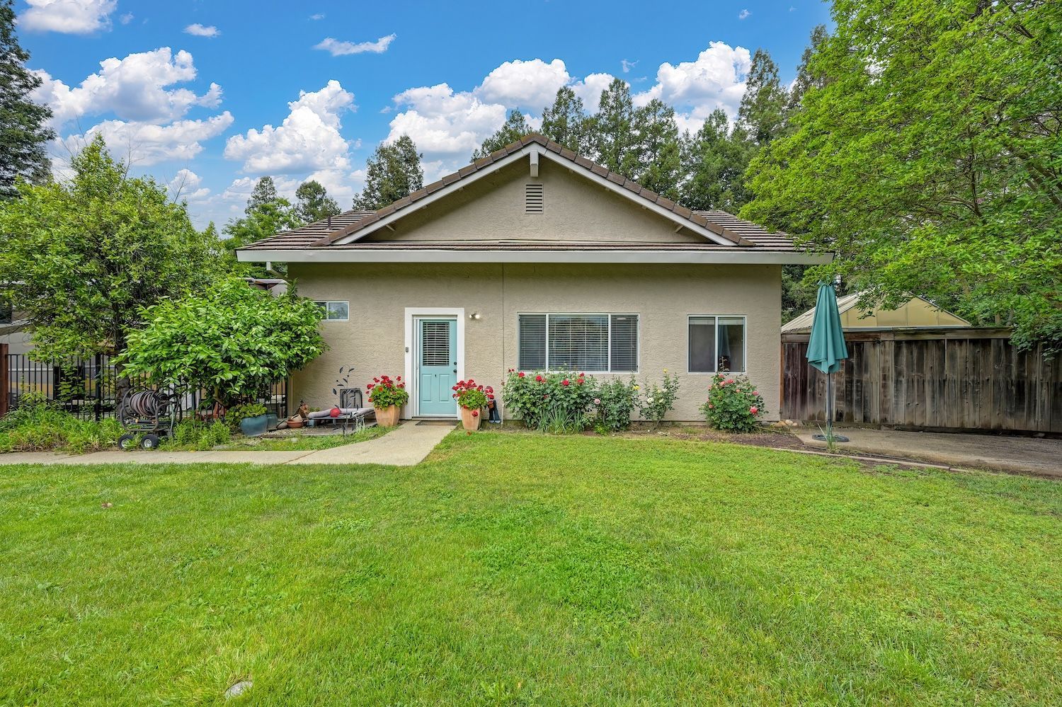 Set on a sprawling 1.1-acre lot in the sought-after neighborhood of Silver Springs, this beautifully maintained Elliott-built residence offers space, flexibility, and thoughtful upgrades in a prime location. Designed with both everyday living and entertaining in mind, the functional floorplan features a desirable main-level primary suite, an additional first-floor bedroom, two upstairs bedrooms, and a versatile bonus room. The heart of the home showcases a fully remodeled kitchen with abundant cabinetry, double ovens, and a seamless connection to the main living areas. Rich engineered Brazilian cherry hardwood flooring, alder cabinetry, and multiple French doors create a warm yet elevated aesthetic, while remodeled bathrooms and a spa-inspired primary suite with an oversized jetted tub and walk-in shower add to the home's comfort and appeal. Step outside to your own private retreat, complete with a pool and spa, expansive grounds, mature landscaping, and endless potential for outdoor living. The property is fully fenced and includes RV access with power, a three-car garage with workspace, a greenhouse, rose garden, and shed, ideal for hobbyists, gardeners, or those needing additional storage. Adding to the exceptional versatility of this home is the detached guest house which offers approximately 840 square feet of independent living space with its own kitchen, living area, bedroom, bathroom, laundry, and private entrance. A great option for multigenerational living, extended guests, or income potential. With extensive updates completed over the years, permitted improvements, and pride of ownership throughout, this is a unique opportunity to own a property that combines acreage, functionality, and lifestyle, all with no HOA and within close proximity to everyday conveniences.