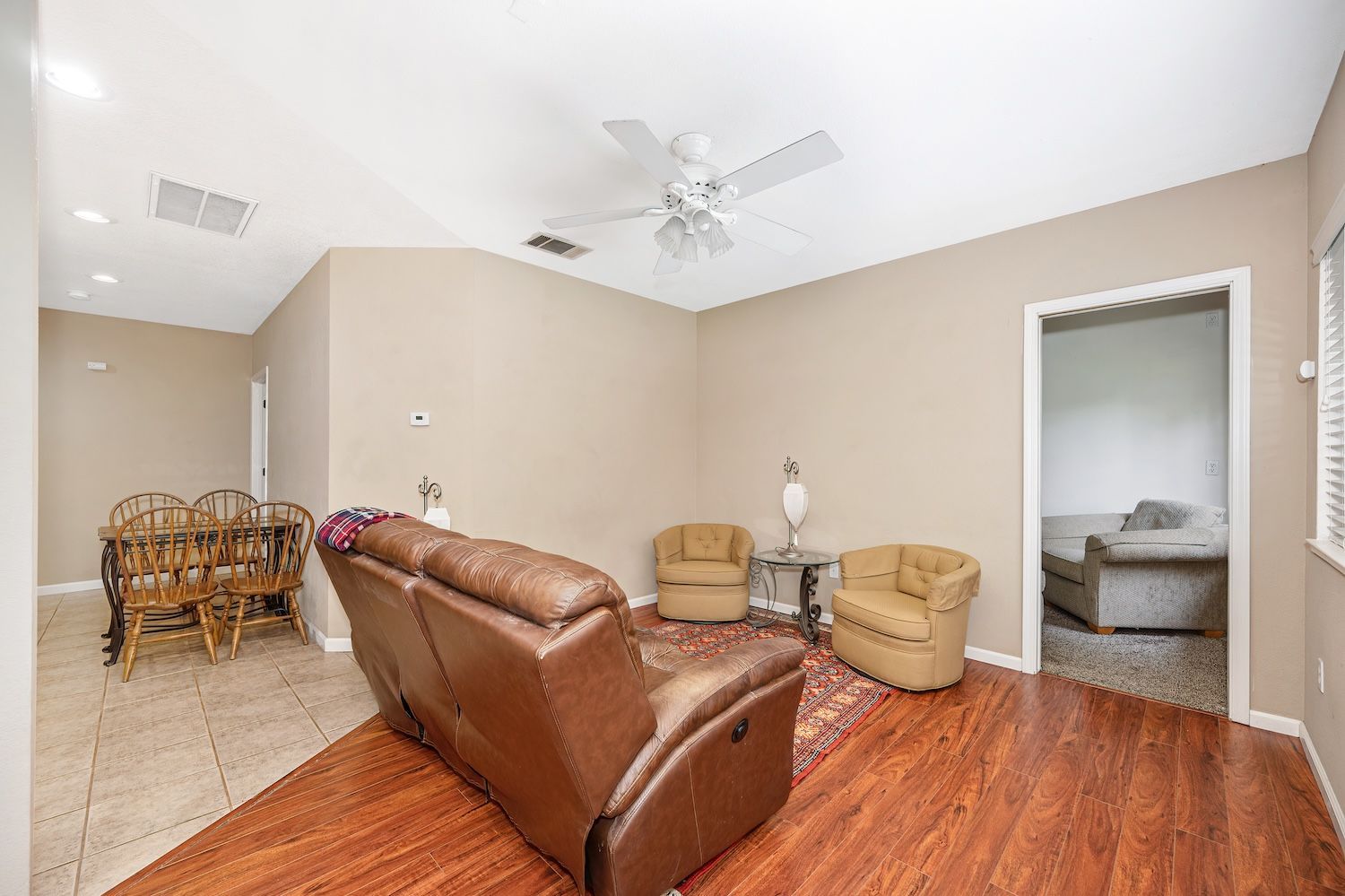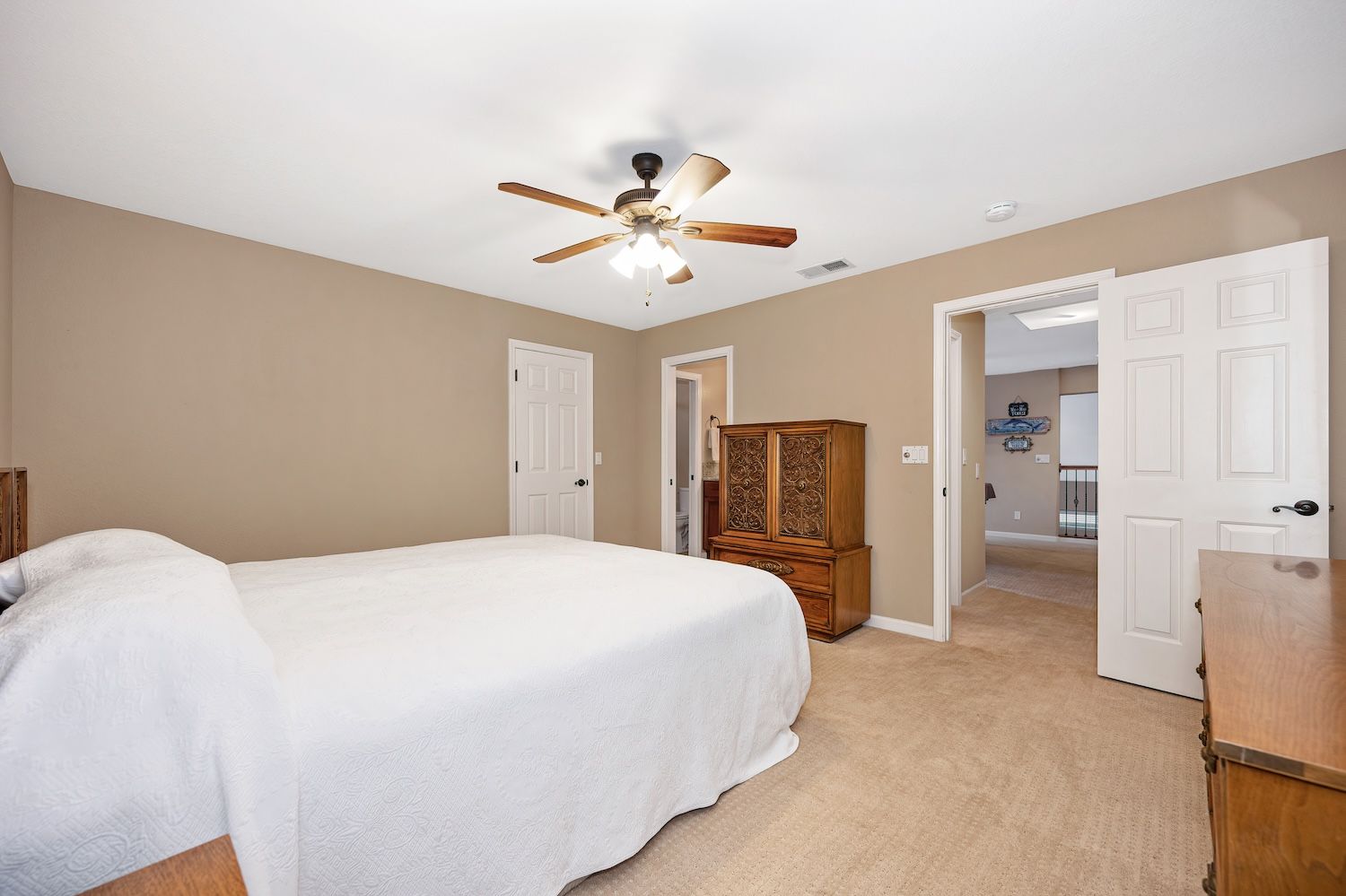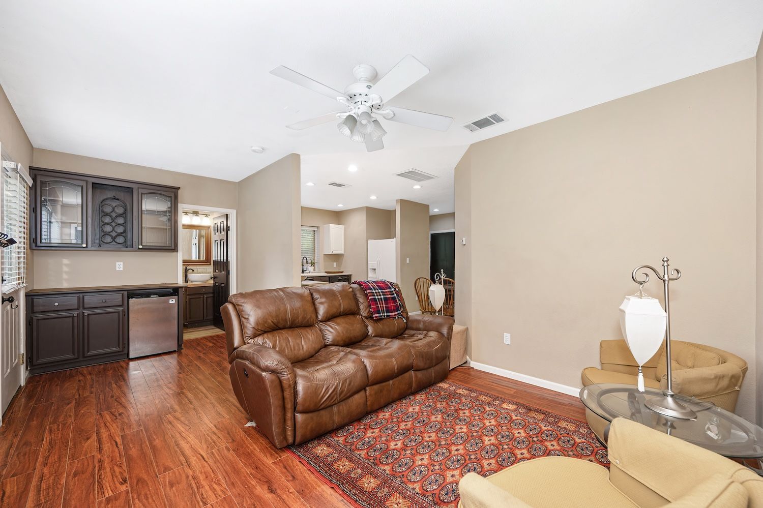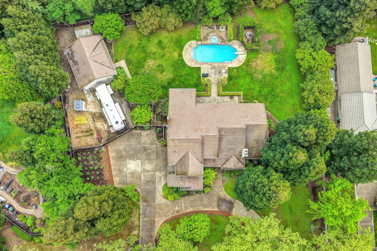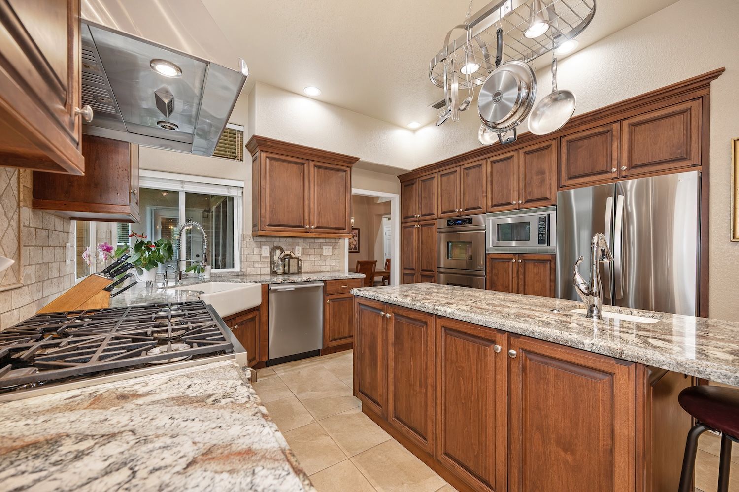 Set on a sprawling 1.1-acre lot in the sought-after neighborhood of Silver Springs, this beautifully maintained Elliott-built residence offers space, flexibility, and thoughtful upgrades in a prime location. Designed with both everyday living and entertaining in mind, the functional floorplan features a desirable main-level primary suite, an additional first-floor bedroom, two upstairs bedrooms, and a versatile bonus room. The heart of the home showcases a fully remodeled kitchen with abundant cabinetry, double ovens, and a seamless connection to the main living areas. Rich engineered Brazilian cherry hardwood flooring, alder cabinetry, and multiple French doors create a warm yet elevated aesthetic, while remodeled bathrooms and a spa-inspired primary suite with an oversized jetted tub and walk-in shower add to the home's comfort and appeal. Step outside to your own private retreat, complete with a pool and spa, expansive grounds, mature landscaping, and endless potential for outdoor living. The property is fully fenced and includes RV access with power, a three-car garage with workspace, a greenhouse, rose garden, and shed, ideal for hobbyists, gardeners, or those needing additional storage. Adding to the exceptional versatility of this home is the detached guest house which offers approximately 840 square feet of independent living space with its own kitchen, living area, bedroom, bathroom, laundry, and private entrance. A great option for multigenerational living, extended guests, or income potential. With extensive updates completed over the years, permitted improvements, and pride of ownership throughout, this is a unique opportunity to own a property that combines acreage, functionality, and lifestyle, all with no HOA and within close proximity to everyday conveniences.