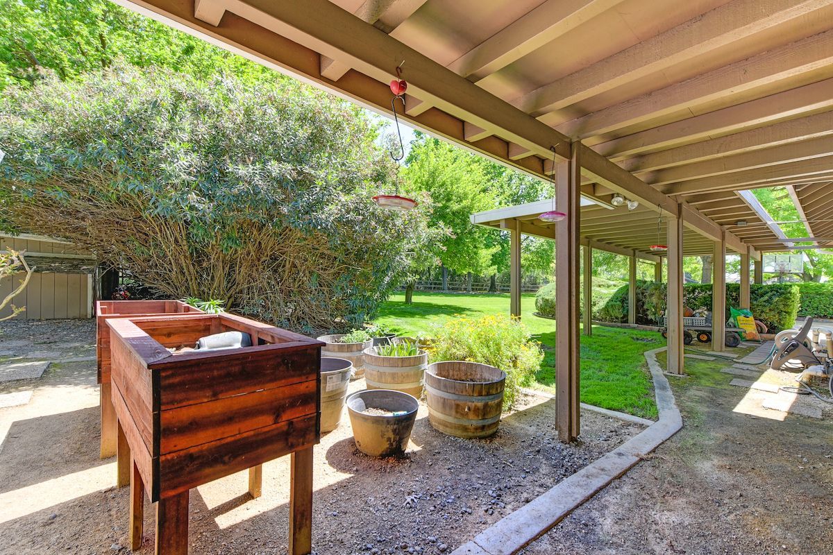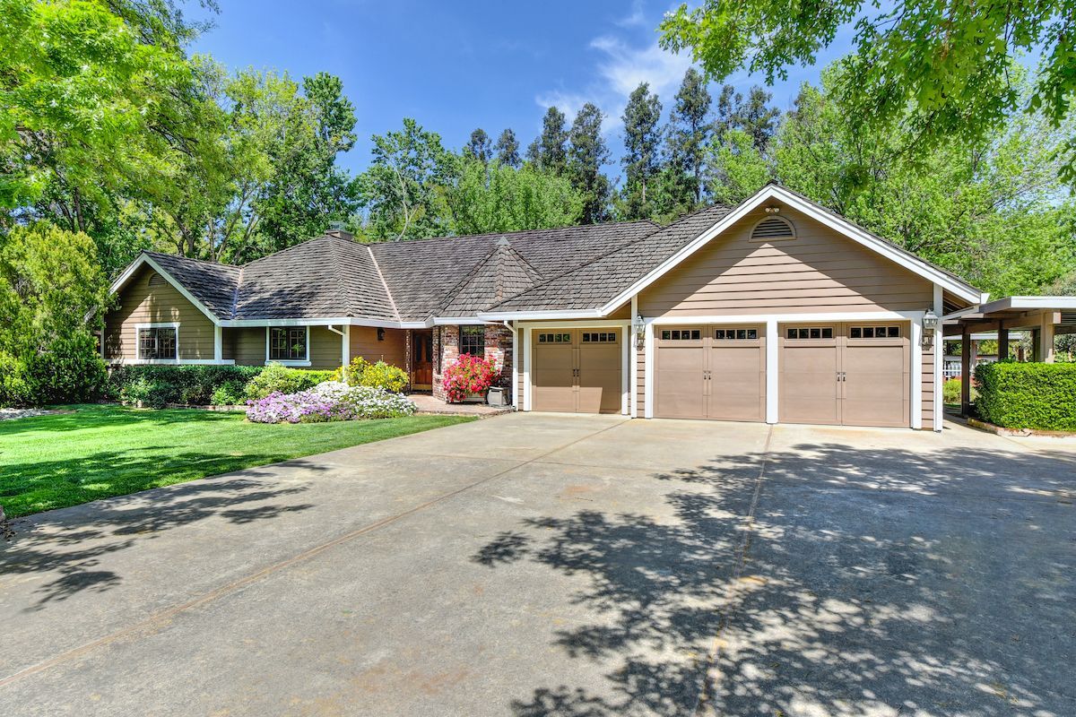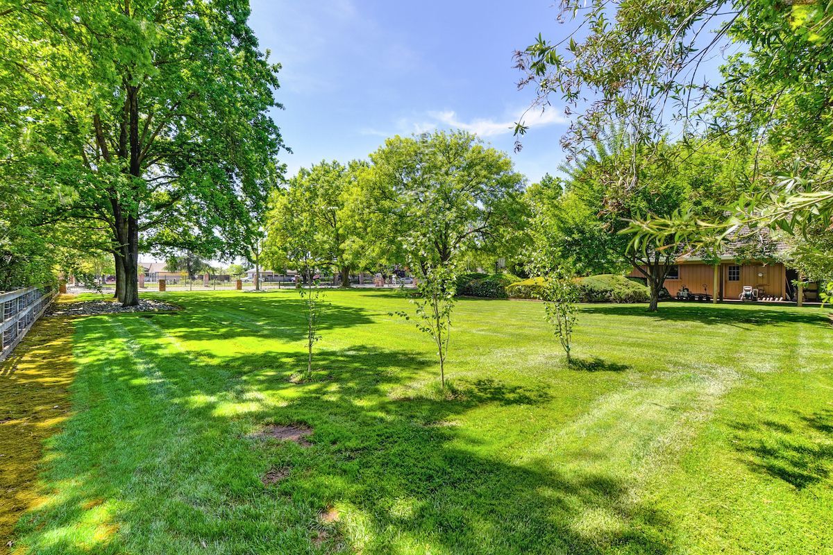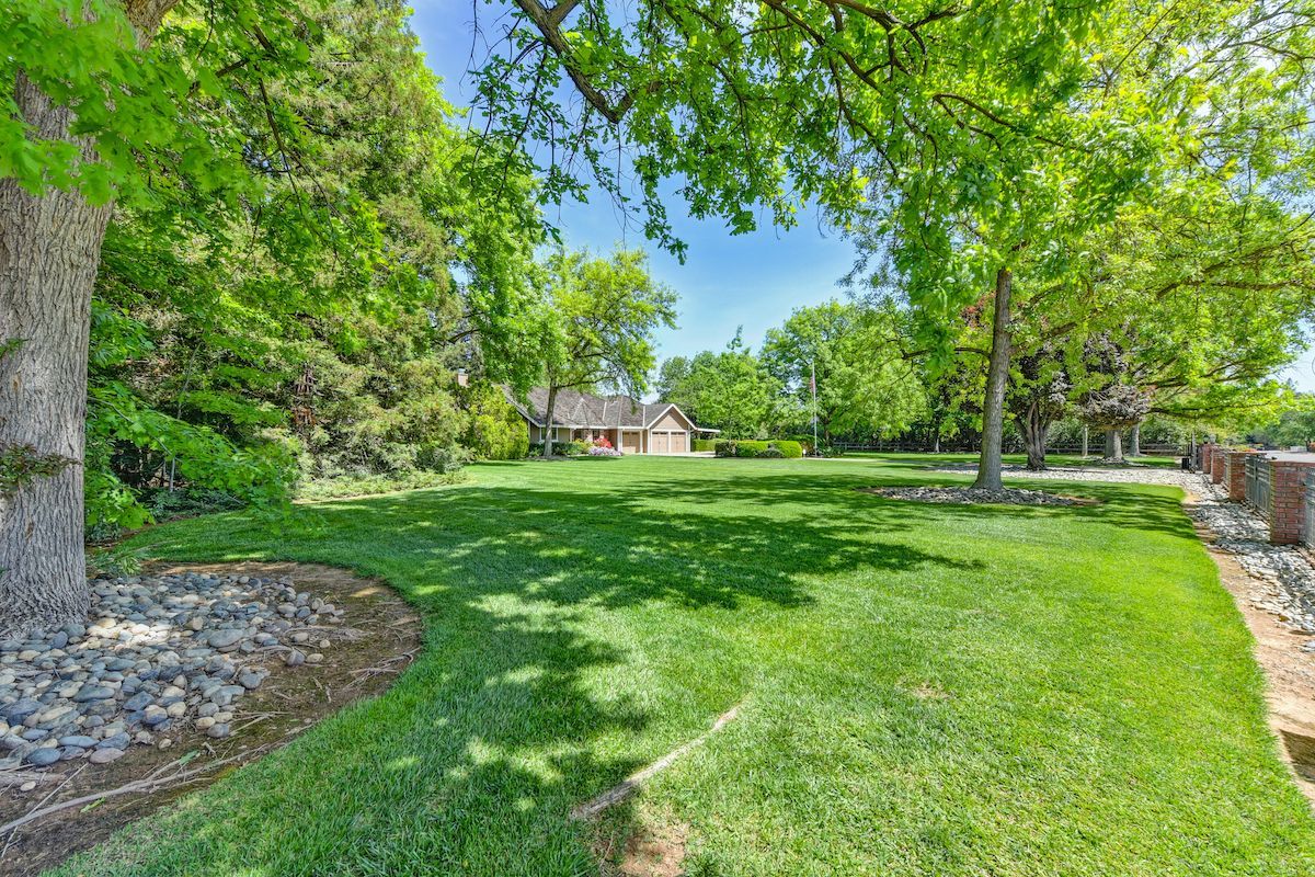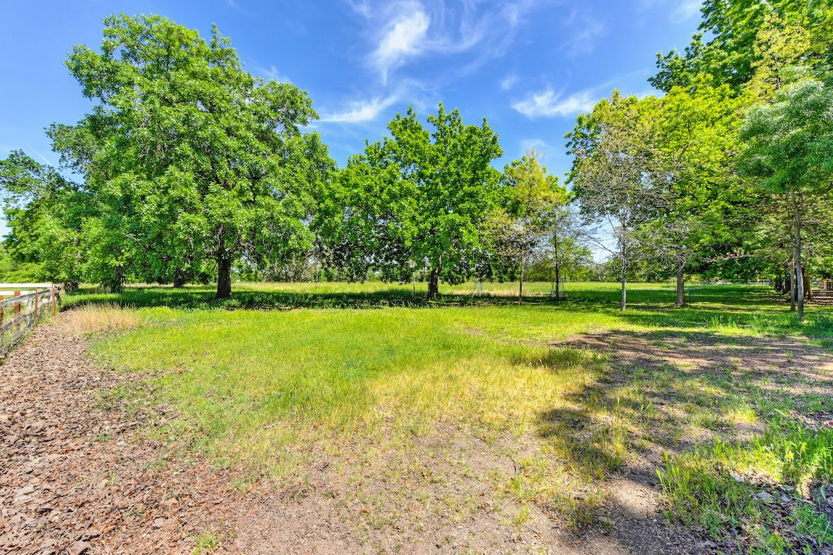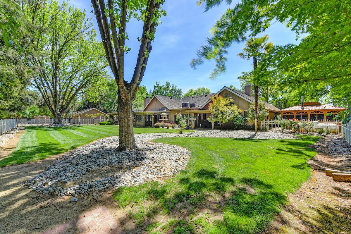 Incredible 4.8-acre property on one of the most desired streets in the area. The private gated entry leads to a wonderful country ranchette estate. The true single-story home offers a flowing floor plan with spacious rooms and charming details. The layout has formal living and dining rooms, a remodeled kitchen, family room with a brick fireplace surround, and a great primary suite with a remodeled bathroom that includes heated floors. The amazing grounds are landscaped with an abundance of lush trees and lawns and boasts a lot of privacy. The 3-rail cross fenced pasture is irrigated with pop-up sprinklers and has a feed shed with power. Other highlights include an enclosed swim-spa, generator, enclosed sunroom, corian countertops, and covered patio. The property offers endless opportunities including the potential for horses, orchards, vineyards, ADU, animals, and more. Additionally, the home has an attached 3-car garage, plus a detached 2-car garage/shop, RV storage, and plenty of room for more parking.
