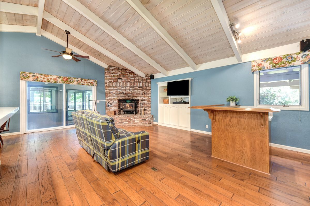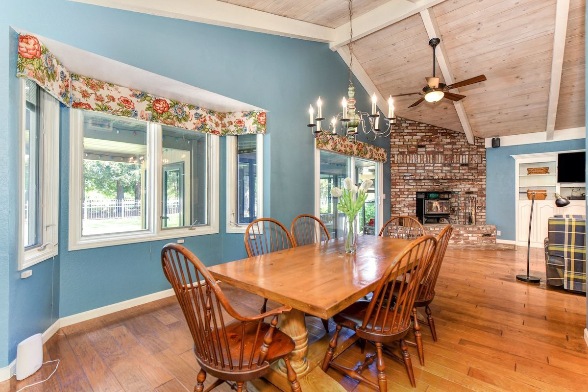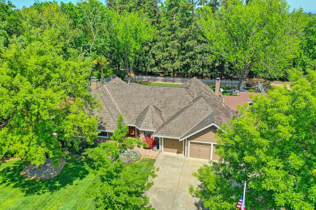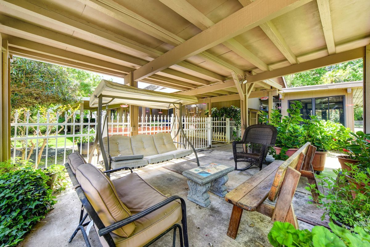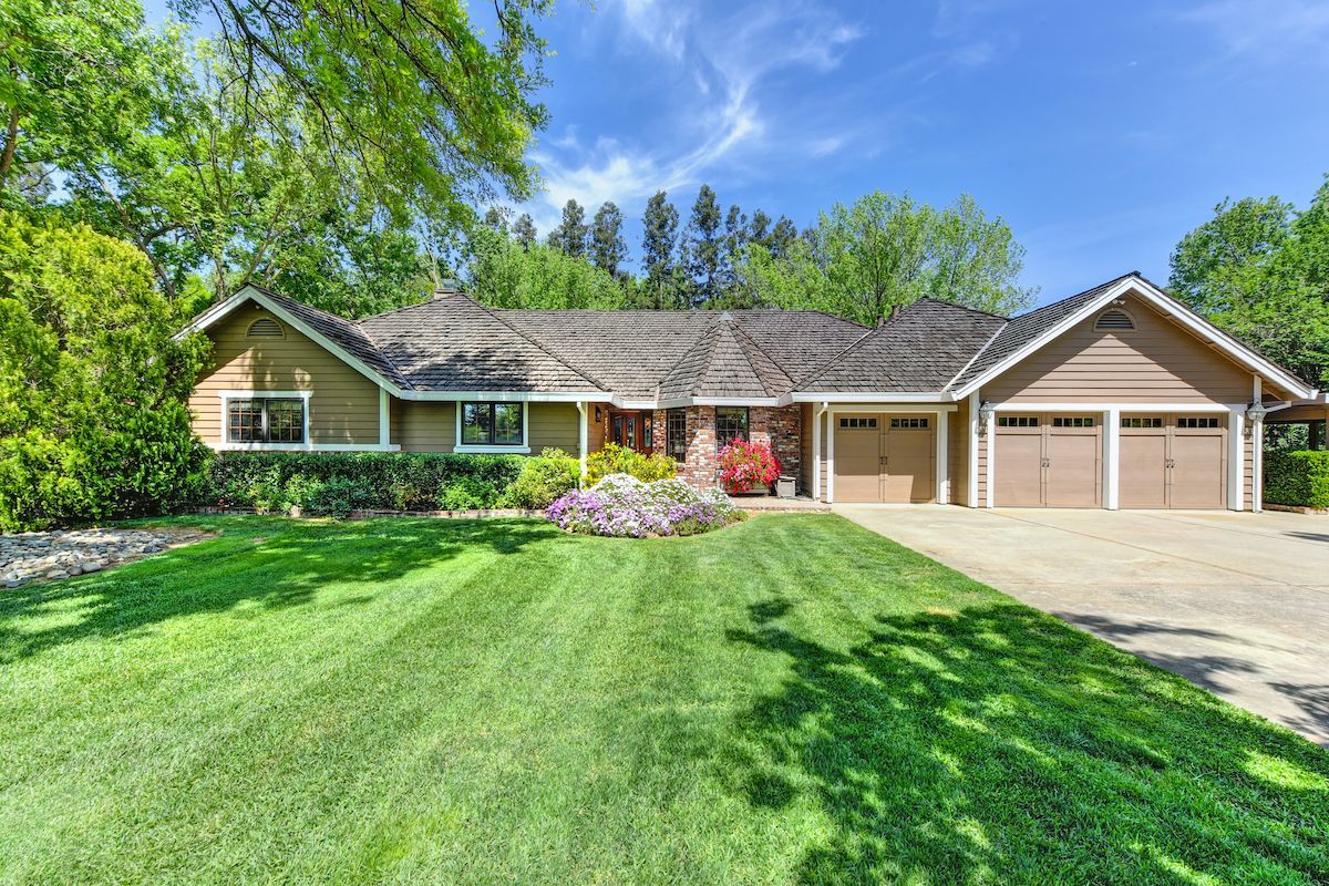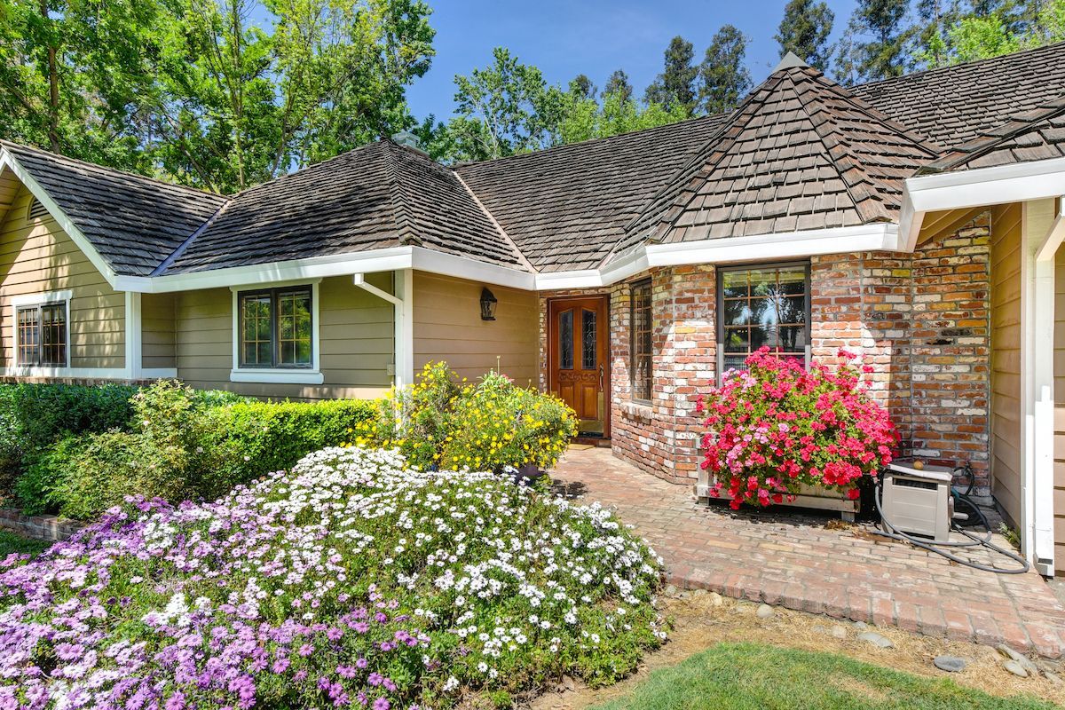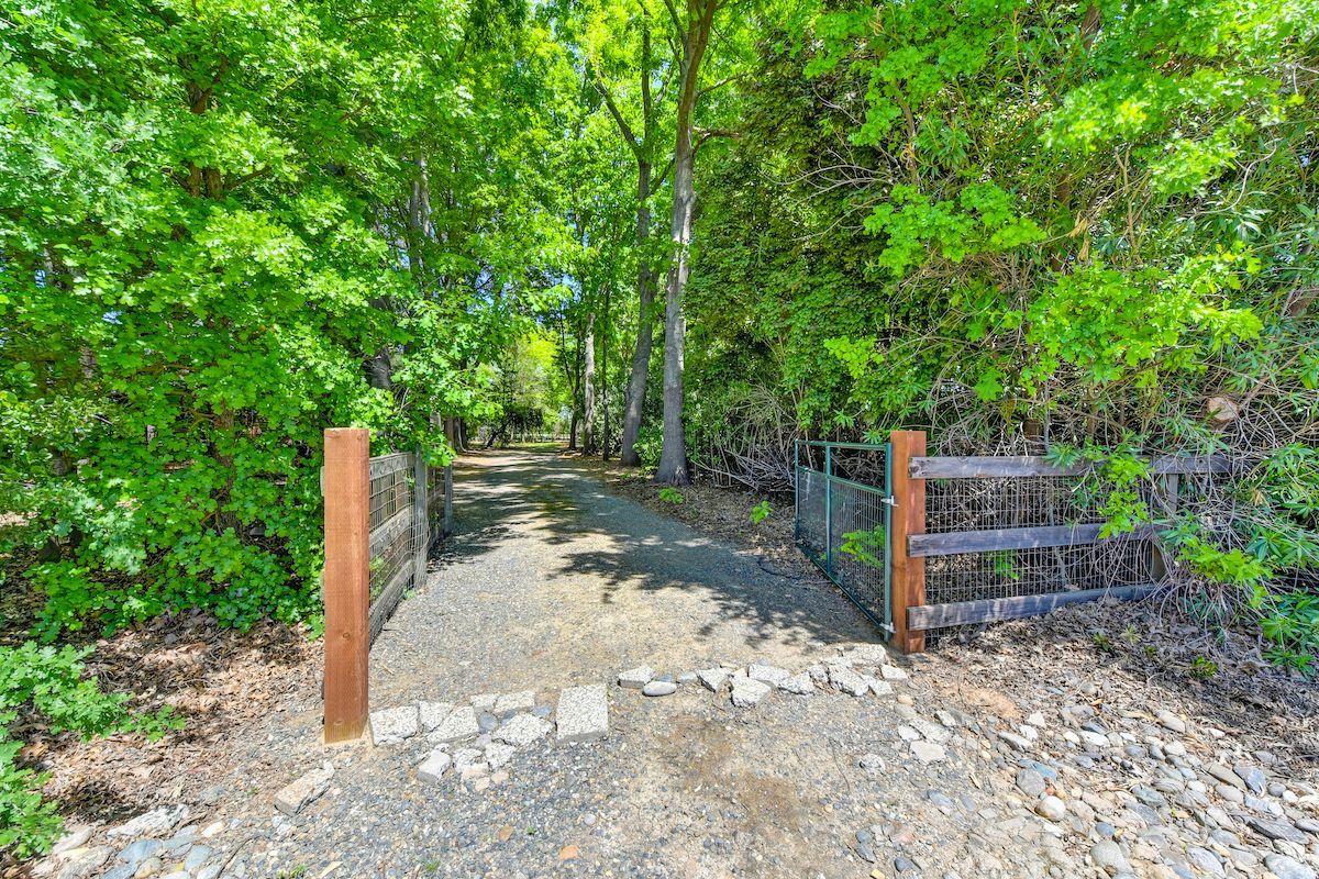 Incredible 4.8-acre property on one of the most desired streets in the area. The private gated entry leads to a wonderful country ranchette estate. The true single-story home offers a flowing floor plan with spacious rooms and charming details. The layout has formal living and dining rooms, a remodeled kitchen, family room with a brick fireplace surround, and a great primary suite with a remodeled bathroom that includes heated floors. The amazing grounds are landscaped with an abundance of lush trees and lawns and boasts a lot of privacy. The 3-rail cross fenced pasture is irrigated with pop-up sprinklers and has a feed shed with power. Other highlights include an enclosed swim-spa, generator, enclosed sunroom, corian countertops, and covered patio. The property offers endless opportunities including the potential for horses, orchards, vineyards, ADU, animals, and more. Additionally, the home has an attached 3-car garage, plus a detached 2-car garage/shop, RV storage, and plenty of room for more parking.