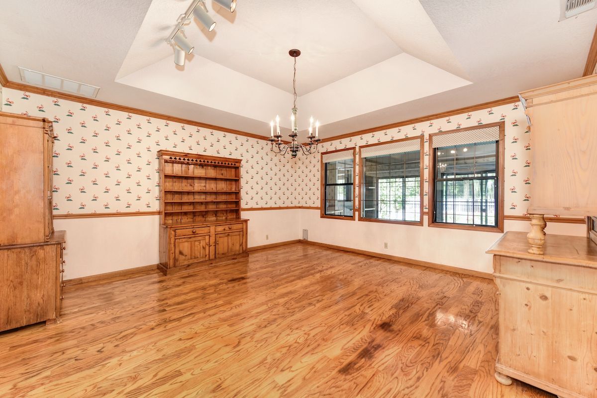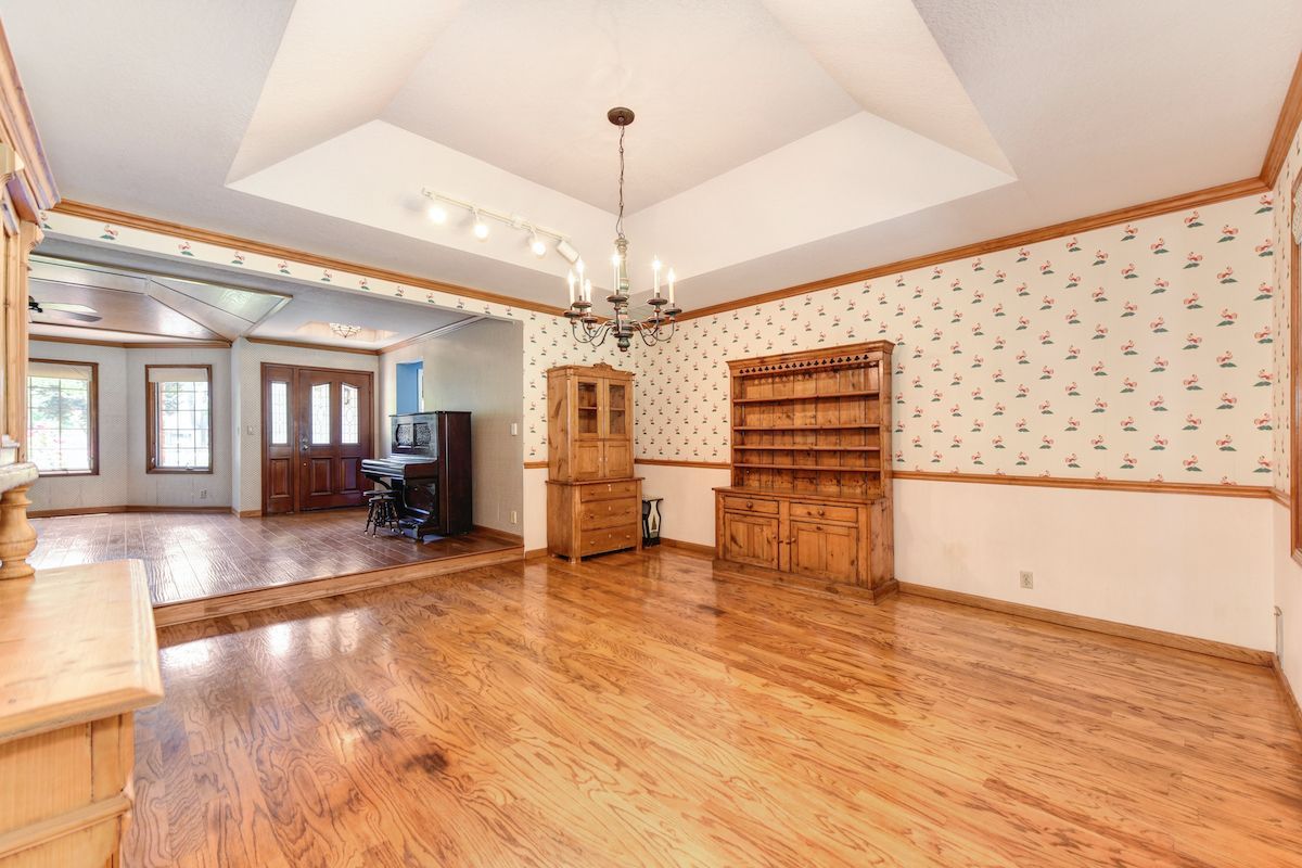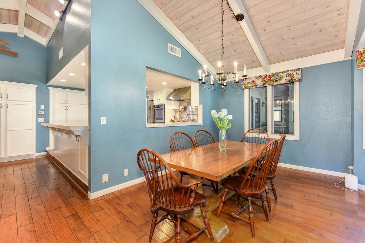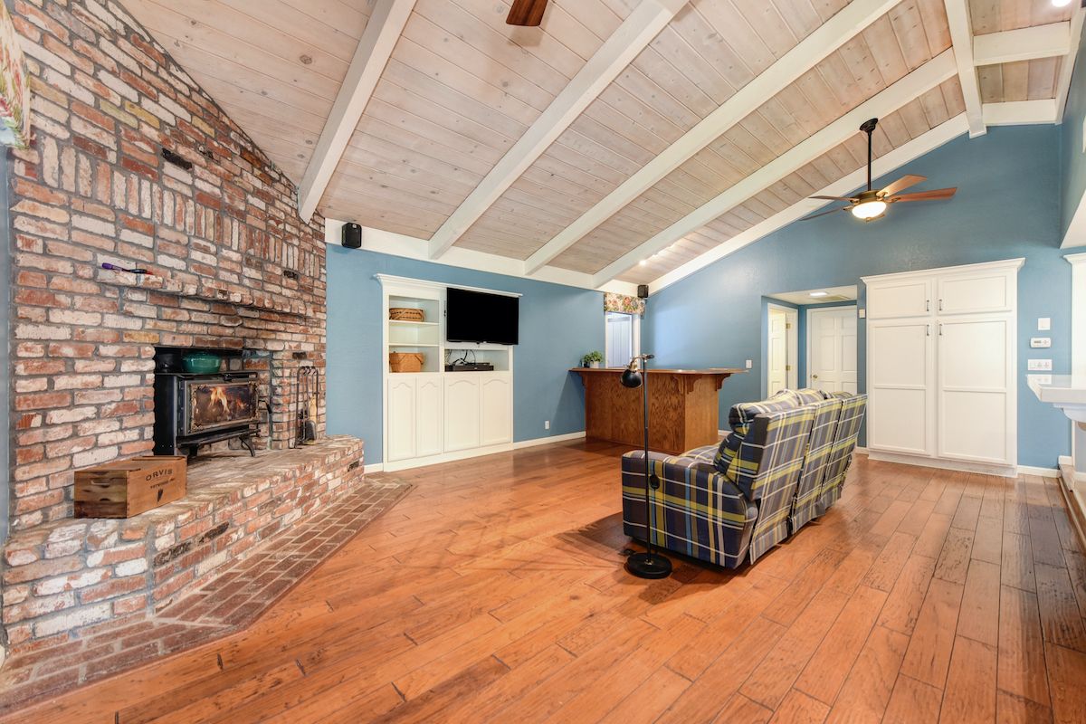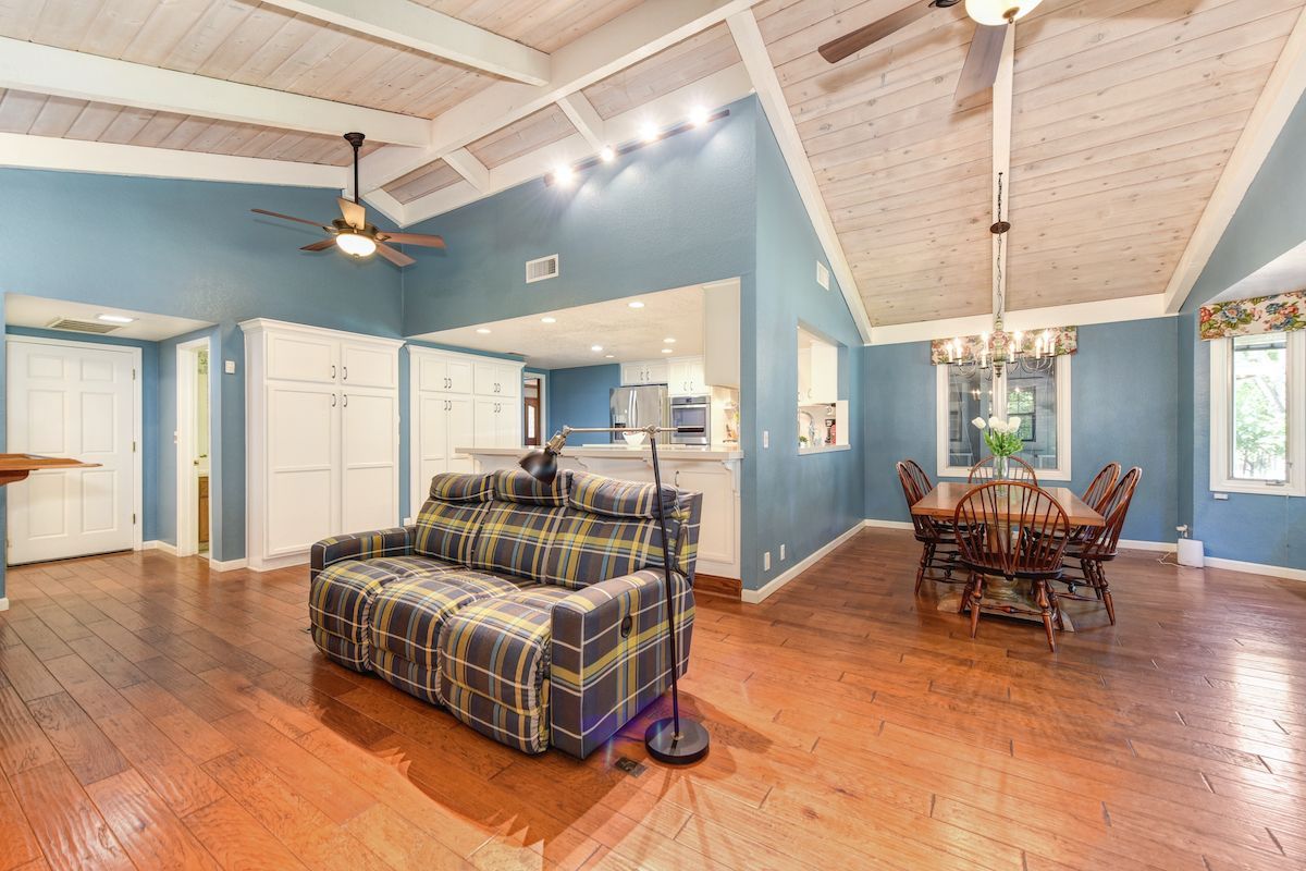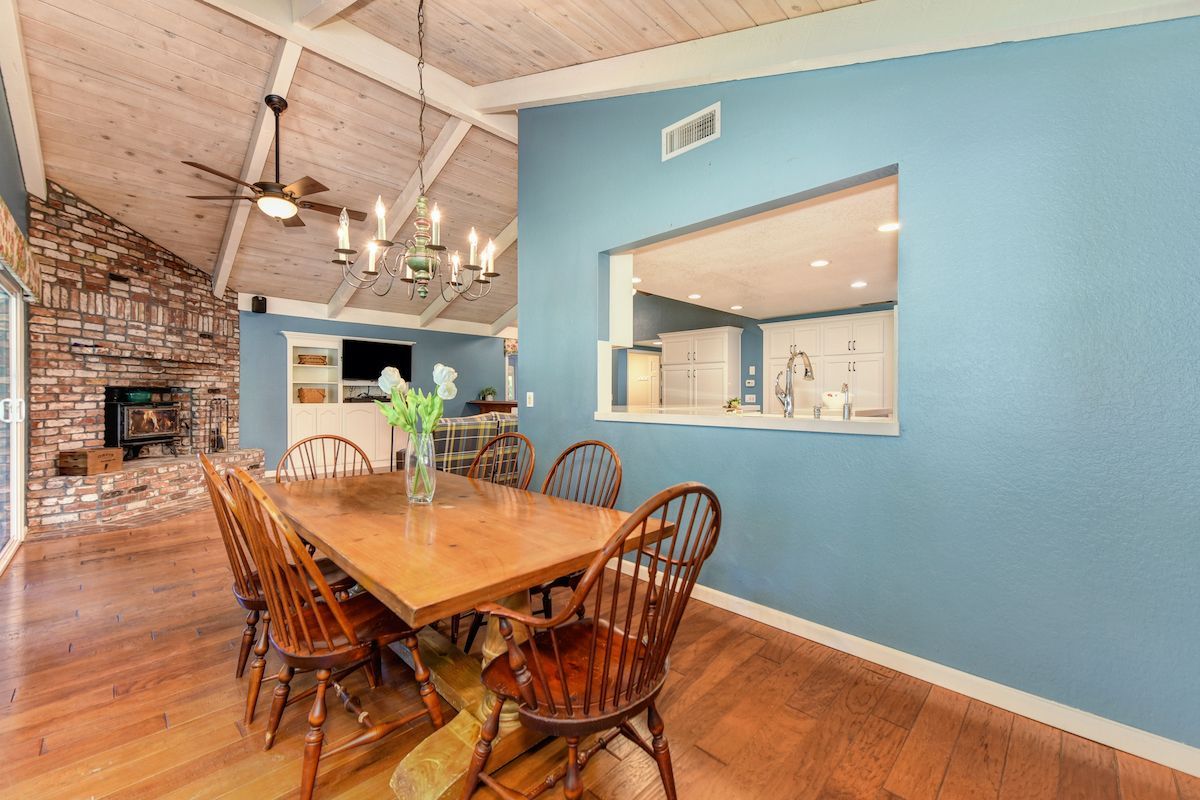 Incredible 4.8-acre property on one of the most desired streets in the area. The private gated entry leads to a wonderful country ranchette estate. The true single-story home offers a flowing floor plan with spacious rooms and charming details. The layout has formal living and dining rooms, a remodeled kitchen, family room with a brick fireplace surround, and a great primary suite with a remodeled bathroom that includes heated floors. The amazing grounds are landscaped with an abundance of lush trees and lawns and boasts a lot of privacy. The 3-rail cross fenced pasture is irrigated with pop-up sprinklers and has a feed shed with power. Other highlights include an enclosed swim-spa, generator, enclosed sunroom, corian countertops, and covered patio. The property offers endless opportunities including the potential for horses, orchards, vineyards, ADU, animals, and more. Additionally, the home has an attached 3-car garage, plus a detached 2-car garage/shop, RV storage, and plenty of room for more parking.
