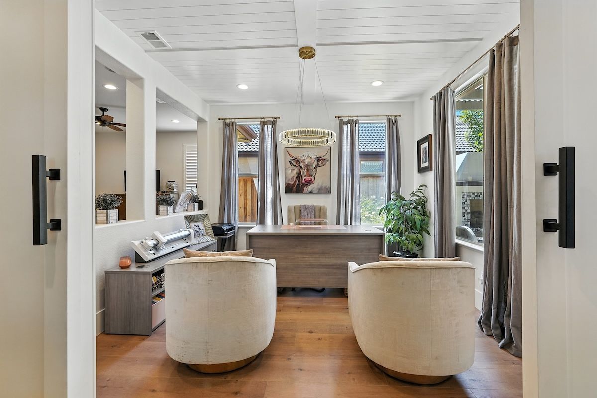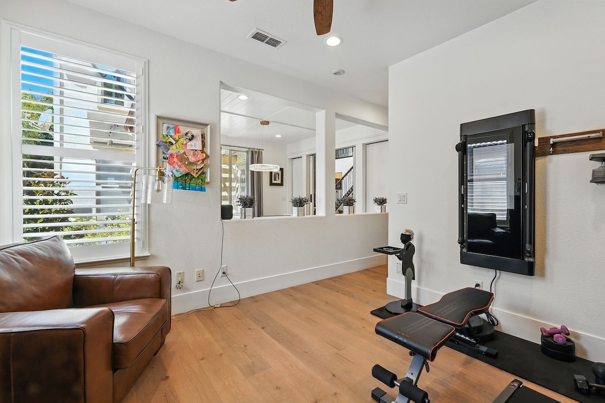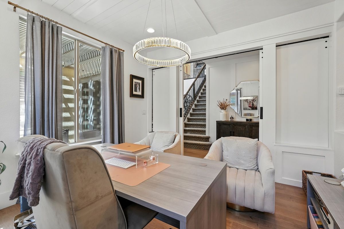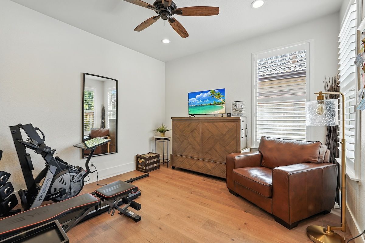 Stunningly remodeled home in the sought-after community of The Parkway has been fully renovated inside and out with stylish fixtures and designer touches. The functional floor plan offers a lot of flexible living space. The downstairs has an open kitchen and family room, formal dining room with access to the courtyard, office, a fitness room (can be converted to a fourth bedroom), and a newly updated laundry room. Upstairs has the spacious primary suite with a spa-like bathroom, two additional bedrooms, a renovated bathroom and a loft that could be an additional (5th) bedroom. Beautifully appointed with shiplap walls and ceilings, stainless steel appliances, quartz and marble counters, custom built-ins, plantation shutters, and wood-like laminate flooring, this Restoration Hardware-style home is exquisitely designed. The backyard paradise includes a newer pool, pergola, putting green, patios, and low-maintenance landscaping. The HOA includes roaming security and front yard landscaping, and the great location is close to trails, golf, shopping, dining, and more.