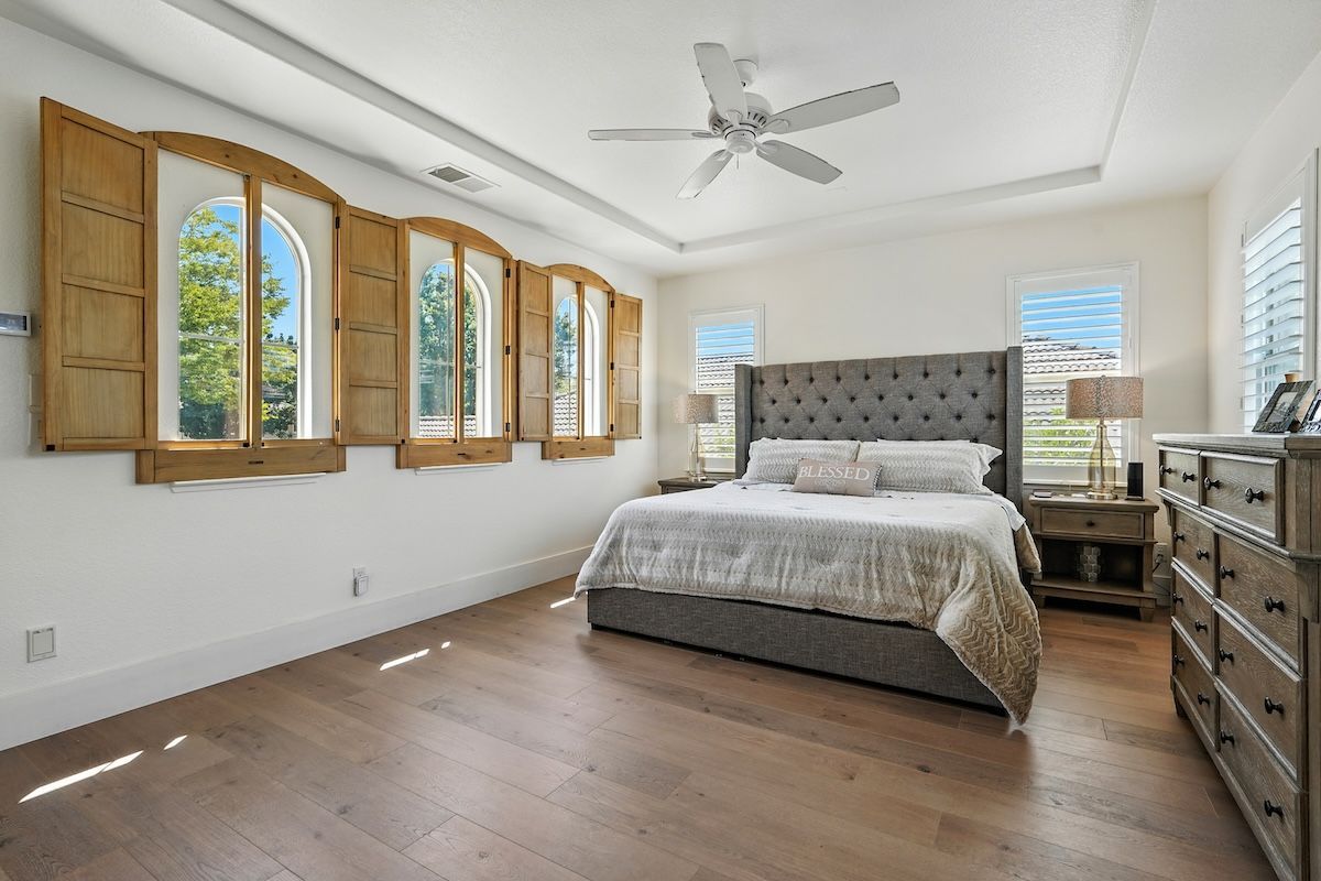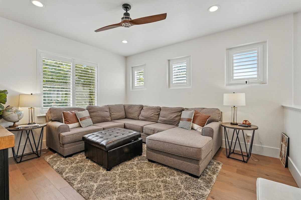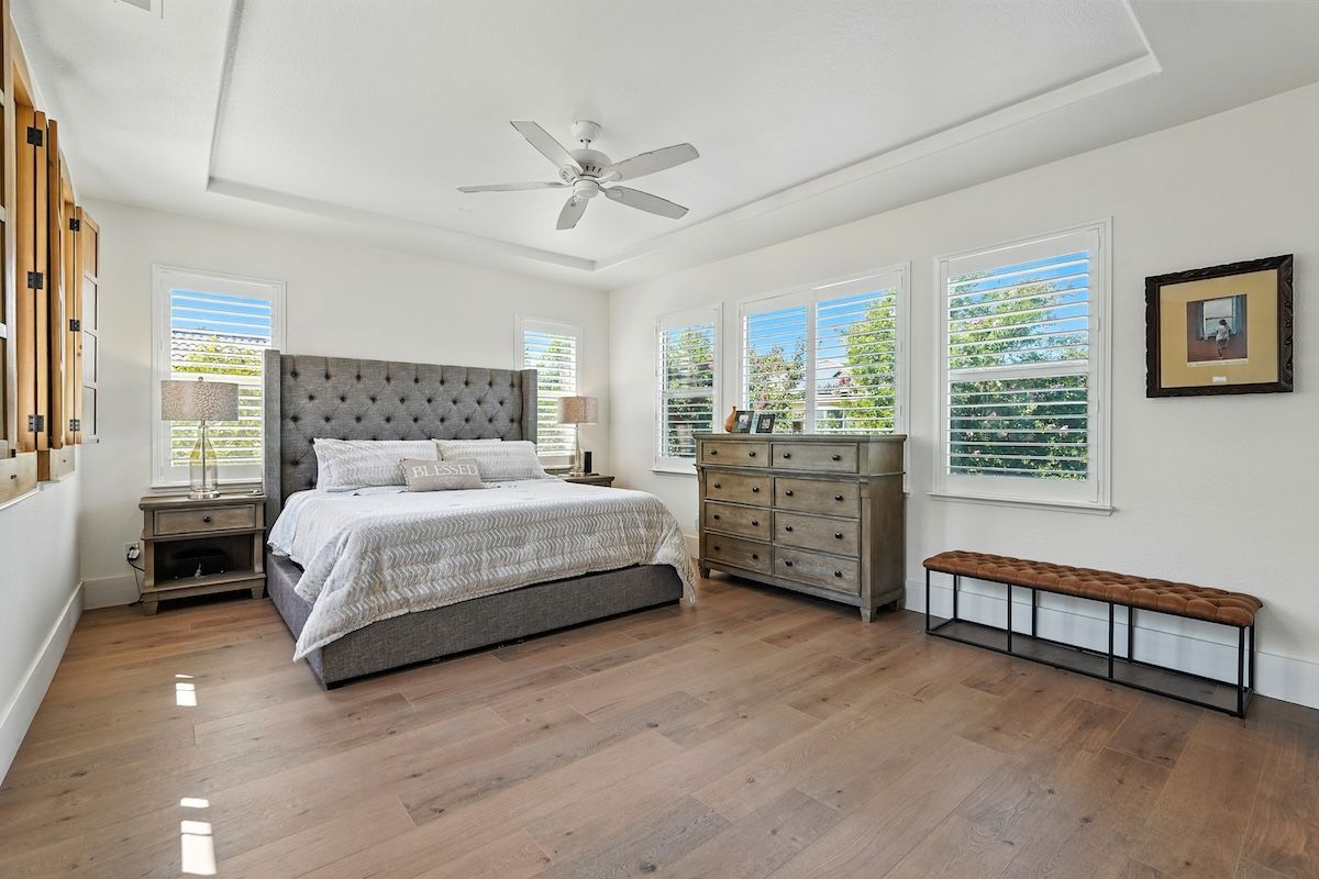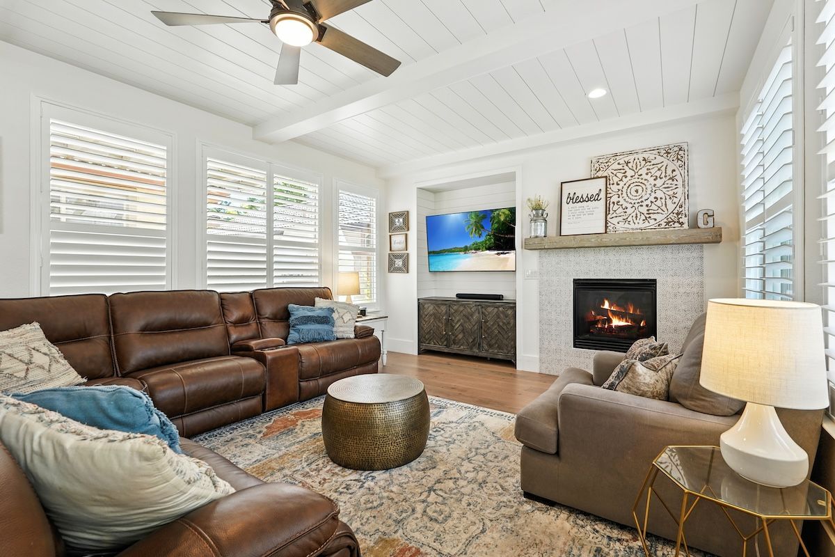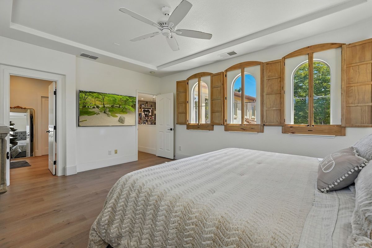 Stunningly remodeled home in the sought-after community of The Parkway has been fully renovated inside and out with stylish fixtures and designer touches. The functional floor plan offers a lot of flexible living space. The downstairs has an open kitchen and family room, formal dining room with access to the courtyard, office, a fitness room (can be converted to a fourth bedroom), and a newly updated laundry room. Upstairs has the spacious primary suite with a spa-like bathroom, two additional bedrooms, a renovated bathroom and a loft that could be an additional (5th) bedroom. Beautifully appointed with shiplap walls and ceilings, stainless steel appliances, quartz and marble counters, custom built-ins, plantation shutters, and wood-like laminate flooring, this Restoration Hardware-style home is exquisitely designed. The backyard paradise includes a newer pool, pergola, putting green, patios, and low-maintenance landscaping. The HOA includes roaming security and front yard landscaping, and the great location is close to trails, golf, shopping, dining, and more.