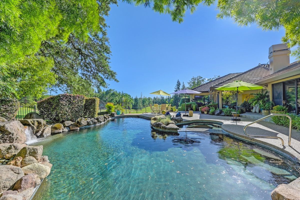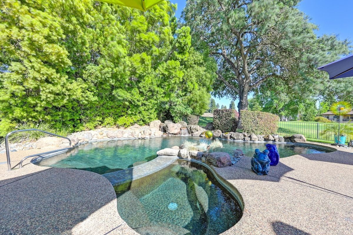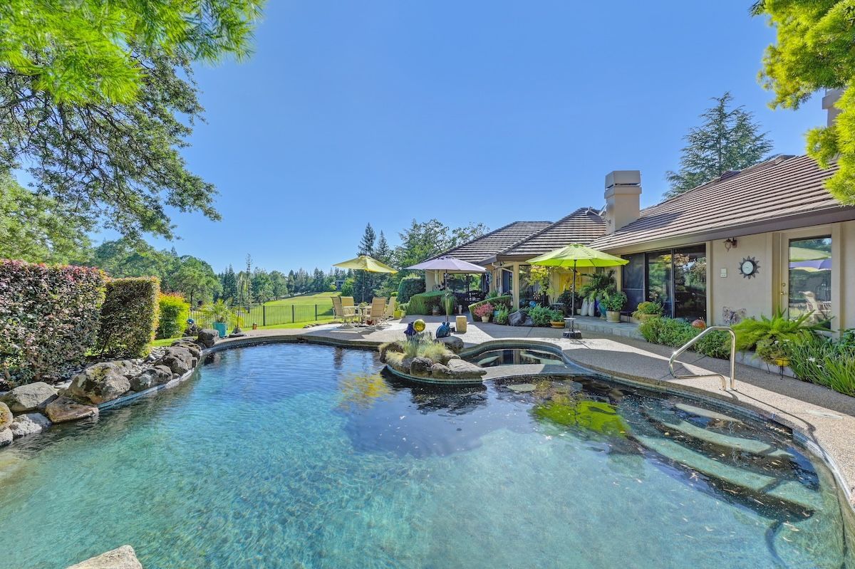 Beautiful, custom home with panoramic views of Rancho Murieta's championship North course. This exquisite residence is nestled in a peaceful cul-de-sac, backing to the 14th fairway and green and offers multiple options for living, entertaining, and enjoying. Step inside the spacious and flexible floor plan to find an expansive main living area that flows from formal dining to great room living to kitchen. Continue through the home to private primary suite that boasts a dual-sided fireplace, spa-like bathroom, and an incredible double walk-in closet. The home also has a large bonus room that can be used as a game room, playroom, or library. Additionally, the home has a remarkable guest/in-law quarters with a sitting room, bedroom, and full bathroom. With amazing storage throughout, the layout is exceptionally designed. Outside, the tranquil yard is a paradise with a stunning pool and spa, patios, gorgeous landscaping, and serene views of the lush golf course. The sought-after neighborhood offers its residents recreation, entertainment, social, and security amenities. The long list includes parks, trails, dog parks, tennis courts, lakes, picnic and beach areas, patrol, 24-hour guarded gate, and events. The community is also nearby shopping, eateries, equestrian center, and more!
