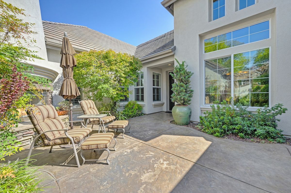 Expansive home in the gated community of Tiburon in East Roseville. The charming front courtyard welcomes with its fireplace, patio space, and multiple entrances to the house. Inside, the great floor plan features formal living and dining rooms, open kitchen and family room, expansive primary suite, en-suite bedroom, and two additional bedrooms. With beautiful views of the back gardens and lots of natural light throughout, the flowing layout is functional and inviting. The home has been impeccably maintained and improved with an updated HVAC, water heater, whole house fan, and home security. Out back, the stunning yard is impeccably landscaped creating a peaceful ambiance and lovely setting. The multiple sliders and doors create a perfect space for indoor/outdoor entertaining, relaxing, and enjoying. To top it off, the great Stoneridge location is close to trails, fitness center, medical facilities, shopping dining, and freeway access.