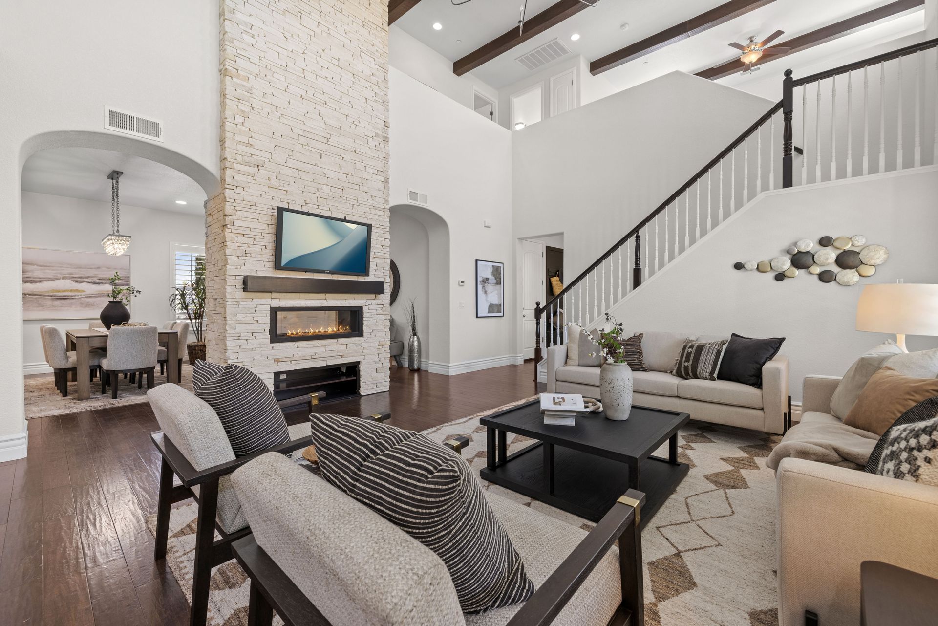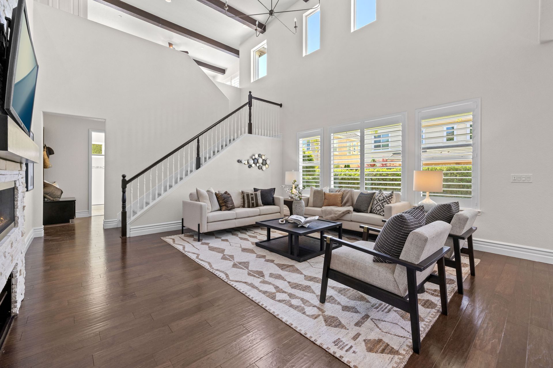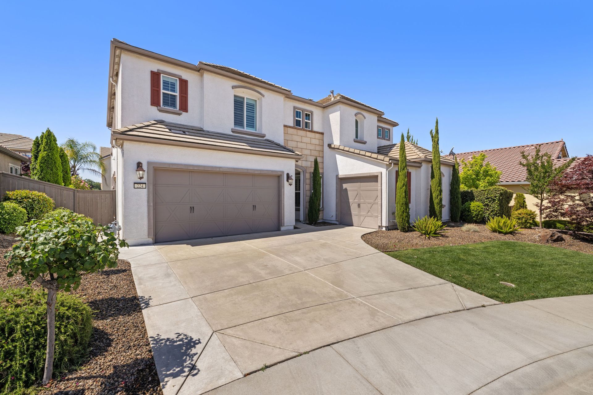 Gorgeous newer construction home, tucked into a quaint cul-de-sac in East Roseville. This pristine Tim Lewis-built residence is a rare find boasting an expansive layout, beautiful finishes, and a fantastic location. The spacious floor plan offers an inviting main living that is anchored by a stunning dual-sided fireplace blending the formal dining and an open kitchen and family room. Additionally, it has a first-floor bedroom and full bathroom, upstairs loft, and a large primary suite with a spa-like bathroom. The home is powered by a prepaid solar lease and appointed with plantation shutters throughout, stainless-steel appliances, open beamed ceilings, stylish finishes, and built-in garage storage. Out back, the wonderful backyard is a perfect place to relax on the covered patio or enjoy the lush lawn area. The sought-after location in the Stoneridge corridor of East Roseville with access to trails and parks, walkable shopping and dining, and close to fitness, medical, and freeway access.