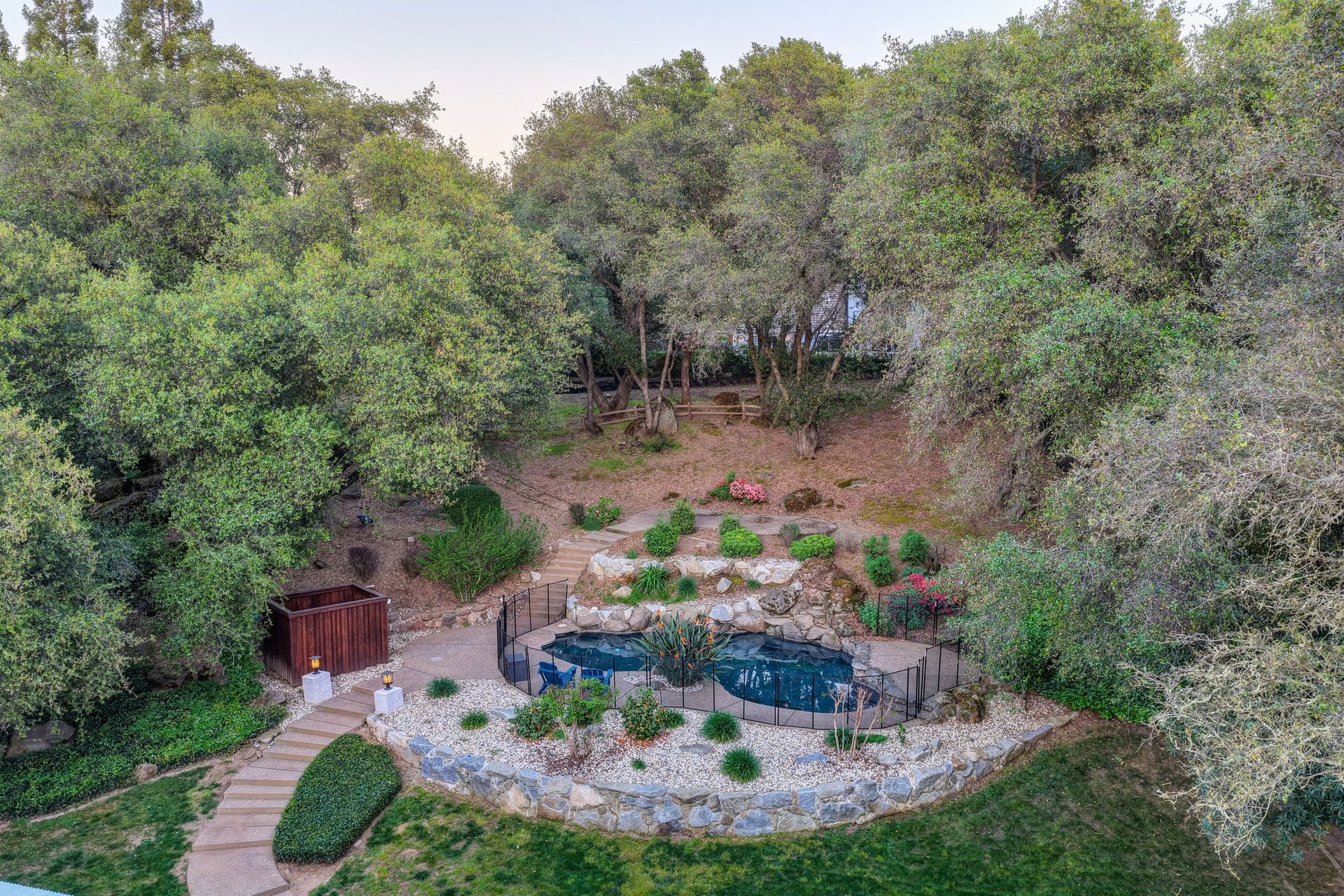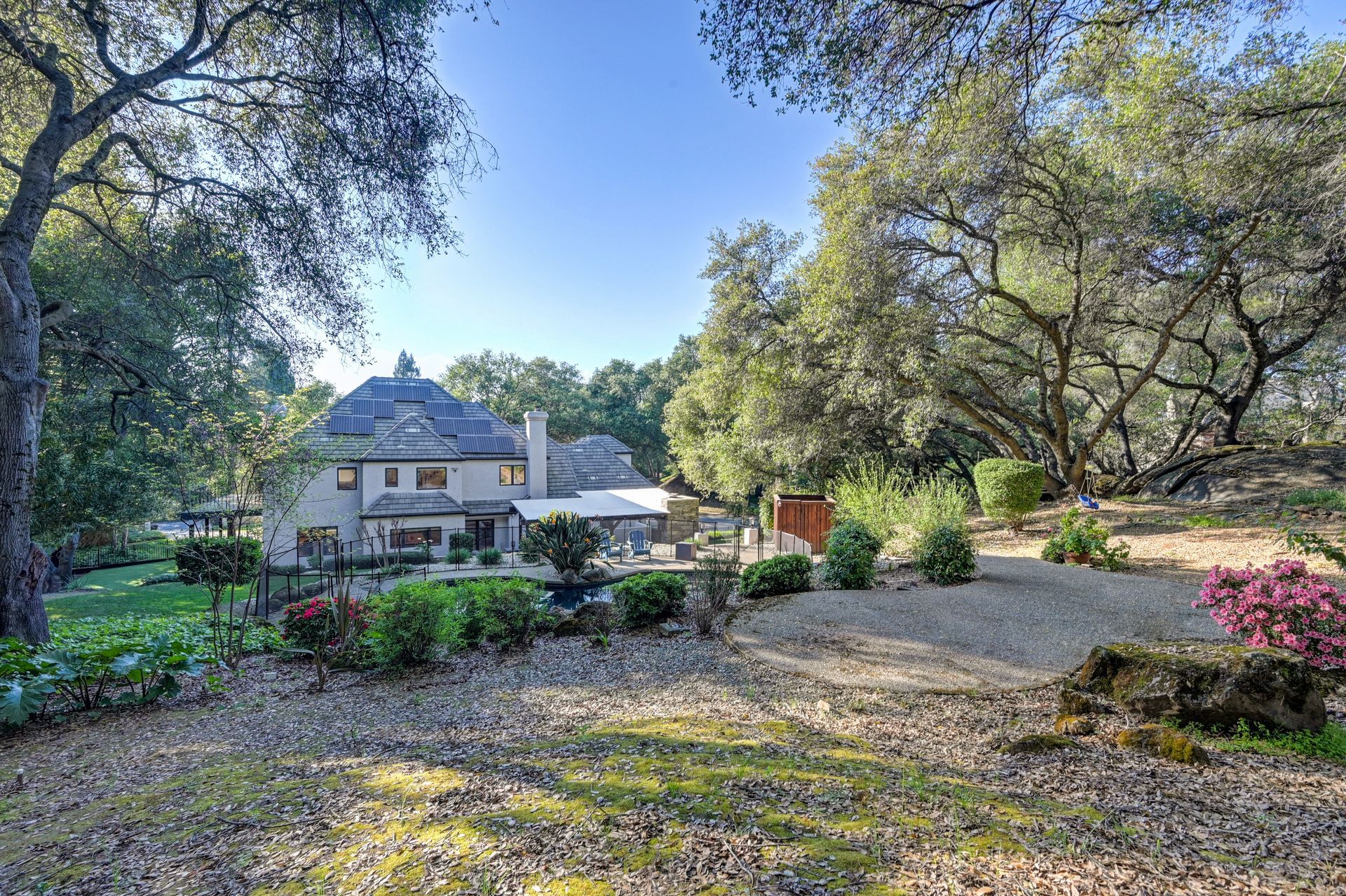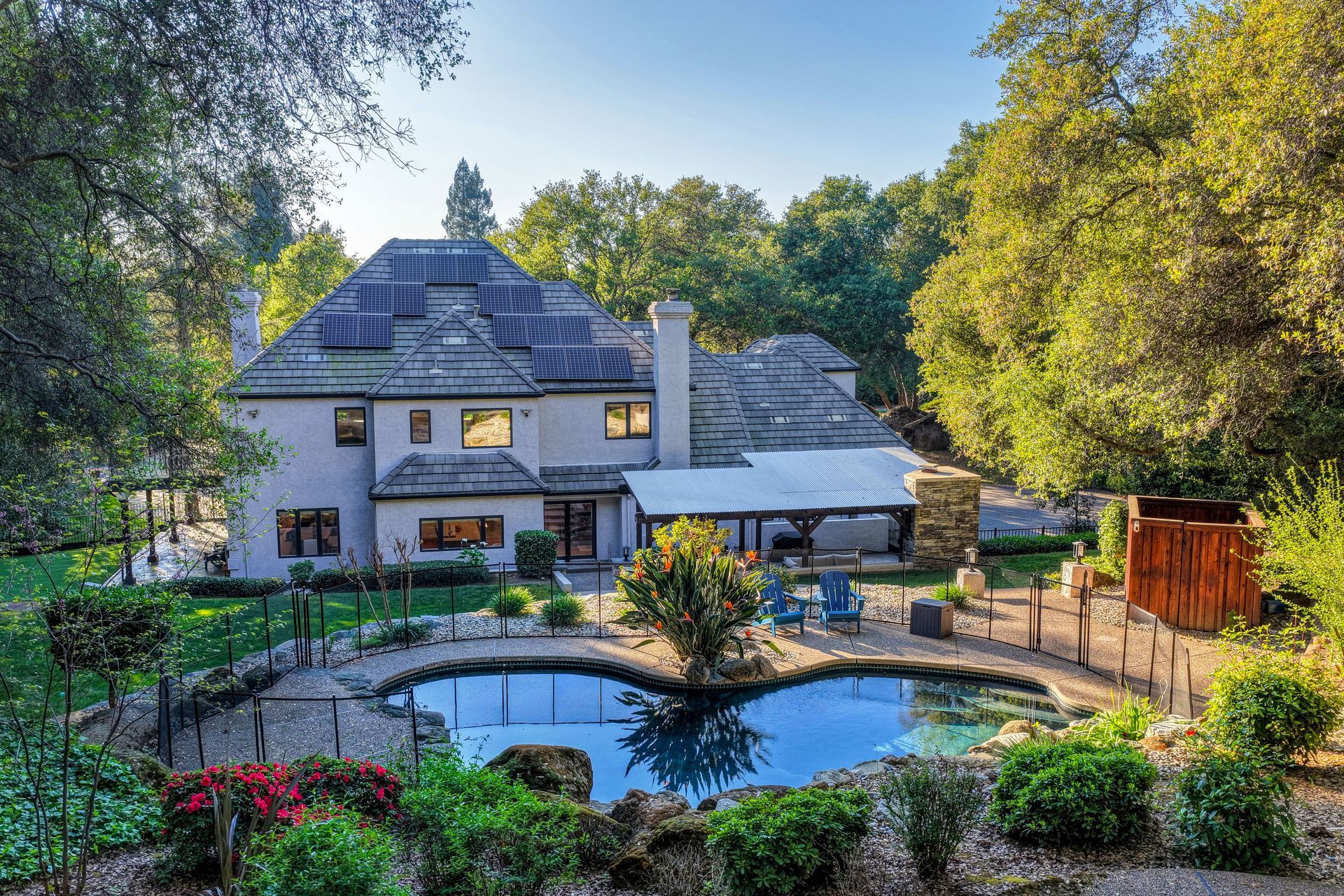 Tucked behind the gates of Loomis's coveted Placer Canyon community, 4911 Lexington Circle offers luxury, privacy, and thoughtful design on approximately 1.3 acres. From the moment you arrive, a circular driveway and lush, manicured grounds set the tone for what awaits inside. The residence showcases timeless architecture enhanced by modern updates, where a stunning chef's kitchen, complete with top-of-the-line appliances, custom cabinetry, and an open flow to the family room with wet bar, anchors the home's inviting, light-filled living spaces. Formal living and dining rooms provide elegant entertaining options, while a private office with its own deck offers a quiet retreat. The flexible floor plan includes a desirable downstairs bedroom with full bath, along with an oversized laundry and mudroom. Upstairs, the primary suite serves as a serene sanctuary, featuring a private balcony and a spa-inspired bathroom overlooking the resort-style backyard. A wing separate from the primary offers a bonus room perfect for media, games, or study and three additional bedrooms including one custom bunk room that includes custom-built beds, shelving and closet. Designed for both grand entertaining and relaxed living, the outdoor spaces are exceptional. Enjoy a saltwater pool, outdoor kitchen with fireplace, multiple patios, and a turf sports area, all connected by meandering pathways and surrounded by peaceful, private views. The property's multiple vignettes, seating areas and critter fencing further enhance its versatility and appeal. Complete with a 3-car garage, owned solar, and EV charger, this exceptional Placer Canyon estate embodies the best of Loomis luxury living where space, style, and setting come together seamlessly.