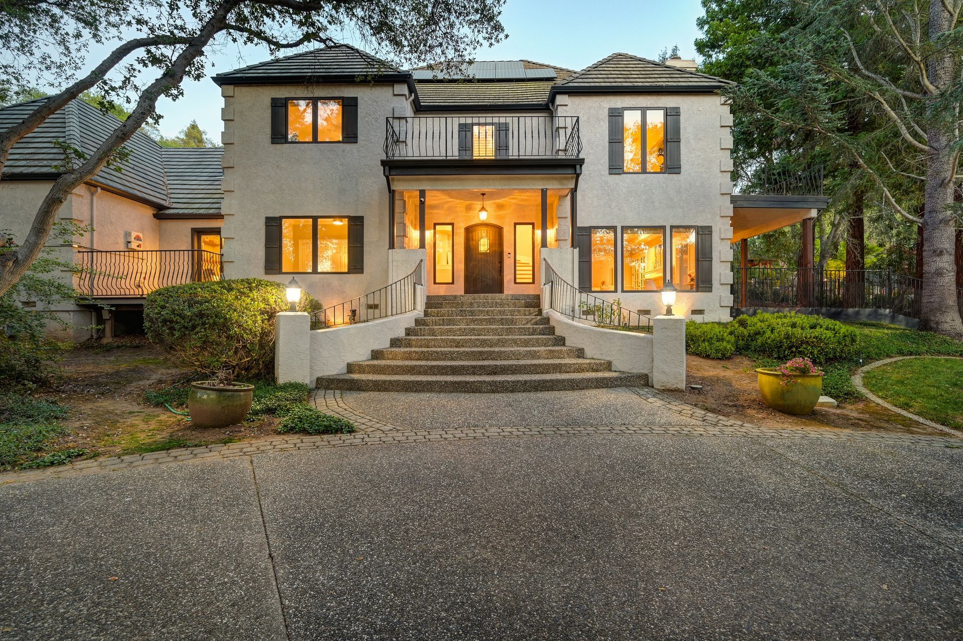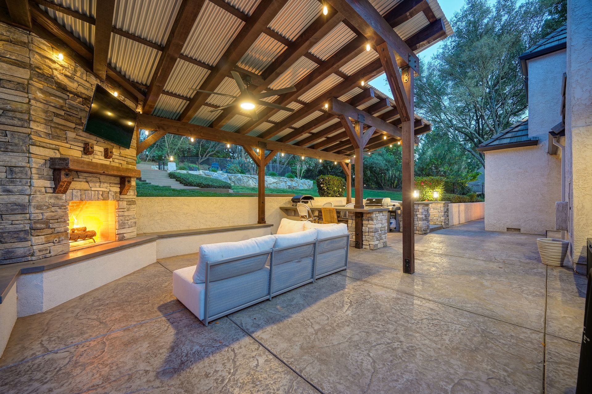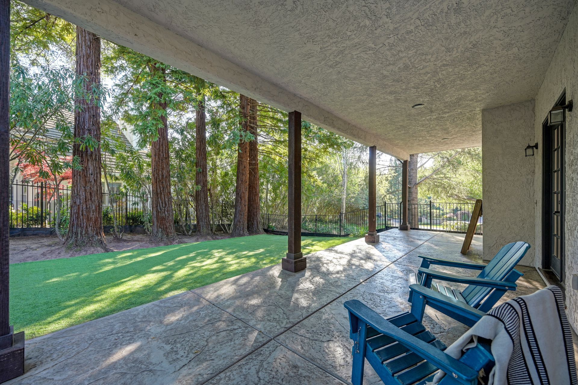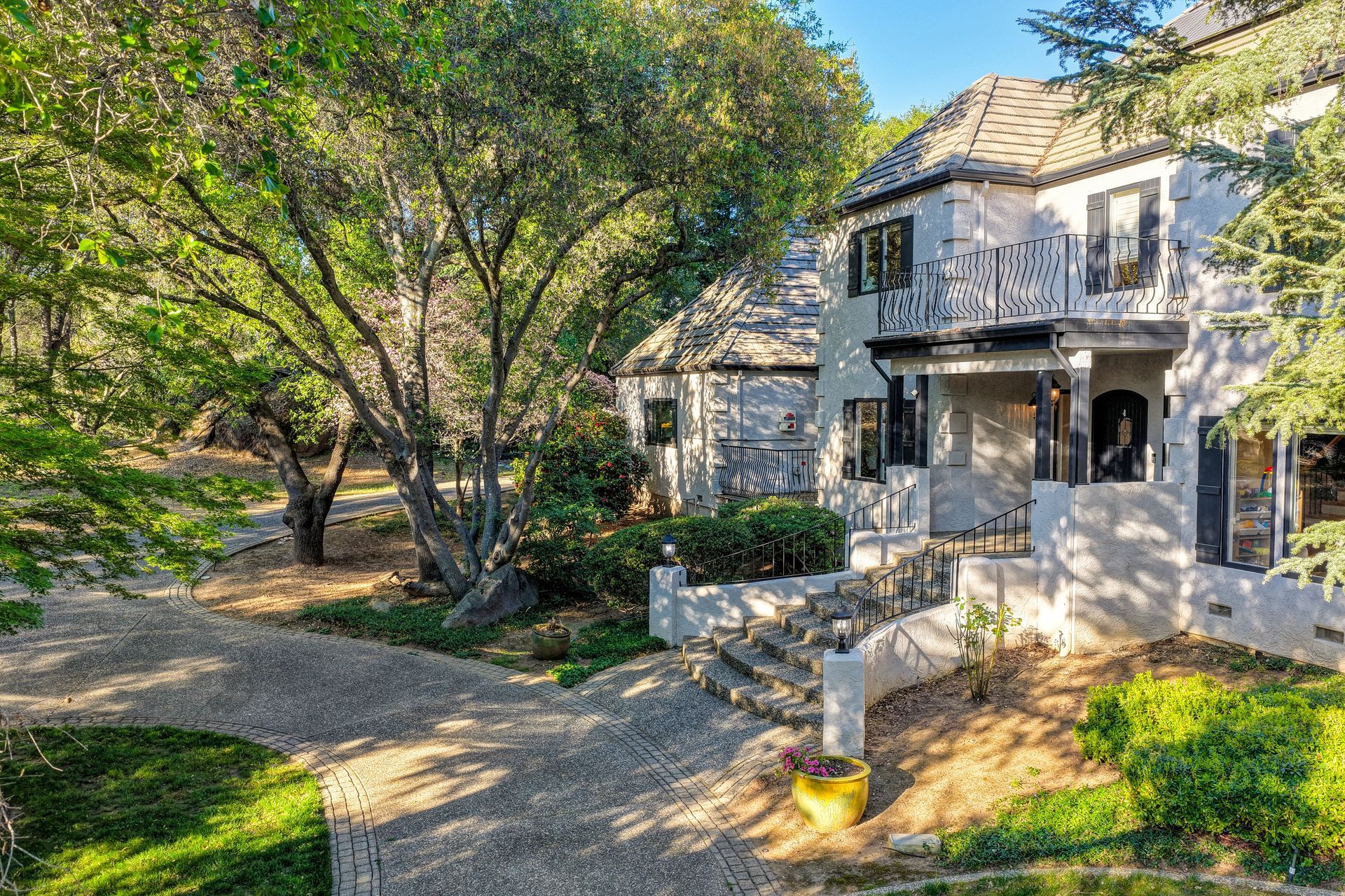 Tucked behind the gates of Loomis's coveted Placer Canyon community, 4911 Lexington Circle offers luxury, privacy, and thoughtful design on approximately 1.3 acres. From the moment you arrive, a circular driveway and lush, manicured grounds set the tone for what awaits inside. The residence showcases timeless architecture enhanced by modern updates, where a stunning chef's kitchen, complete with top-of-the-line appliances, custom cabinetry, and an open flow to the family room with wet bar, anchors the home's inviting, light-filled living spaces. Formal living and dining rooms provide elegant entertaining options, while a private office with its own deck offers a quiet retreat. The flexible floor plan includes a desirable downstairs bedroom with full bath, along with an oversized laundry and mudroom. Upstairs, the primary suite serves as a serene sanctuary, featuring a private balcony and a spa-inspired bathroom overlooking the resort-style backyard. A wing separate from the primary offers a bonus room perfect for media, games, or study and three additional bedrooms including one custom bunk room that includes custom-built beds, shelving and closet. Designed for both grand entertaining and relaxed living, the outdoor spaces are exceptional. Enjoy a saltwater pool, outdoor kitchen with fireplace, multiple patios, and a turf sports area, all connected by meandering pathways and surrounded by peaceful, private views. The property's multiple vignettes, seating areas and critter fencing further enhance its versatility and appeal. Complete with a 3-car garage, owned solar, and EV charger, this exceptional Placer Canyon estate embodies the best of Loomis luxury living where space, style, and setting come together seamlessly.
