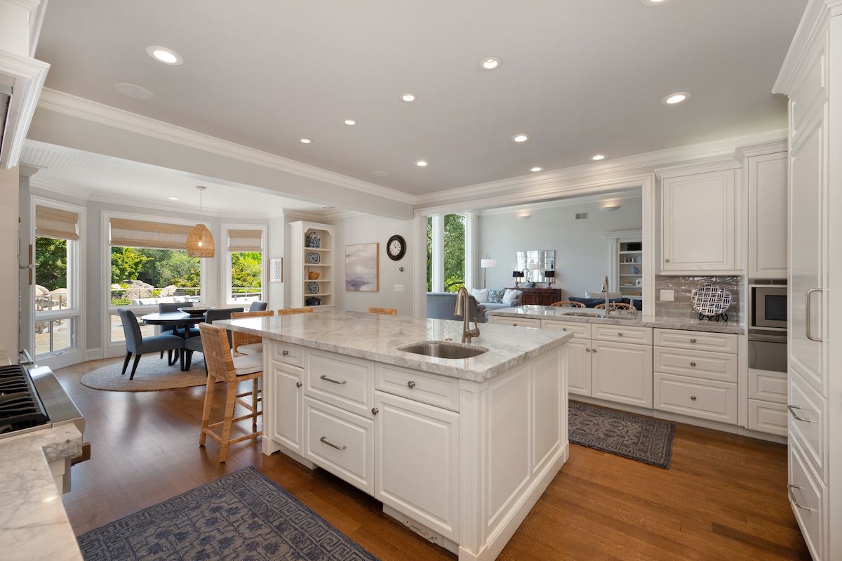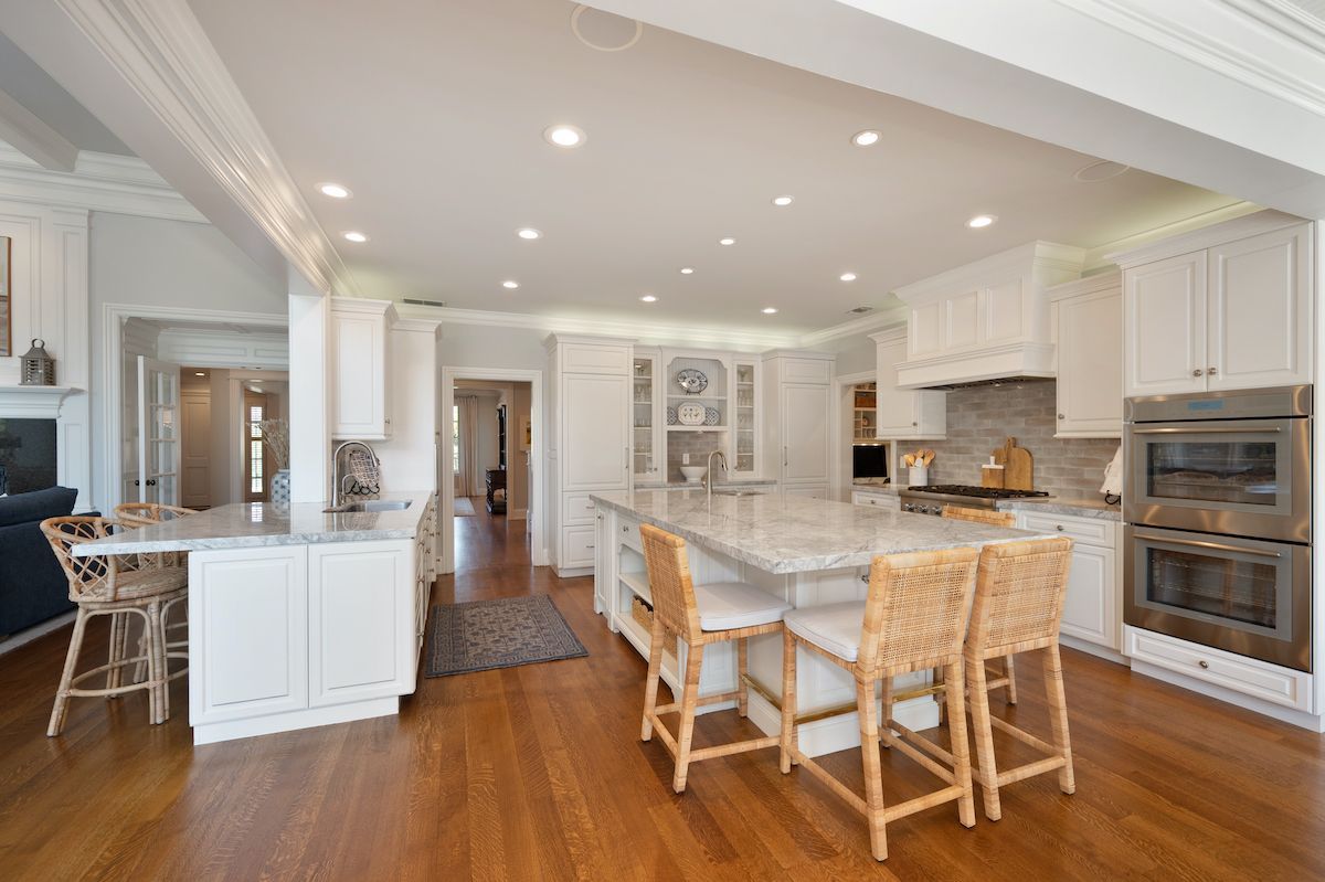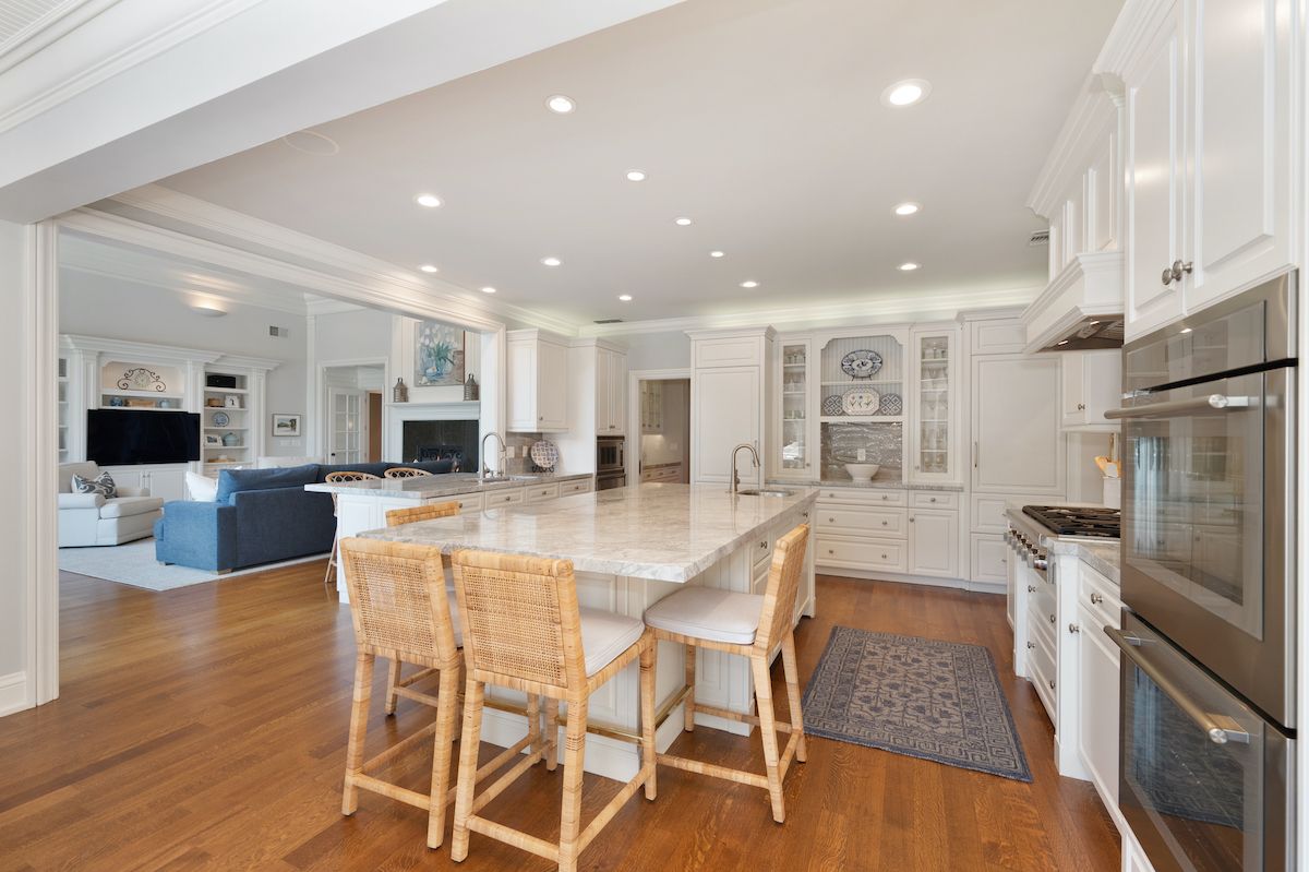 - Kitchen- updated 2020 and 2017 with marble slab counters in the kitchen, filtered water, walk-in pantry, top-of-the-line appliances including 2 dishwashers, 2 refrigerators, 2 refrigerator drawers, 2 freezer drawers, 2 ovens, Thermador 6-burner cooktop, warming drawer