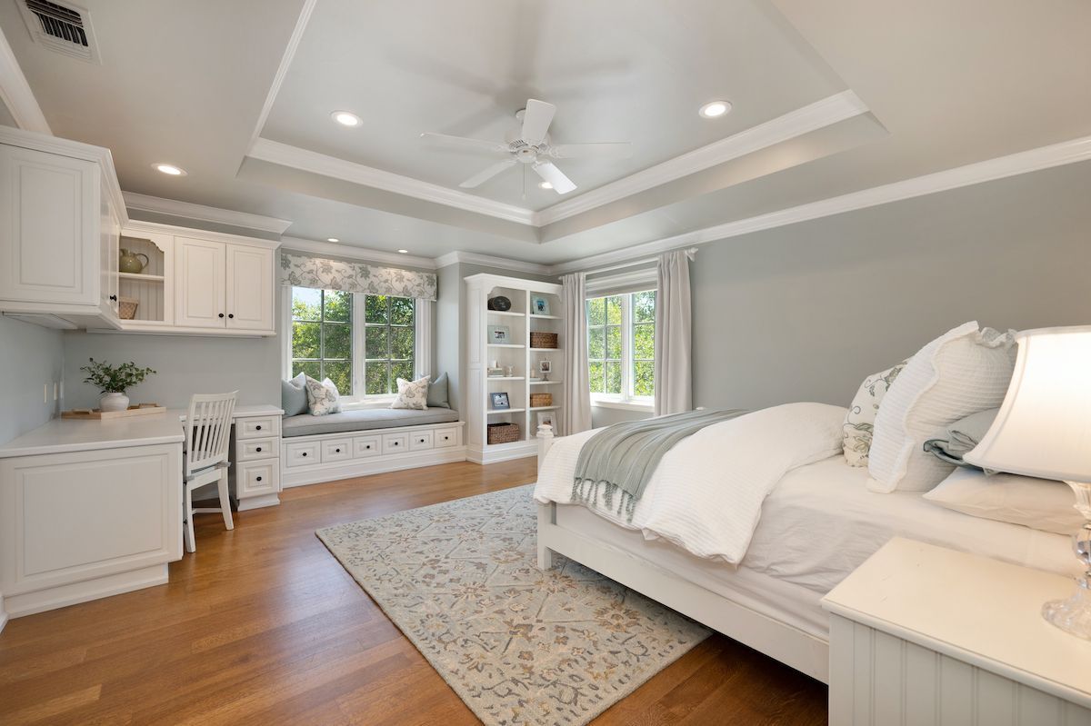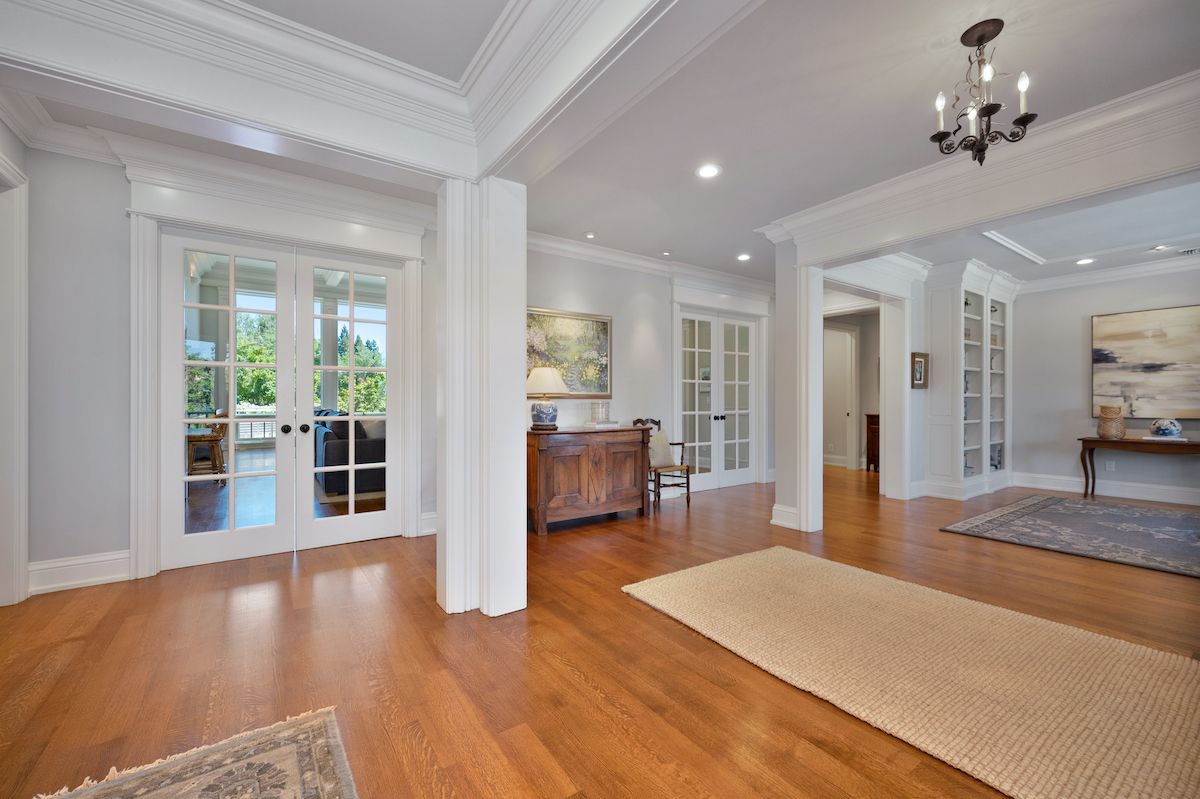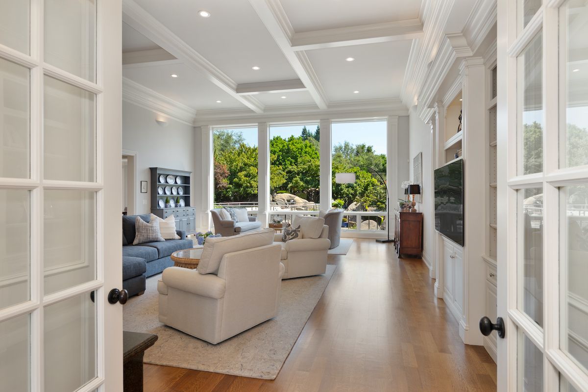 - Exquisite craftsmanship throughout with paneling, ceiling details, custom cabinetry, built-in shelving, and storage solutions