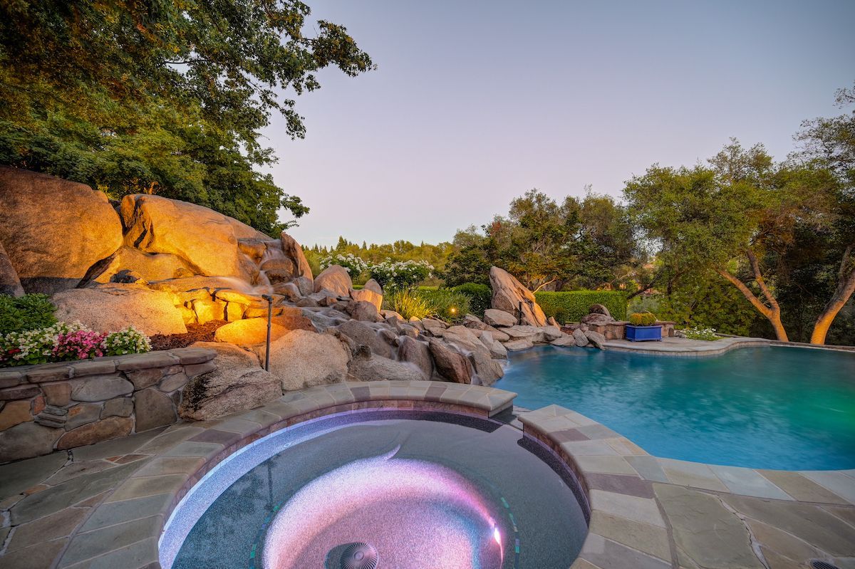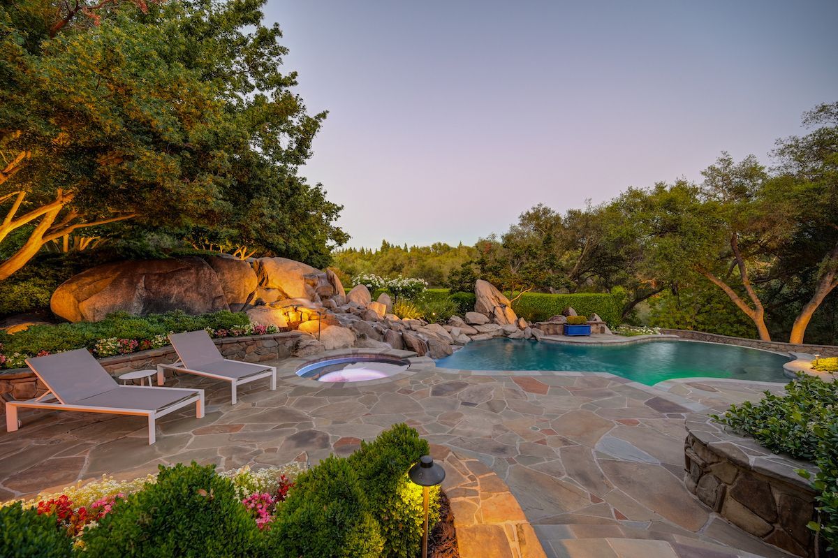 Privately situated at the back of gated Granite Bay Hills and perched on a quiet hillside, this never-before-to-market estate is available for the first time. The meticulous front landscaping, refinished driveway, and Cape Cod style curb appeal leads to a home that is exceptionally appointed and masterfully executed. The unparalleled residence encompasses an expansive 8,000+ square feet of living space, surrounded by picturesque views of a breathtaking backyard and bordering greenbelt for the utmost privacy. The main level includes formal living and dining, kitchen, family room with floor to ceiling windows, and primary suite with a sitting area basked in light and serenity. The upper level has a bonus room, loft, and three bedrooms with an attached bathroom (one en-suite and one Jack-and-Jill). Downstairs, the lower level has a large recreation room, wet bar, theater, wine cellar, guest quarters, and incredible storage spaces. The backyard paradise is remarkably designed to be an entertainment and relaxation haven with flagstone patios, sparkling pool and spa, outdoor kitchen, fire pit, and a sports court tucked away among rock outcroppings creating a private space to play. The different levels and meandering paths create multiple vignettes and enjoyment areas while the lush landscaping beautifully enriches the 1.2-acre lot. The property also features a casita, attached 2-car and a detached 2-car garage plus an oversized boat garage at the base of the driveway. Duteously enhanced inside and out with the finest craftsmanship and attention to detail, and created with every need and want catered to, this home is ready for the most discerning of buyers. This slice of heaven is one of the rare opportunities to live in central Granite Bay with golf cart access to Granite Bay Golf Club.
