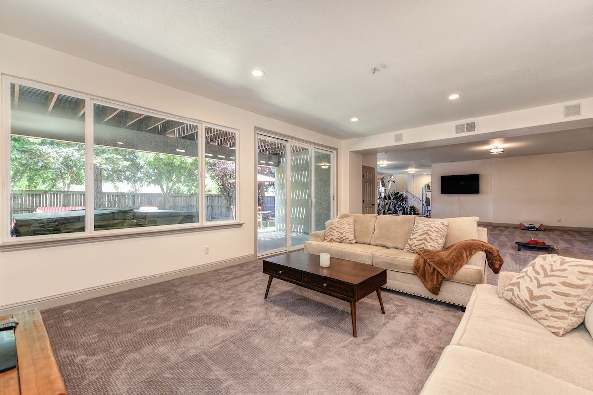 Beautifully updated home that lives like a single-story. The main floor offers an open floor plan with a gorgeous remodeled kitchen, spacious living room, large primary suite, en-suite bedroom, and two additional bedrooms. Off the living room is a spacious newer Trex deck with beautiful, peaceful views. The long list of enhancements and amenities include owned solar, stainless-steel appliances, and stylish, sought-after finishes throughout. The huge downstairs bonus area offers lots of options for living, entertaining, and more. Currently used as a fitness area, game room, and family room, the space is also prepped for a screen projector and plumbed for a wet bar/kitchenette. There is also a bedroom and full bathroom as well as access to the backyard. It's a great option for multi-generational living, guest quarters, office, and recreation/flex space. The private yard has a covered patio area, hot tub, koi pond, artificial grass, and low maintenance landscaping. The side yard offers access to the expansive unfinished storage area. To top it off, the home is located in a quiet cul-de-sac, close to freeway access and minutes from Granite Bay, Loomis, amenities, recreation, and more!