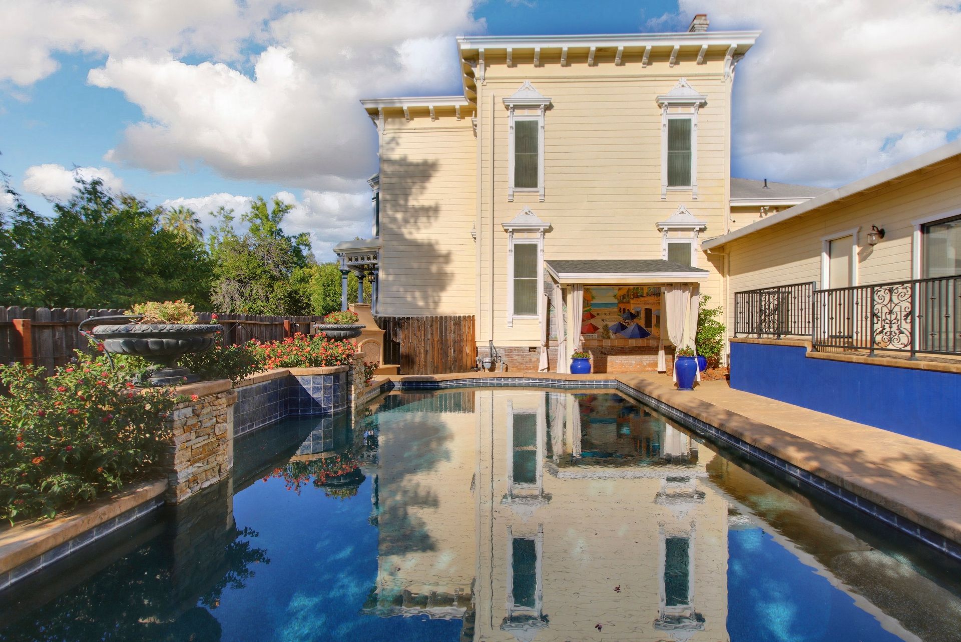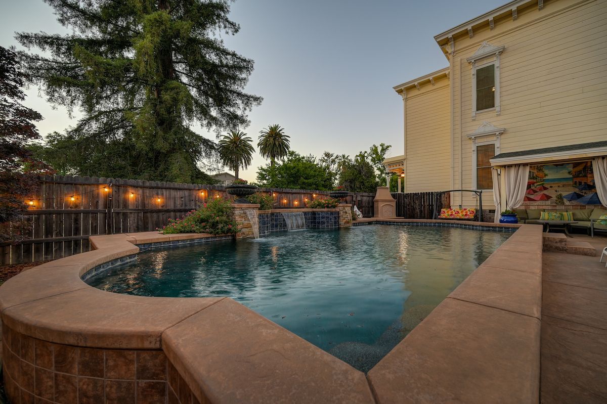 Own a piece of history in one of the best locations the area has to offer. Built in 1881, The Hyman House sits on an extremely rare 3-lot parcel, surrounded by some of Folsom's most stunning architecture and only one block from historic Sutter Street. Exquisitely designed inside and out, the Italianate-style home has been beautifully preserved, restored, and updated to retain its original charm and make it welcoming to today's buyers. The original rooms include a parlor, study, formal dining room, kitchen, first-floor bedroom, and upstairs bedrooms, while the 1984 expansion added a large bar and gathering space, wine cellar, and indoor hot tub. With a wraparound porch, swimming pool, gazebo, and two 2-car garages, and back alley access with plenty of private parking, the expansive property is exceptionally equipped to entertain, enjoy, and reminisce in a piece of post Gold Rush antiquity. This corner lot is full of possibilities and can be used as a private residence or it has the potential to include ADUs and other rental units, converted to a B&B, used for a business, and more (buyer to verify with City/County). The prime location offers ample street parking, close by access to the American River and trails, and all the restaurants, entertainment, nightlife, and shops Downtown Folsom has to offer.