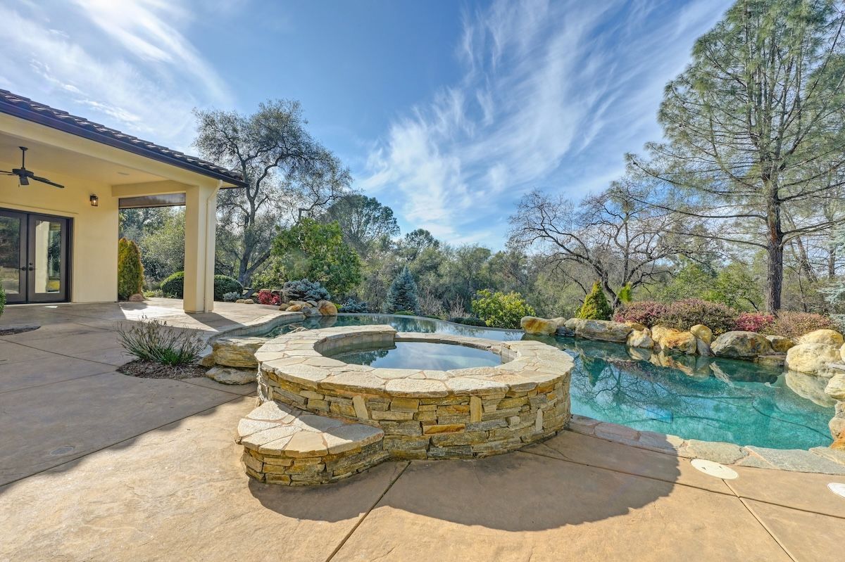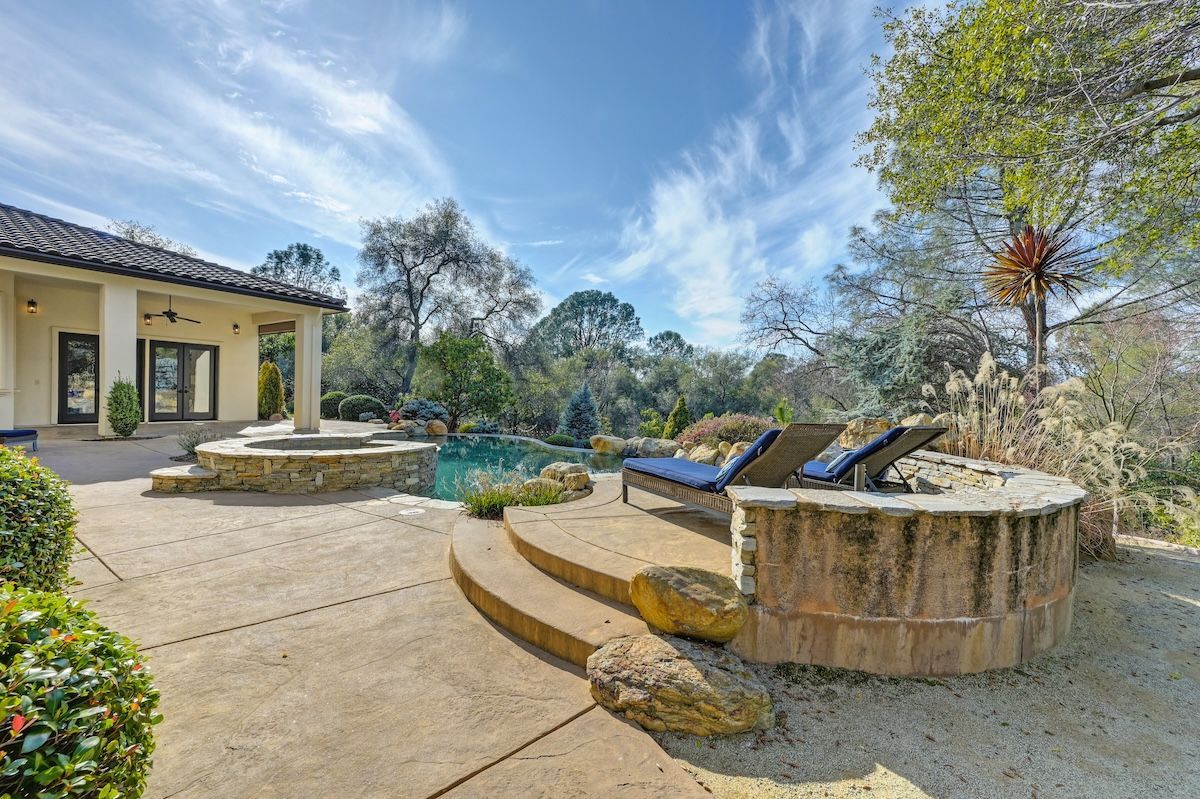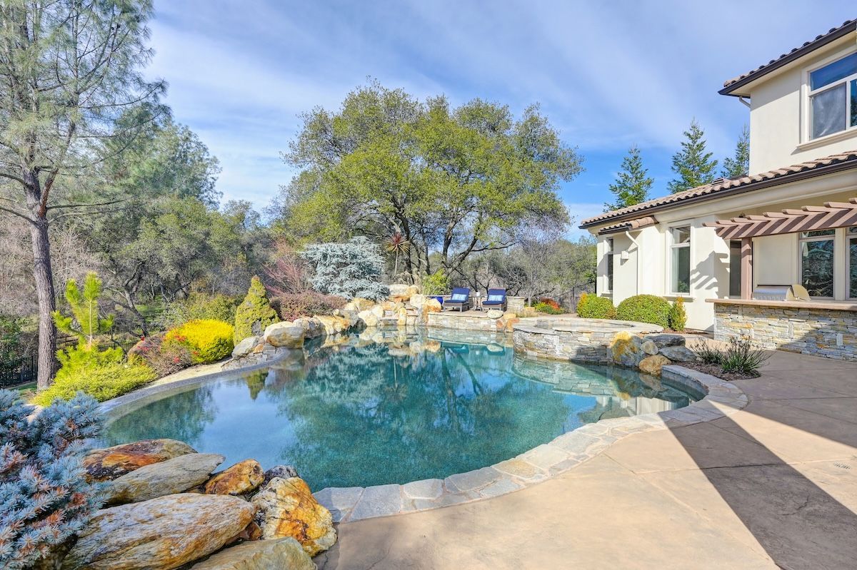 Exquisite, custom estate situated on 1.6 acres in The Boulders, a gated enclave comprised of 14 luxury residences. The Santa Barbara style curb appeal welcomes with its expansive landscaping, 4-car garage and expanded driveway for overflow parking. Step inside the intricate double-door entry to the spacious floor plan that lives like a single-story with all the main living, primary suite, wet bar with a temperature-controlled wine room, office, and two en-suites on the first floor. Upstairs boasts a large bonus room as well as an additional bedroom and bathroom. The timeless, high-end finishes include smooth imperfect walls, Restoration Hardware & Pottery Barn lighting, stainless steel appliances, and open beam ceiling. The private backyard oasis is an entertainment and relaxation haven that backs to a greenbelt and boasts a gorgeous infinity edge pool, spa, outdoor kitchen, rock outcroppings, covered and uncovered patios, firepit, and multiple vignettes to relax and enjoy the serene setting. The quiet cul-de-sac location is close to horse amenities, lake access, the Auburn-Folsom corridor, and more.