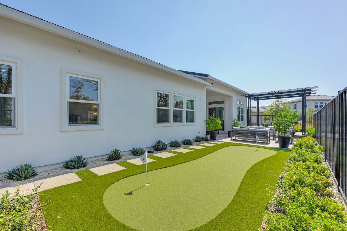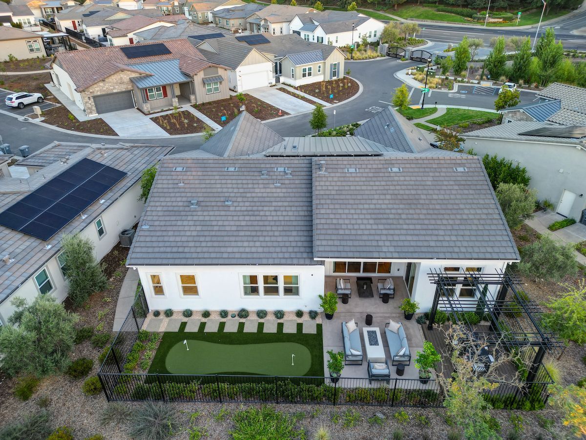 Gorgeous, newer construction single story with owned solar. Step inside to find an open floor plan that features a large great room, spacious primary suite with a spa-like bathroom, office nook, and an attached apartment/guest quarters. This former model is absolutely pristine and has over $500K in upgrades and designer options. The high-end finishes include hardwood floors, stainless steel appliances, quartz countertops, stylish backsplashes, and chic accent walls, moldings, and fixtures. Other sought-after amenities include plantation shutters, Brilliant Smart Home system, epoxy floors in the garage, and a backup battery. The guest quarters have a sitting room, bedroom, full bathroom, laundry, and private entrance. The stunning backyard backs to the greenbelt and has a covered patio, pergola, firepit, and putting green. To top it off, the great location is gated and close to shopping, dining, trails, and within the Eureka Union and Granite Bay High School districts.
