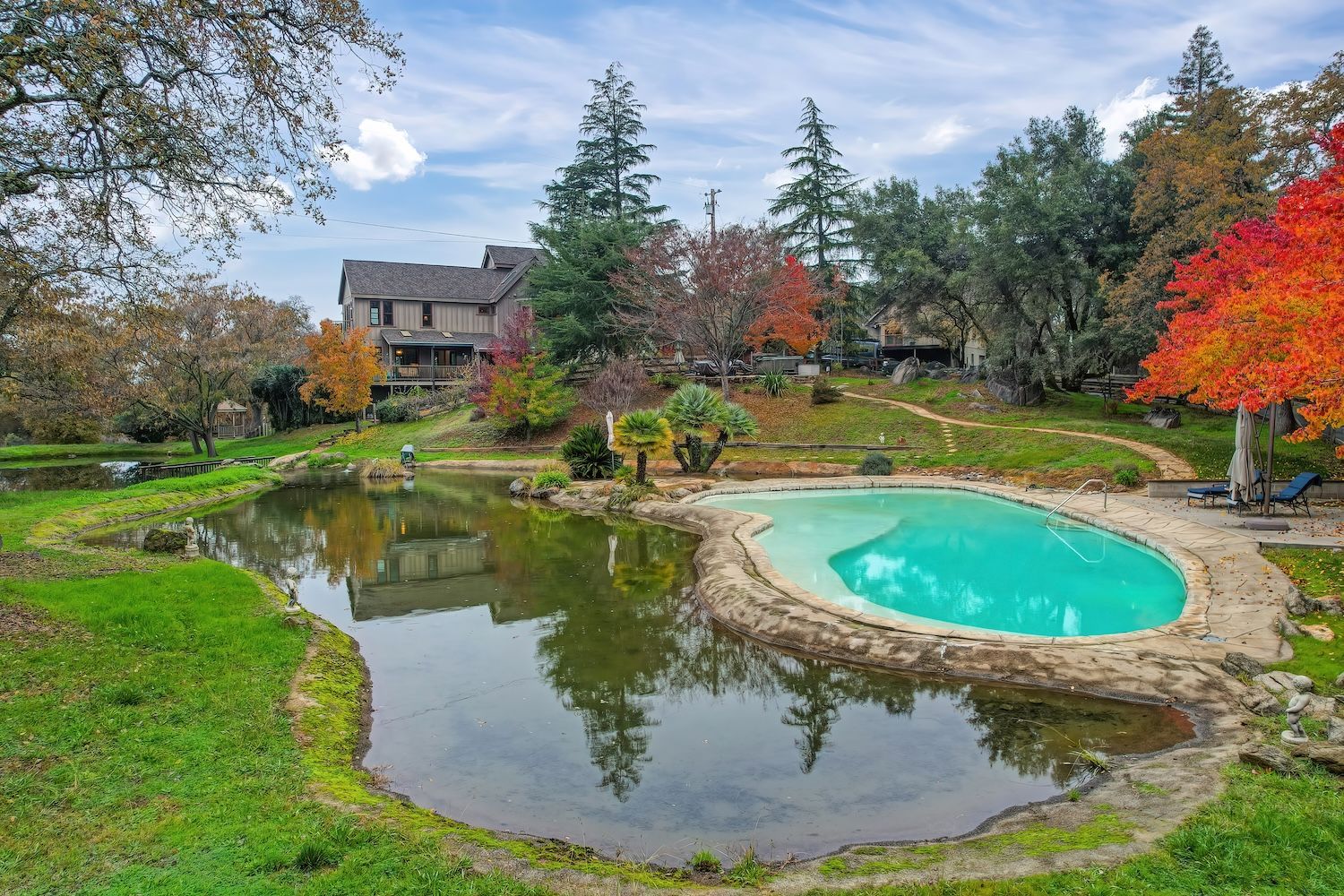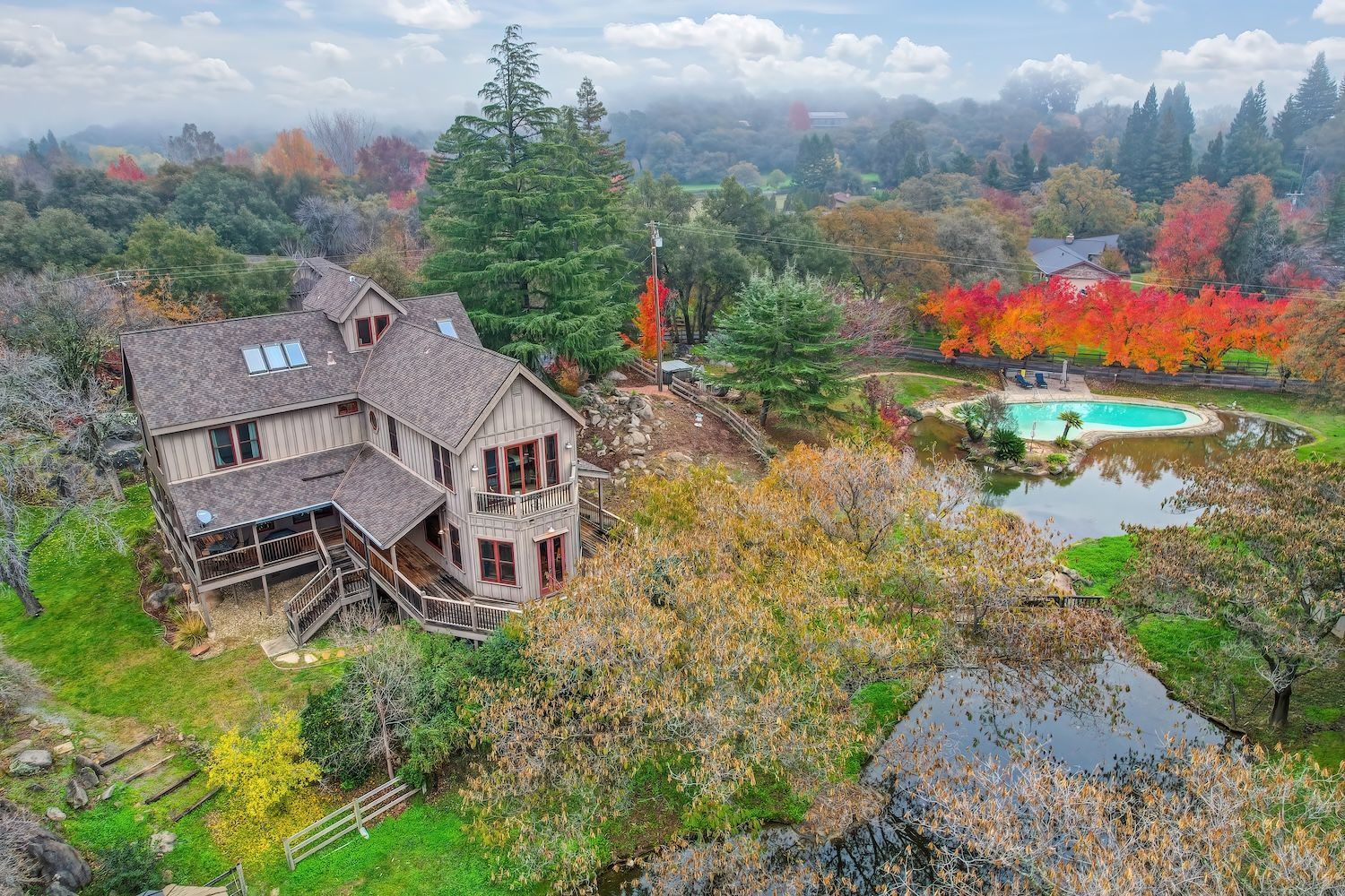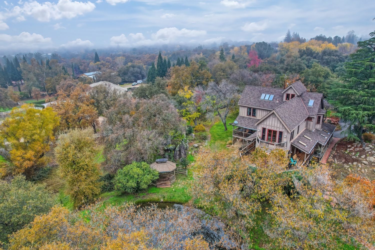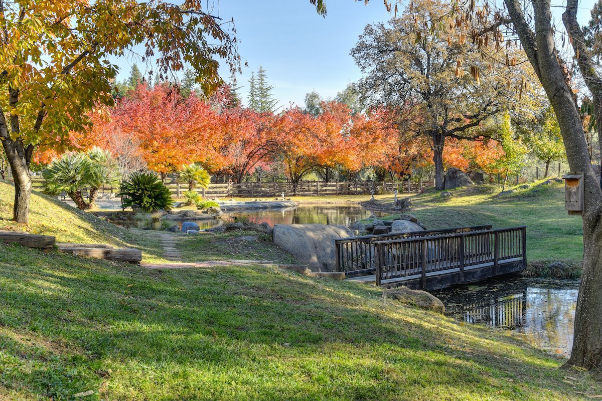 Experience a modern-meets-farmhouse retreat on nearly 5 private acres in Loomis. Fully renovated, this estate offers panoramic views, exceptional craftsmanship, and flexible living across a 4,200+ sq. ft. main home and a 1,000+ sq. ft. self-contained guest house. The main residence features wide random plank white oak wood floors, newer Milgard windows and doors, designer lighting, and seamless indoor/outdoor flow. The chef’s kitchen includes Thermador appliances, a walk-in pantry with beverage refrigerator, an oversized butcher block island, and an adjacent prep kitchen/mudroom with exterior access. Flexible living spaces, multiple bonus rooms, en-suite bedrooms, and a private primary suite wing with balcony create an ideal layout. Lower-level game and wine rooms offer additional versatility, storage, and functionality. The gated property showcases a picturesque tree-line driveway, mature landscaping, meandering paths, fruit trees, a pond with water feature, pool, standalone spa, barn, workshop, and gazebo. Separate utilities, newer roofing, HVAC, and a Tesla battery add modern efficiency. The remodeled guest house includes a full kitchen, laundry, office/2nd bedroom option, and deck, perfect for visitors or multi-gen living. A rare, private Loomis estate with views and exceptional style.