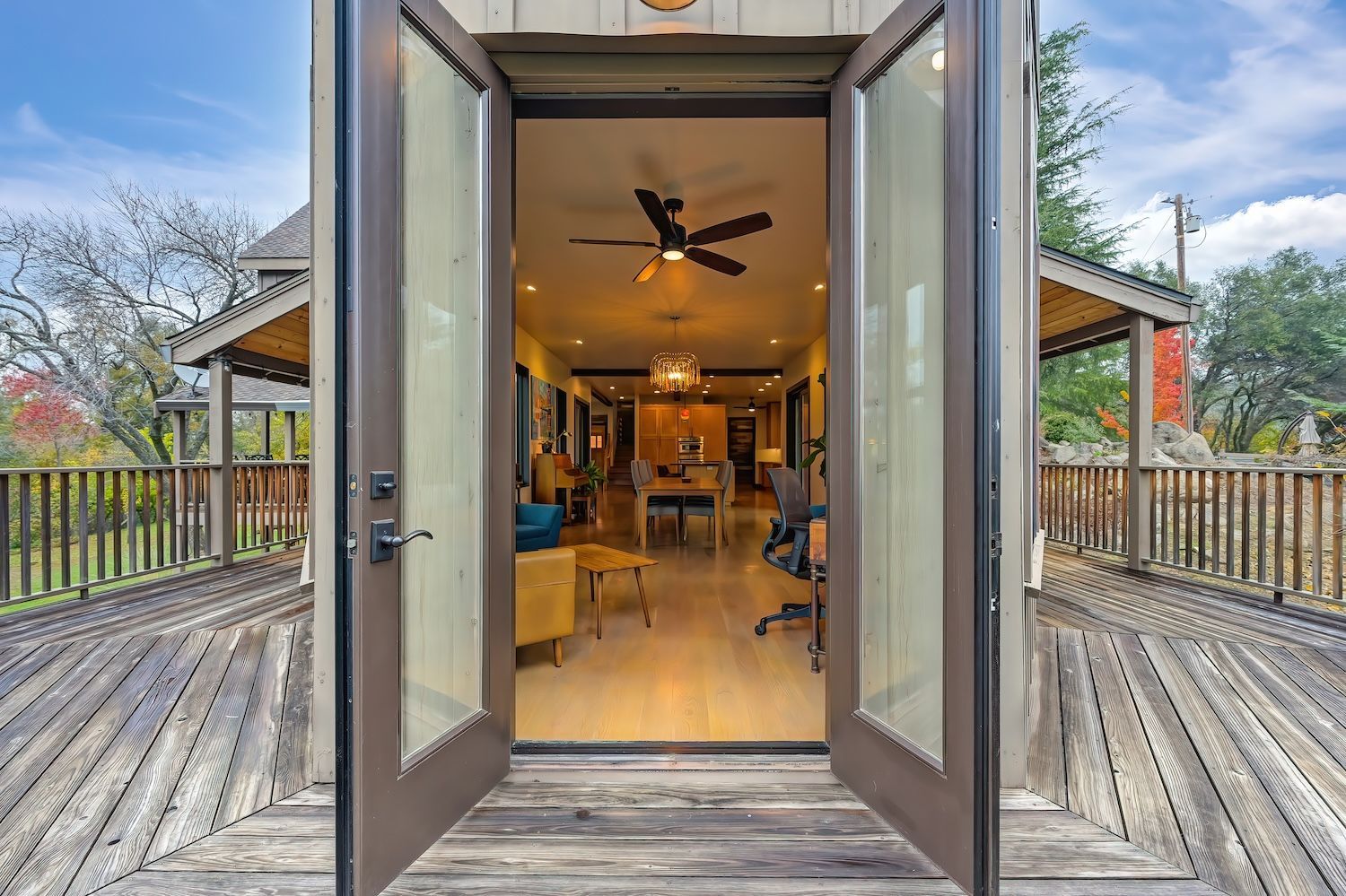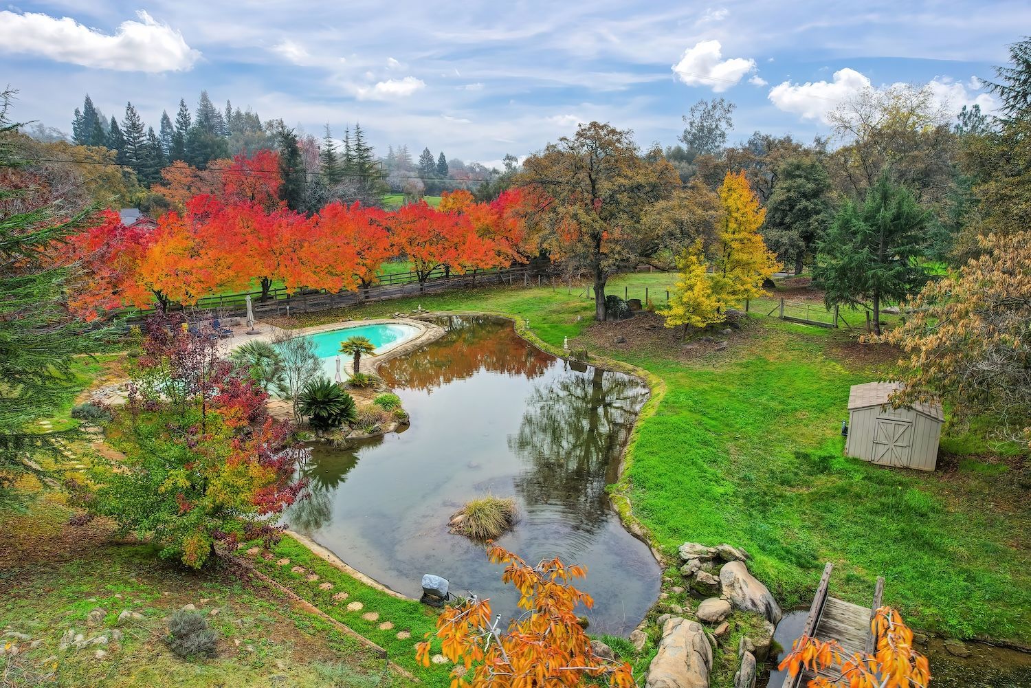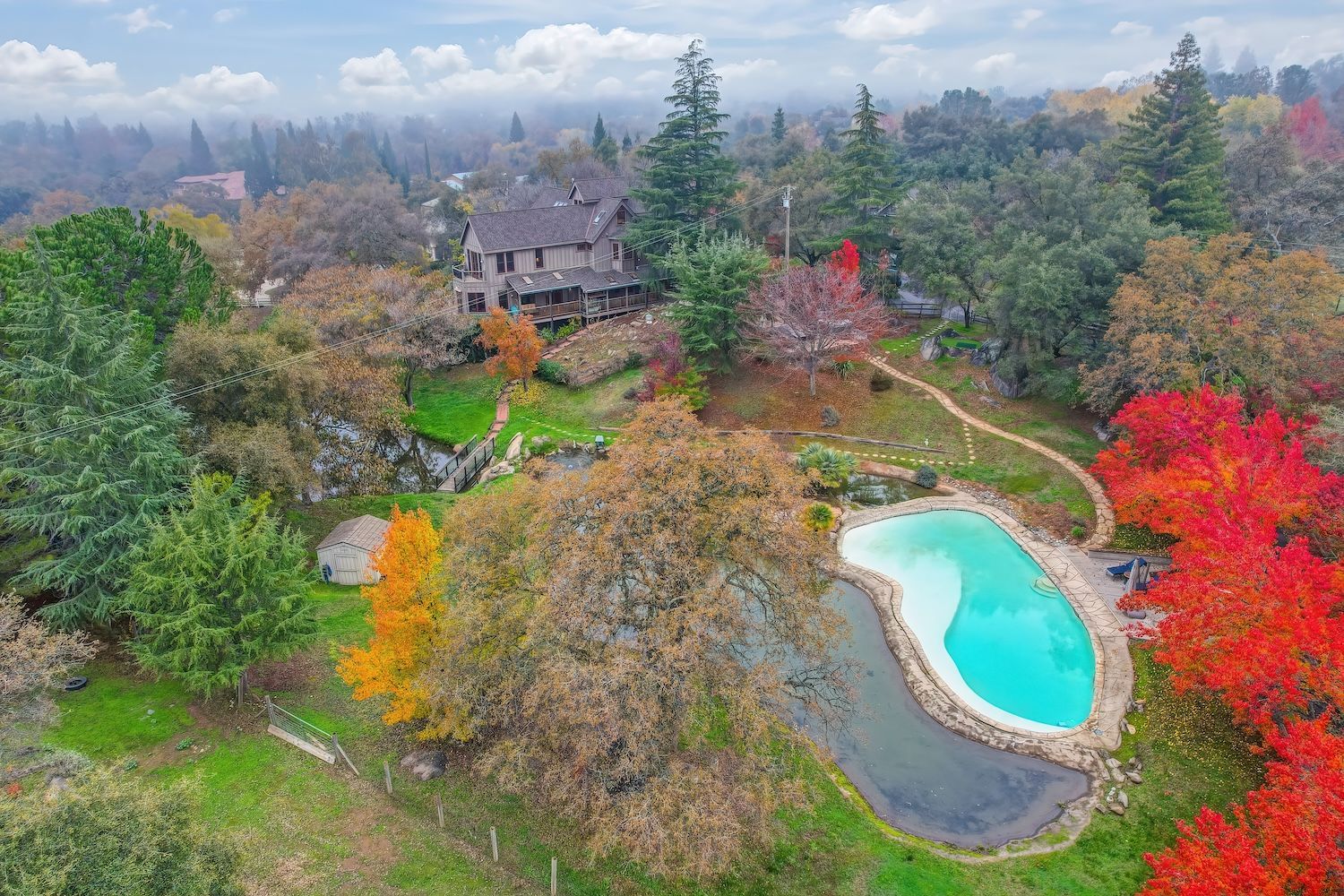 Experience a modern-meets-farmhouse retreat on nearly 5 private acres in Loomis. Fully renovated, this estate offers panoramic views, exceptional craftsmanship, and flexible living across a 4,200+ sq. ft. main home and a 1,000+ sq. ft. self-contained guest house. The main residence features wide random plank white oak wood floors, newer Milgard windows and doors, designer lighting, and seamless indoor/outdoor flow. The chef’s kitchen includes Thermador appliances, a walk-in pantry with beverage refrigerator, an oversized butcher block island, and an adjacent prep kitchen/mudroom with exterior access. Flexible living spaces, multiple bonus rooms, en-suite bedrooms, and a private primary suite wing with balcony create an ideal layout. Lower-level game and wine rooms offer additional versatility, storage, and functionality. The gated property showcases a picturesque tree-line driveway, mature landscaping, meandering paths, fruit trees, a pond with water feature, pool, standalone spa, barn, workshop, and gazebo. Separate utilities, newer roofing, HVAC, and a Tesla battery add modern efficiency. The remodeled guest house includes a full kitchen, laundry, office/2nd bedroom option, and deck, perfect for visitors or multi-gen living. A rare, private Loomis estate with views and exceptional style.