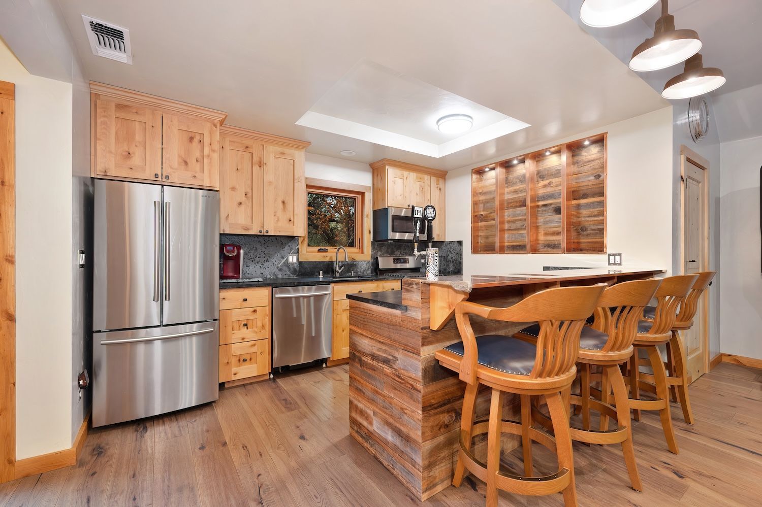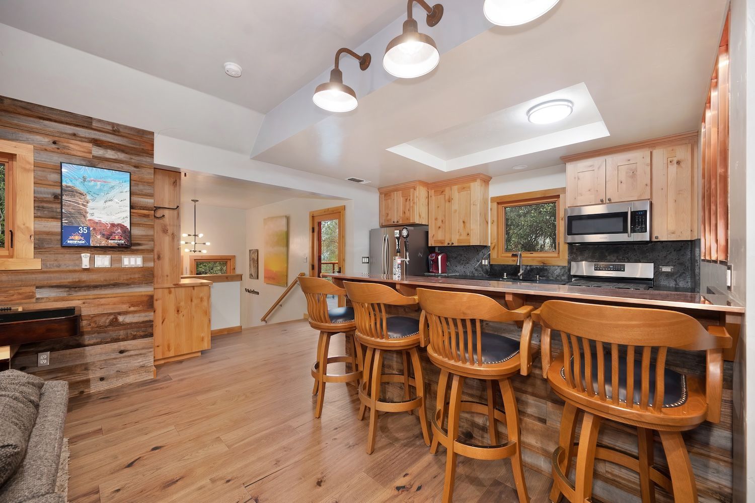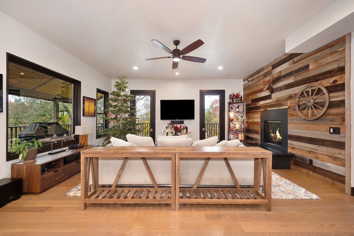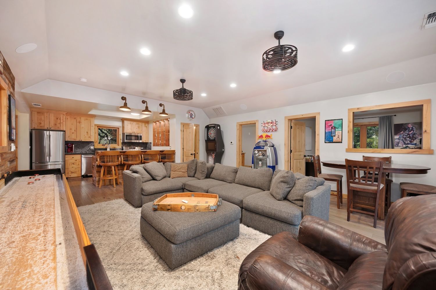 Experience a modern-meets-farmhouse retreat on nearly 5 private acres in Loomis. Fully renovated, this estate offers panoramic views, exceptional craftsmanship, and flexible living across a 4,200+ sq. ft. main home and a 1,000+ sq. ft. self-contained guest house. The main residence features wide random plank white oak wood floors, newer Milgard windows and doors, designer lighting, and seamless indoor/outdoor flow. The chef’s kitchen includes Thermador appliances, a walk-in pantry with beverage refrigerator, an oversized butcher block island, and an adjacent prep kitchen/mudroom with exterior access. Flexible living spaces, multiple bonus rooms, en-suite bedrooms, and a private primary suite wing with balcony create an ideal layout. Lower-level game and wine rooms offer additional versatility, storage, and functionality. The gated property showcases a picturesque tree-line driveway, mature landscaping, meandering paths, fruit trees, a pond with water feature, pool, standalone spa, barn, workshop, and gazebo. Separate utilities, newer roofing, HVAC, and a Tesla battery add modern efficiency. The remodeled guest house includes a full kitchen, laundry, office/2nd bedroom option, and deck, perfect for visitors or multi-gen living. A rare, private Loomis estate with views and exceptional style.
