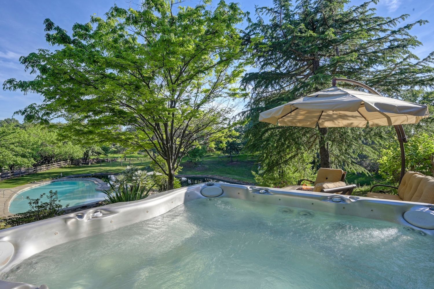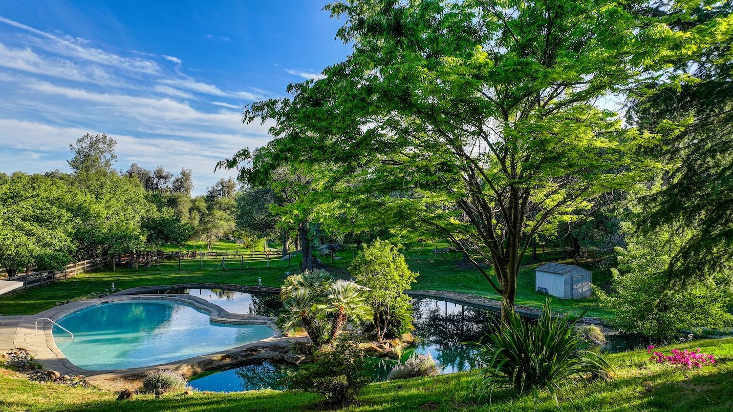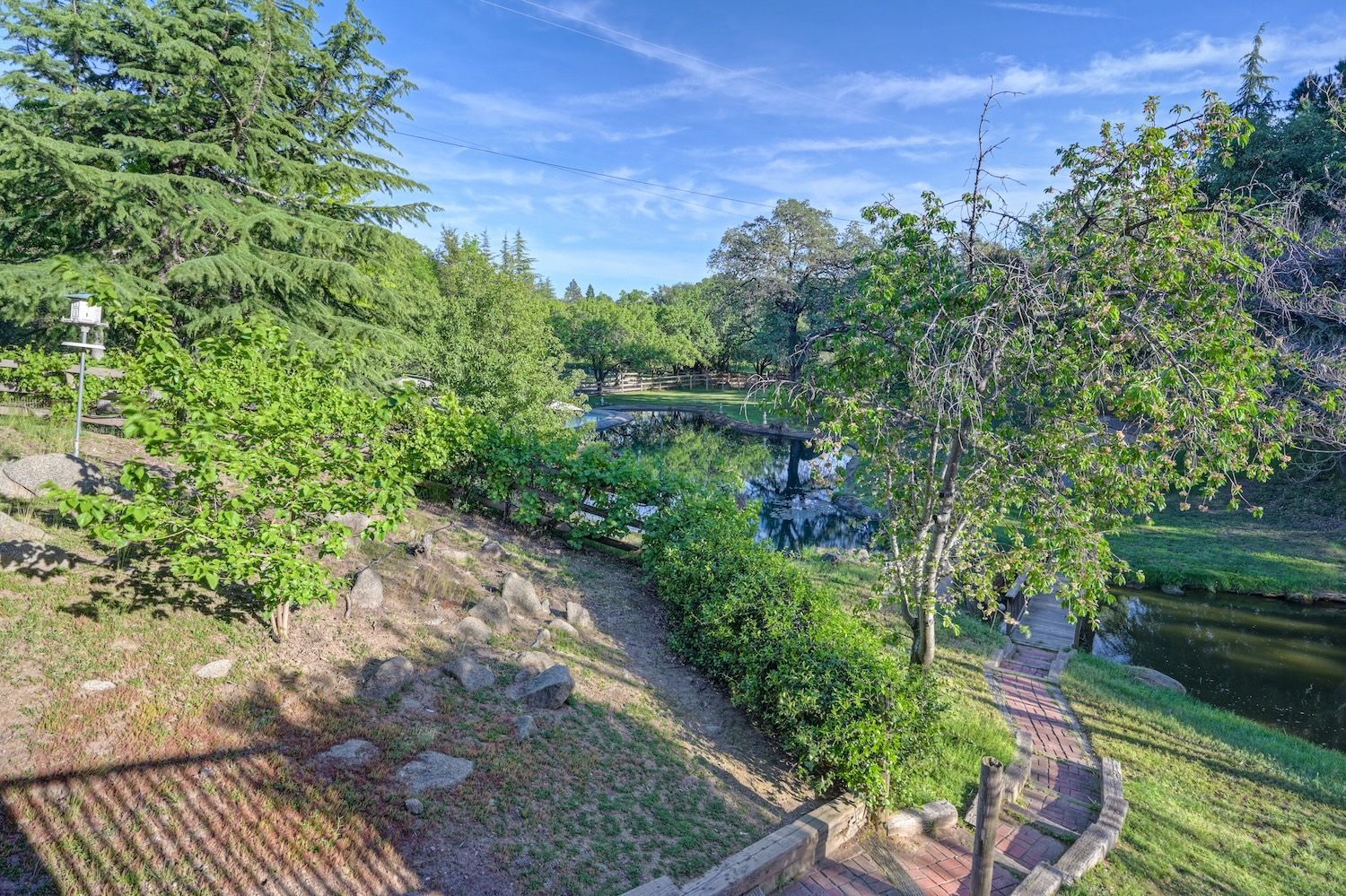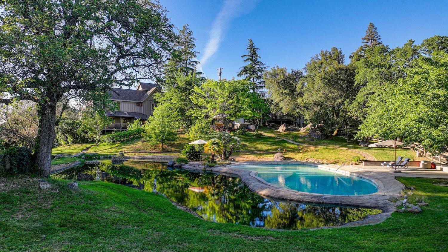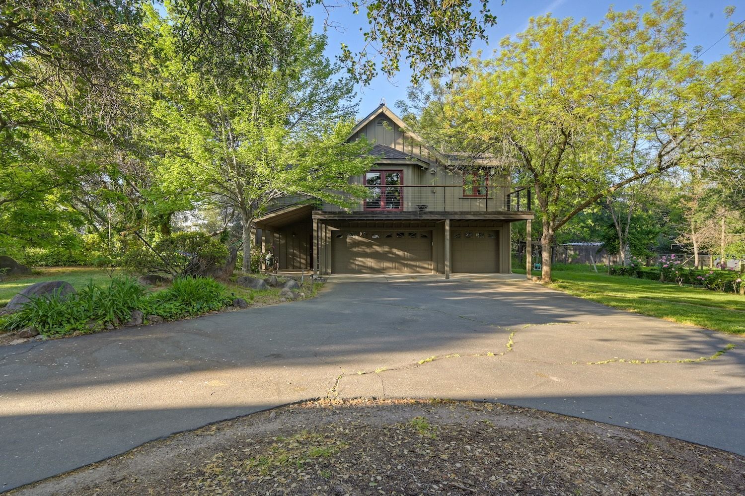 Discover a one-of-a-kind modern-meets-farmhouse retreat on nearly 5 private acres perched up high on a knoll with the most incredible views and sunsets in sought-after Kingmont Estates in the heart of Loomis. Walk, bike, horse to Folsom Lake Trails right from your property. Fully renovated by esteemed contractors, both the ~4,631 square foot main residence and ~1,089 square foot guest house blend elevated design with serene natural beauty. The main house offers expansive indoor/outdoor living with newer Milgard windows and doors, wide random plank white oak wood floors, designer lighting, and panoramic views and sunset vistas from every room. The chef's kitchen features Thermador appliances, a walk-in pantry with beverage refrigerator, an oversized butcher-block island, and an adjacent prep kitchen/mudroom with exterior access. The thoughtful layout includes flexible spaces, a formal living room with a gas fireplace, bonus spaces on each level, en-suite bedrooms, and a private primary suite wing with its own balcony and abundant storage. A lower-level game room and wine room with separate access add even more versatility. Bathroom floors enjoy radiant heat, and major system updates include newer roofing, HVAC, and a Tesla battery system. The equally impressive outdoors offers unmatched privacy, gated entry, meandering pathways, mature landscaping, formal hedge areas, fruit trees, and tranquil water features including a pond and a swimming pool. Enjoy multiple decks and patios, a standalone spa, ~640 sq. ft. barn, ~300 sq. ft. workshop, gazebo, and fully fenced grounds served by ditch, well, and public water. The remodeled guest house lives independently with its own deck, full kitchen, separate utilities, and additional office/bedroom flexibility, ideal for multi-generational living, guests, or income potential. A rare opportunity to own a secluded, beautifully renovated Loomis estate with views, character, and modern functionality in every direction..