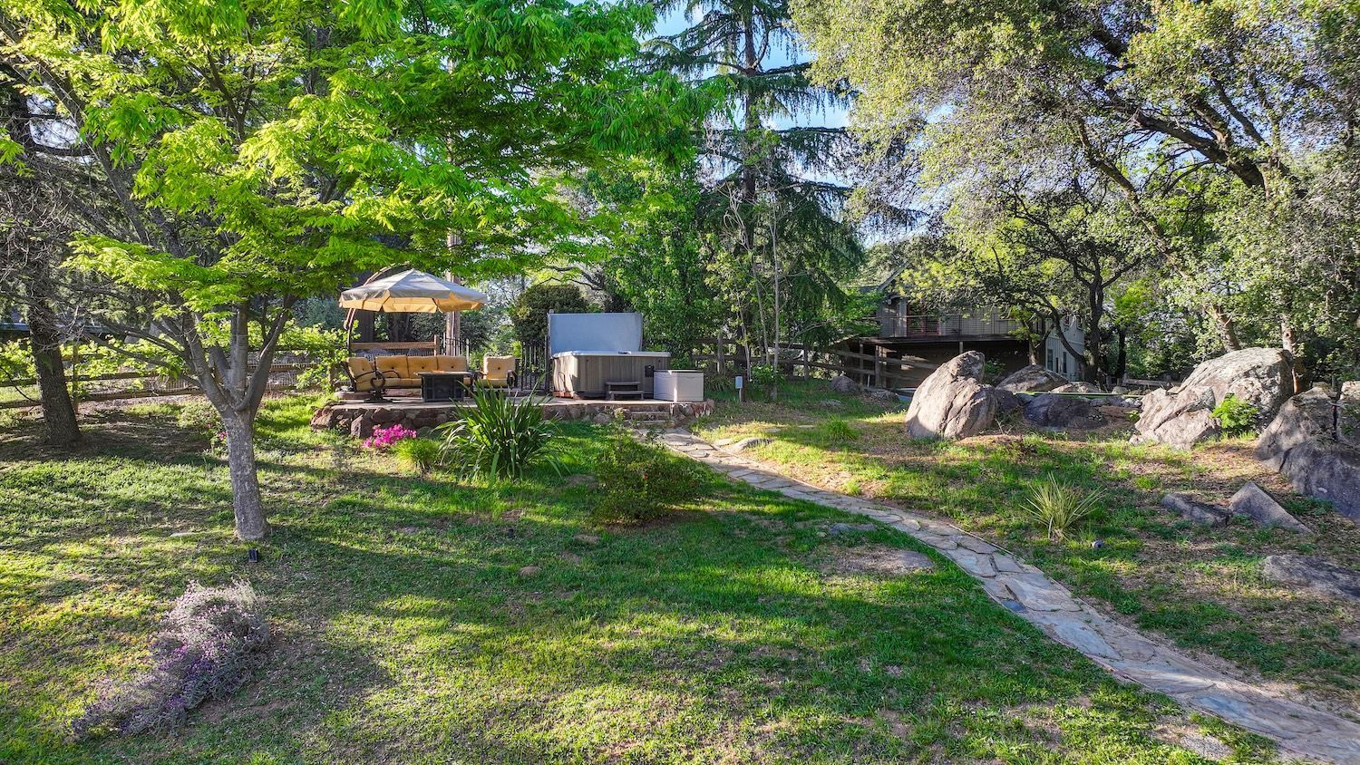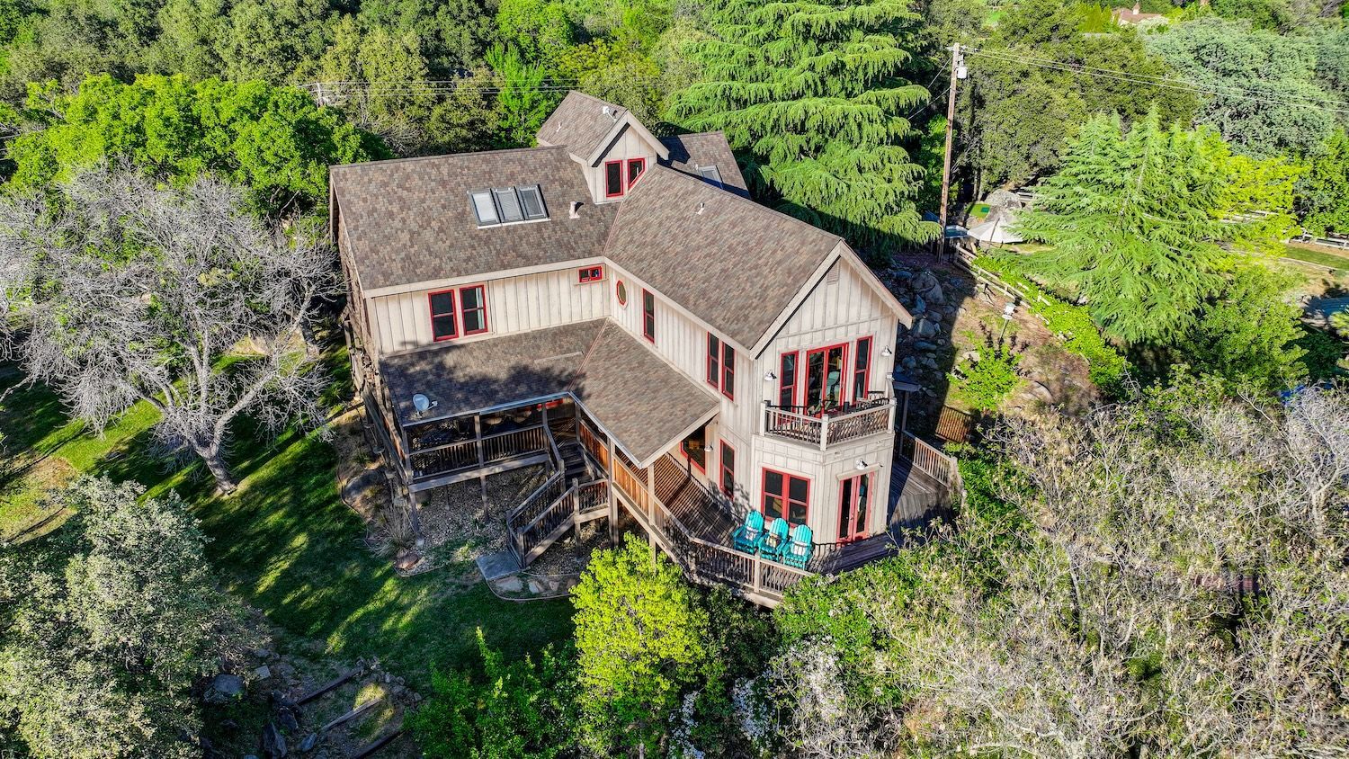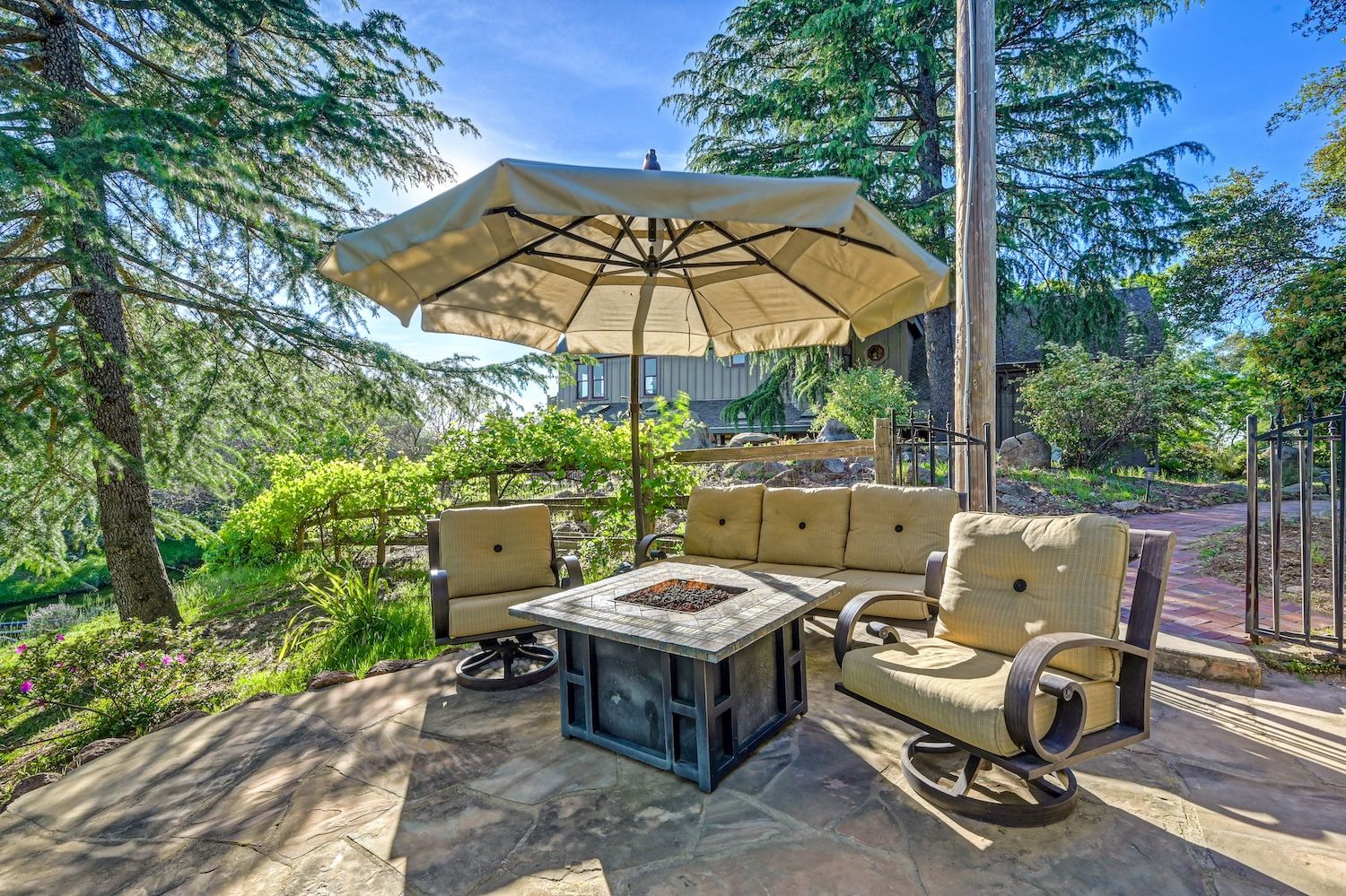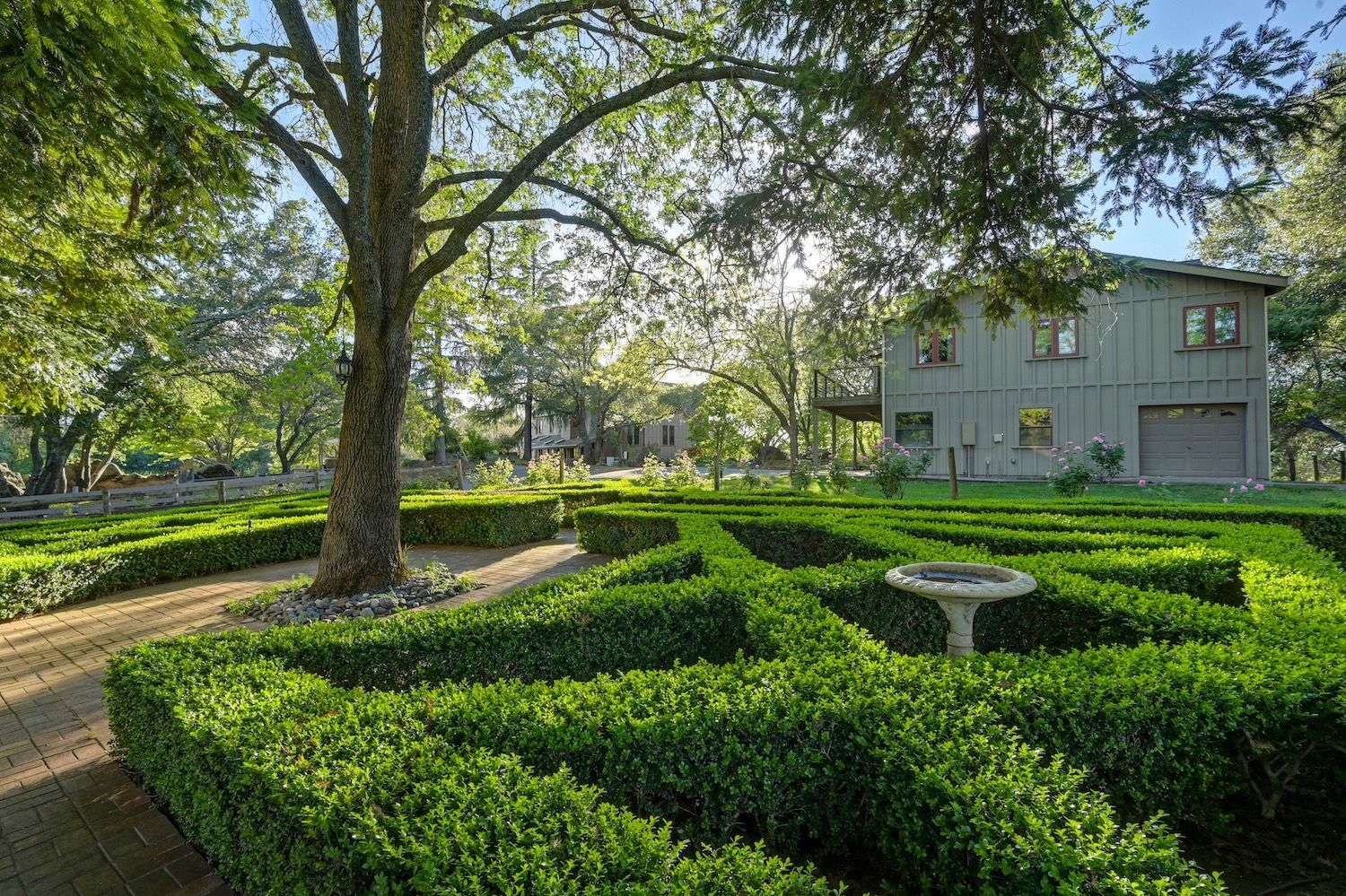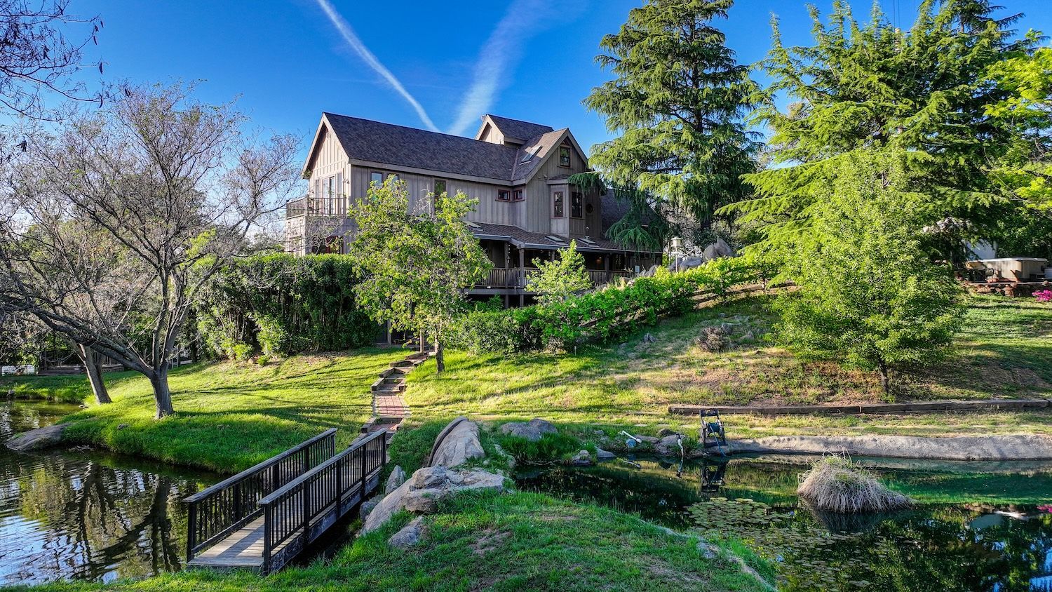 Discover a one-of-a-kind modern-meets-farmhouse retreat on nearly 5 private acres perched up high on a knoll with the most incredible views and sunsets in sought-after Kingmont Estates in the heart of Loomis. Walk, bike, horse to Folsom Lake Trails right from your property. Fully renovated by esteemed contractors, both the ~4,631 square foot main residence and ~1,089 square foot guest house blend elevated design with serene natural beauty. The main house offers expansive indoor/outdoor living with newer Milgard windows and doors, wide random plank white oak wood floors, designer lighting, and panoramic views and sunset vistas from every room. The chef's kitchen features Thermador appliances, a walk-in pantry with beverage refrigerator, an oversized butcher-block island, and an adjacent prep kitchen/mudroom with exterior access. The thoughtful layout includes flexible spaces, a formal living room with a gas fireplace, bonus spaces on each level, en-suite bedrooms, and a private primary suite wing with its own balcony and abundant storage. A lower-level game room and wine room with separate access add even more versatility. Bathroom floors enjoy radiant heat, and major system updates include newer roofing, HVAC, and a Tesla battery system. The equally impressive outdoors offers unmatched privacy, gated entry, meandering pathways, mature landscaping, formal hedge areas, fruit trees, and tranquil water features including a pond and a swimming pool. Enjoy multiple decks and patios, a standalone spa, ~640 sq. ft. barn, ~300 sq. ft. workshop, gazebo, and fully fenced grounds served by ditch, well, and public water. The remodeled guest house lives independently with its own deck, full kitchen, separate utilities, and additional office/bedroom flexibility, ideal for multi-generational living, guests, or income potential. A rare opportunity to own a secluded, beautifully renovated Loomis estate with views, character, and modern functionality in every direction..