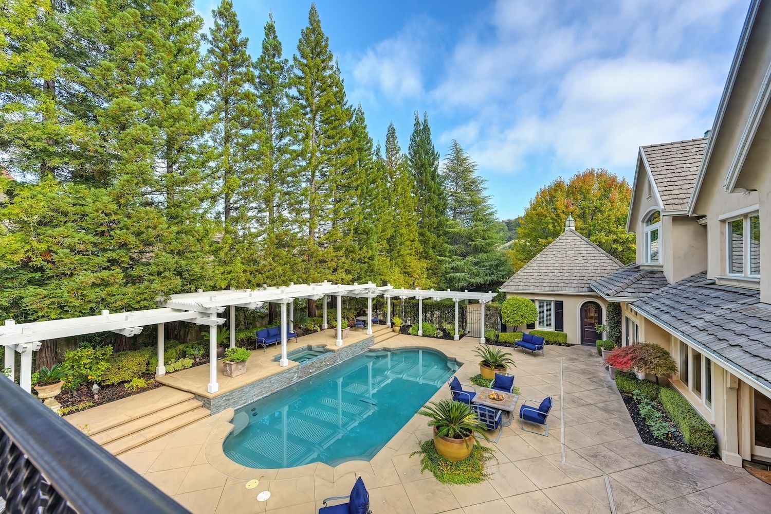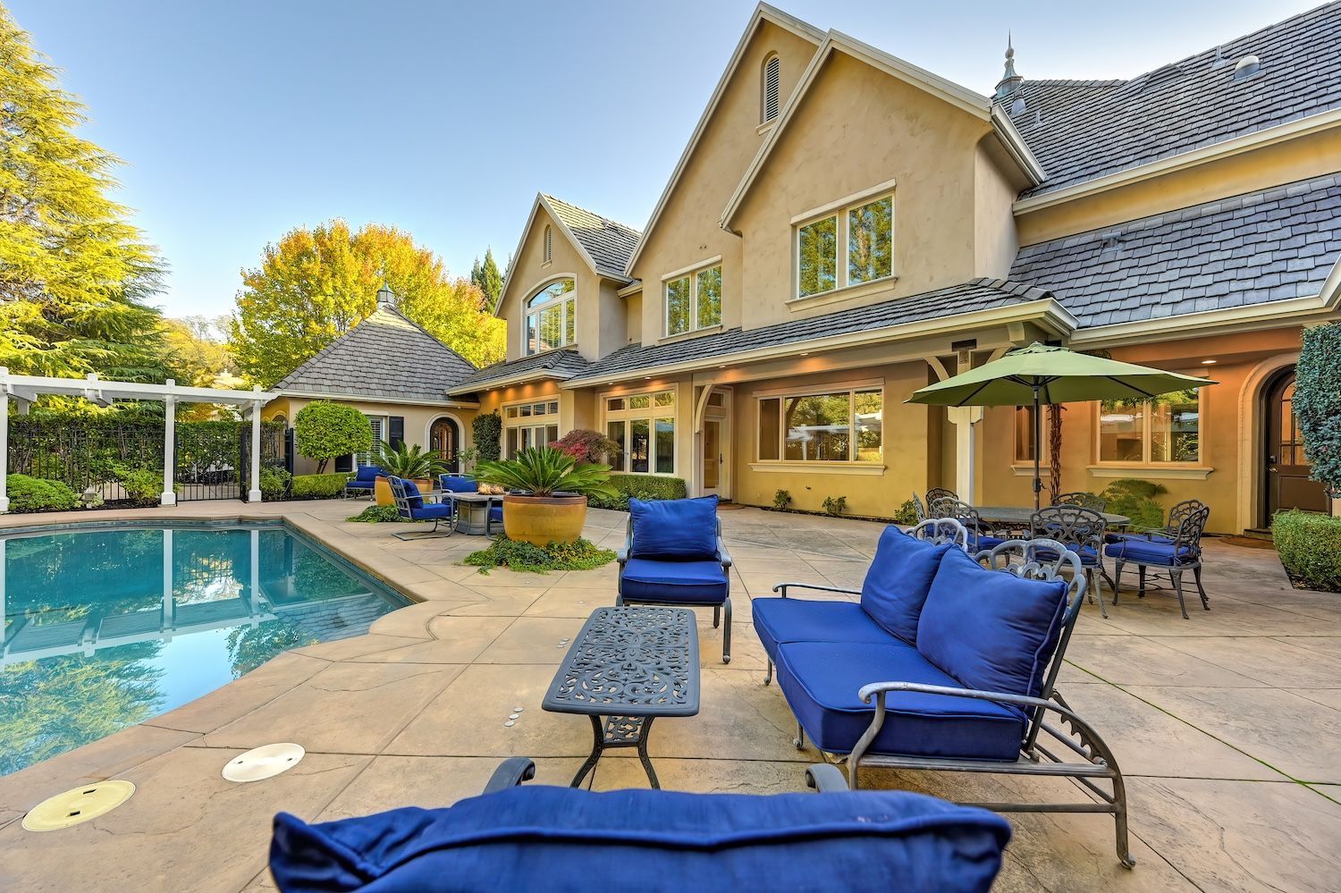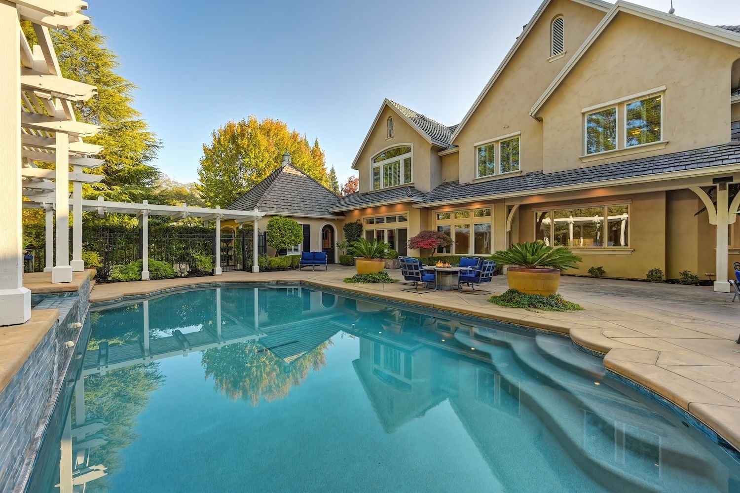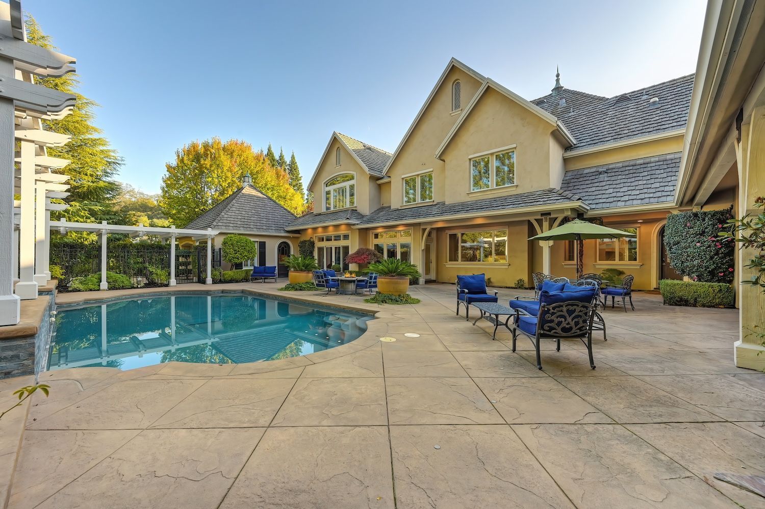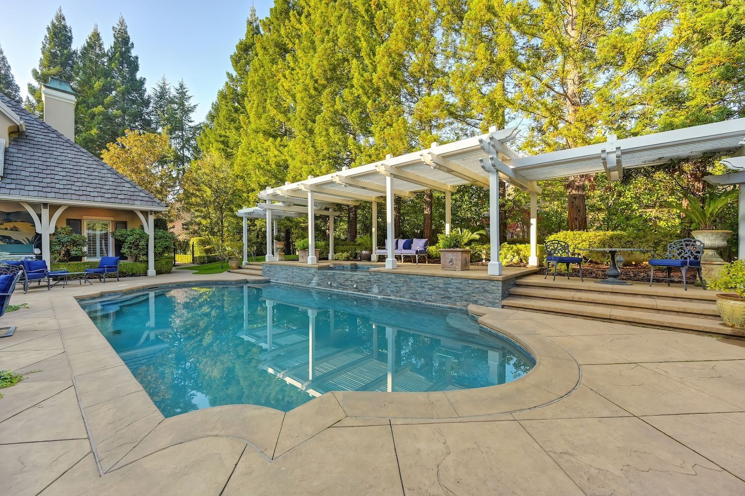 Welcome to 9624 Wexford Circle, a distinguished estate in guard-gated Wexford. Set on a premier corner lot with exceptional privacy, this residence showcases rare craftsmanship including triple crown molding, intricate millwork, arched doorways, leaded glass windows, and custom details with timeless quality. The updated kitchen shines with quartzite counters, a spacious island, and a separate prep dirty'' kitchen. An incredible theater room (optional first-floor junior suite), temperature-controlled wine cellar, elegant bar, European chandeliers, and a charming back staircase add unforgettable character. The primary suite features a large sitting room (possible office, nursery, or library), peaceful views, and a spa-like bathroom. Resort-style backyard has exceptional privacy with its mature trees that create a beautiful setting for the newly resurfaced pool, outdoor kitchen, and manicured landscaping. To top it off, the property has 3 driveways for guests/overflow parking and 5 garage spaces including a 3-car oversized attached and a 2-car detached. With golf-cart access to Granite Bay Golf Club, private community tennis and pickleball courts, and Eureka Union schools, this remarkable property blends luxury and timeless design in one of Granite Bay's most coveted communities..