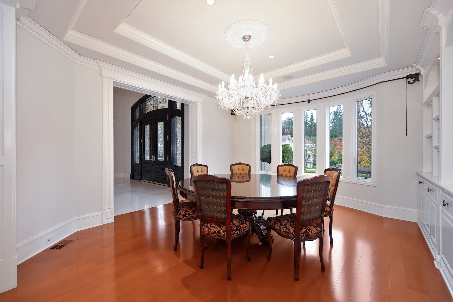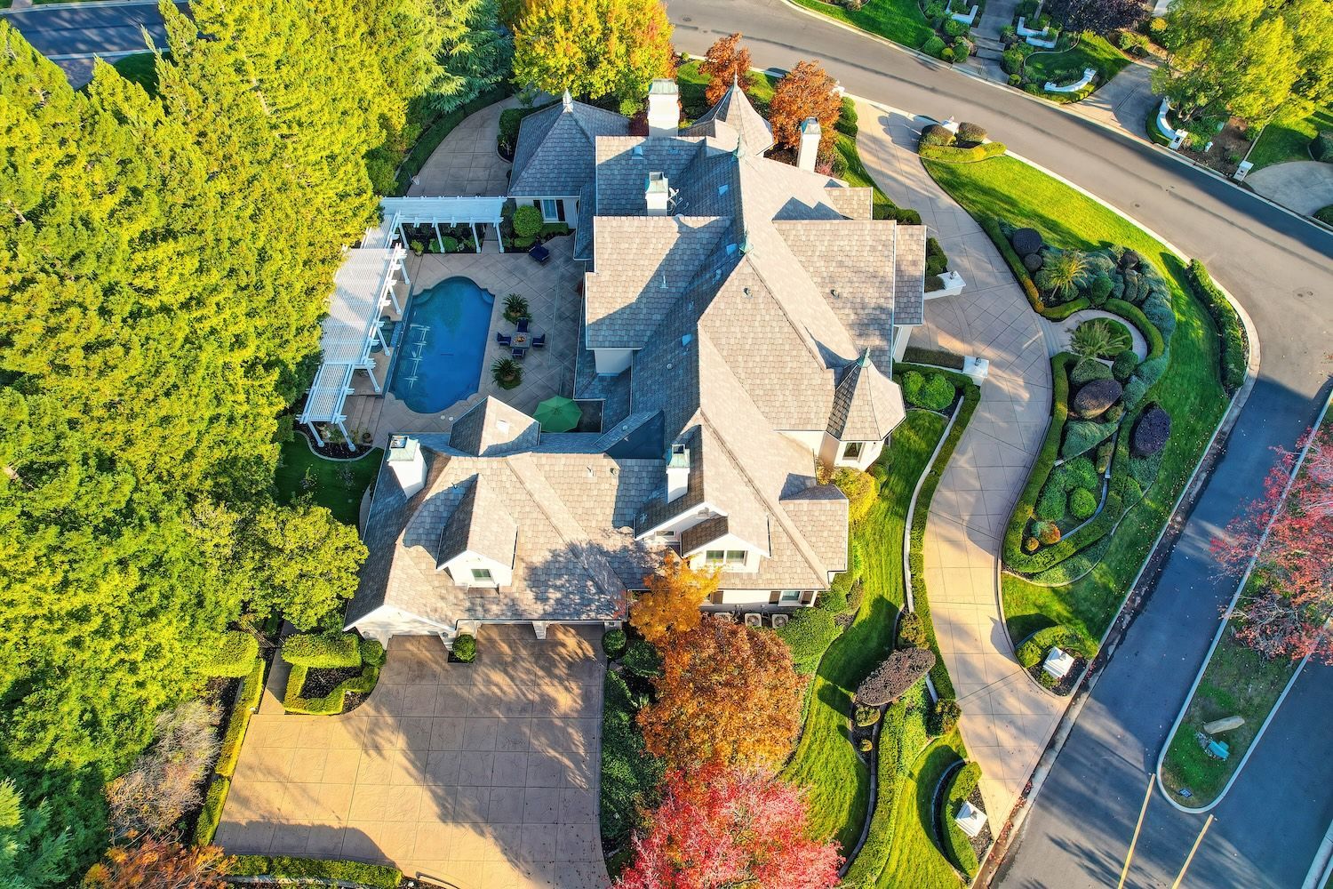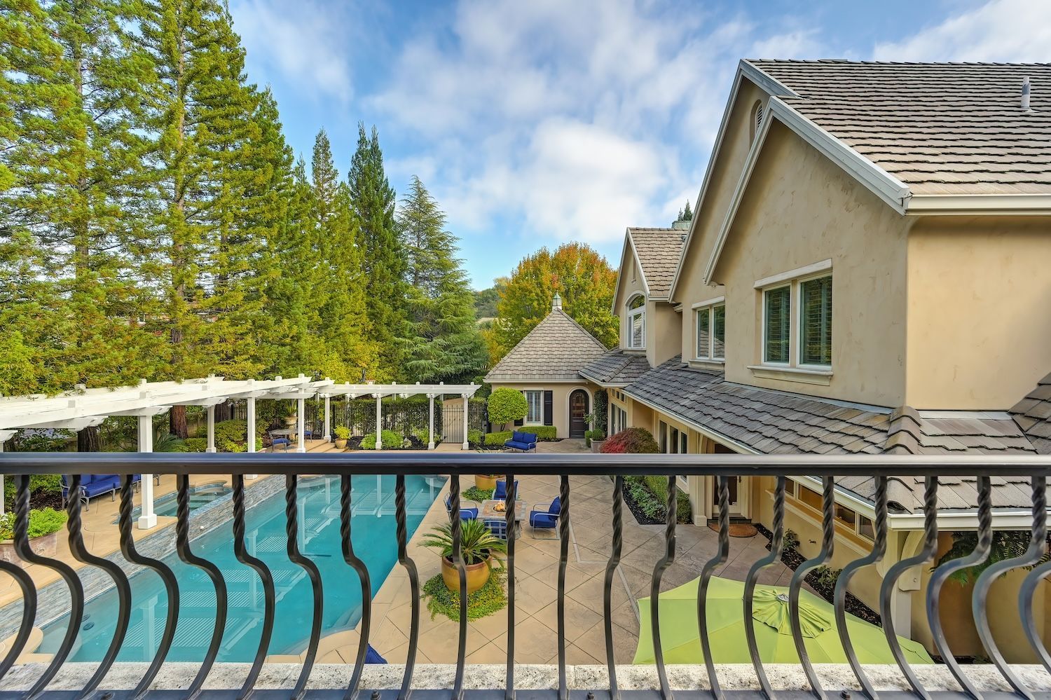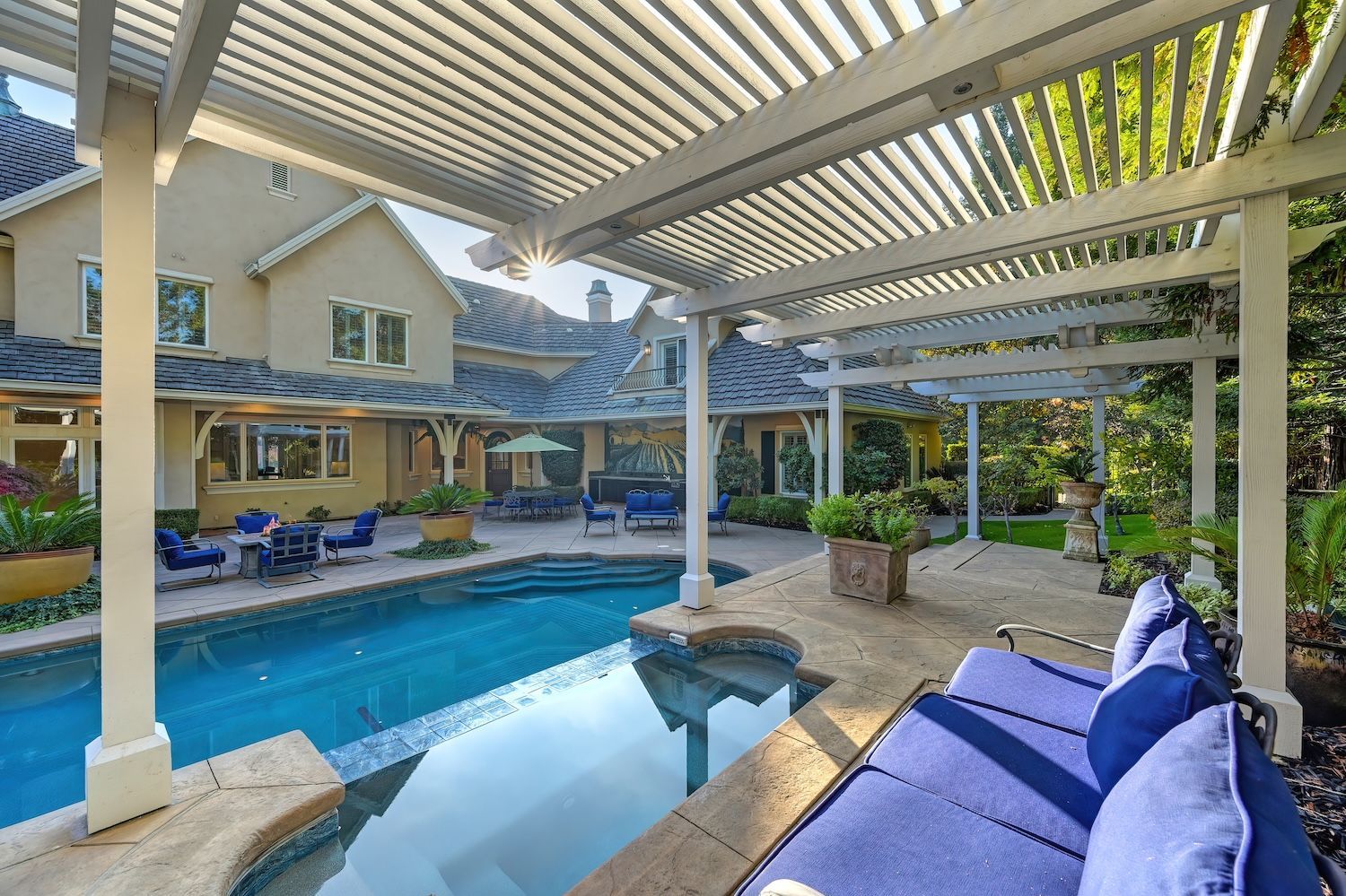 Welcome to 9624 Wexford Circle, a distinguished estate in guard-gated Wexford. Set on a premier corner lot with exceptional privacy, this residence showcases rare craftsmanship including triple crown molding, intricate millwork, arched doorways, leaded glass windows, and custom details with timeless quality. The updated kitchen shines with quartzite counters, a spacious island, and a separate prep dirty'' kitchen. An incredible theater room (optional first-floor junior suite), temperature-controlled wine cellar, elegant bar, European chandeliers, and a charming back staircase add unforgettable character. The primary suite features a large sitting room (possible office, nursery, or library), peaceful views, and a spa-like bathroom. Resort-style backyard has exceptional privacy with its mature trees that create a beautiful setting for the newly resurfaced pool, outdoor kitchen, and manicured landscaping. To top it off, the property has 3 driveways for guests/overflow parking and 5 garage spaces including a 3-car oversized attached and a 2-car detached. With golf-cart access to Granite Bay Golf Club, private community tennis and pickleball courts, and Eureka Union schools, this remarkable property blends luxury and timeless design in one of Granite Bay's most coveted communities..