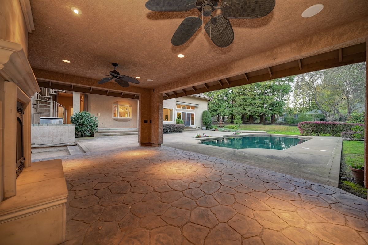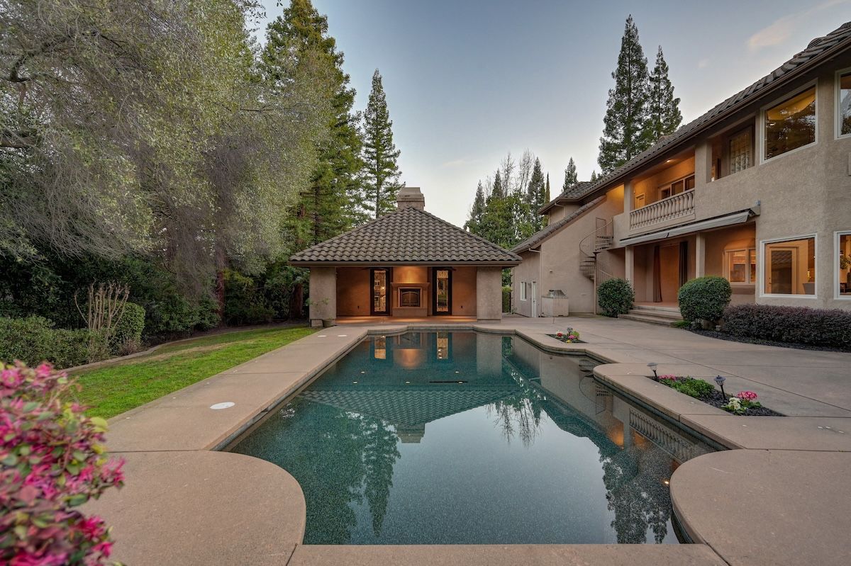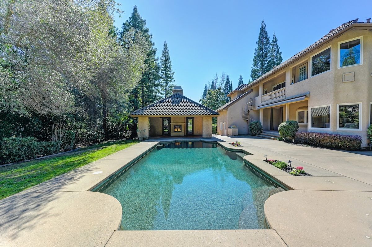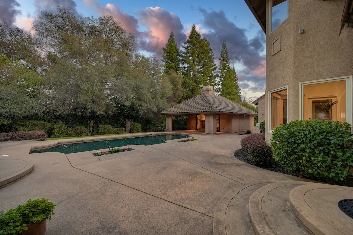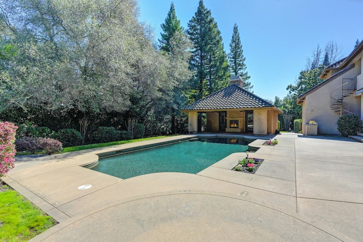 Beautifully appointed estate with an ADU in the sought-after guard-gated community of Wexford. The home features stunning finishes, fresh interior paint, and a flowing floor plan with spacious rooms and timeless architectural details. The expansive family room has a floor to ceiling fireplace surround, outdoor access, and wet bar and opens to the masterful chef's kitchen with stainless steel appliances and plentiful built-in storage. The large primary suite offers a balcony with a spiral staircase leading to the backyard, a spa-like bathroom, sauna, and an attached sitting room that can be used as a library, workout room, nursery, or additional closet space. The elegant, high-end finishes include hardwood and stone floors, ceiling accents, and stylish light fixtures. Out back, you'll find a sprawling, private yard that is an entertainer's dream with a sparkling pool, loggia with fireplace, built-in BBQ, and lots of patio space and lawn area. Additionally, the property includes a fabulous pool house/guest quarters with a full bath, kitchenette, fireplace, and living space. Nestled into the quiet community that is adjacent to Granite Bay Golf Club and features 24-hour security, tennis courts, clubhouse, and more.